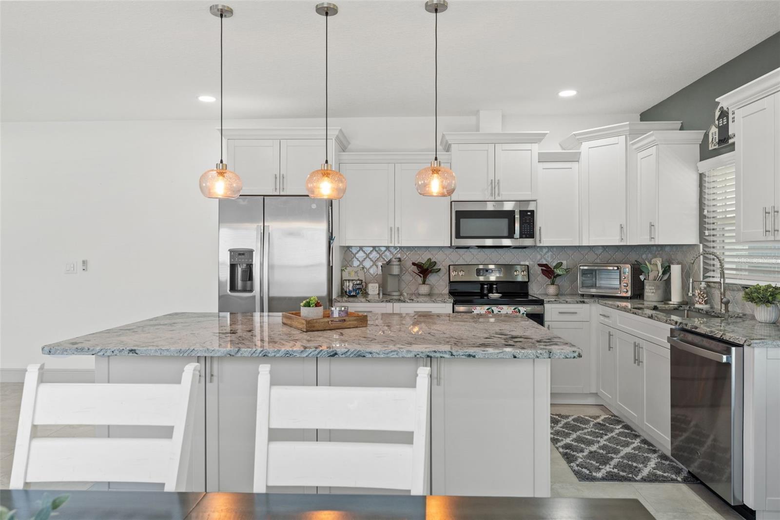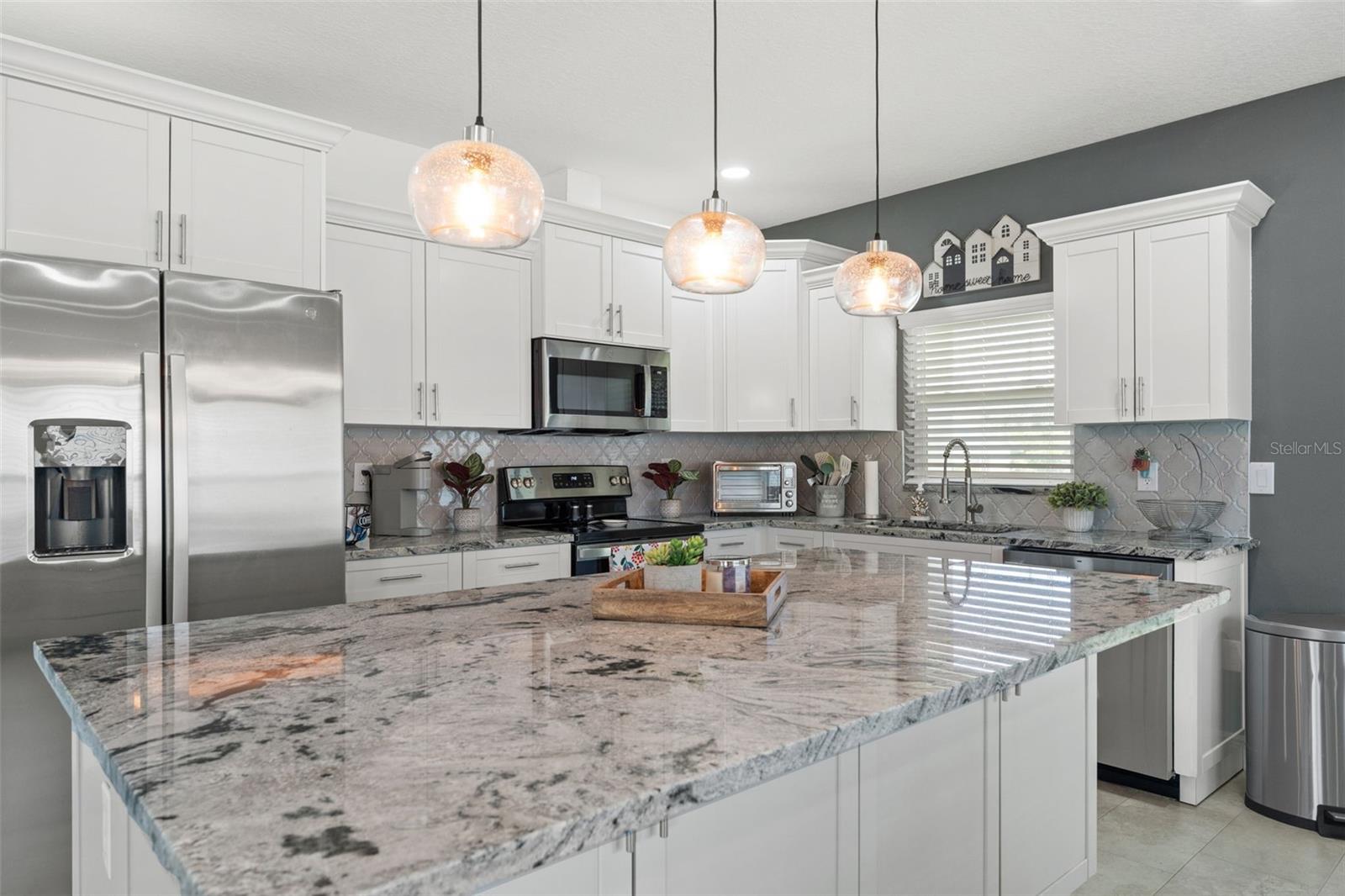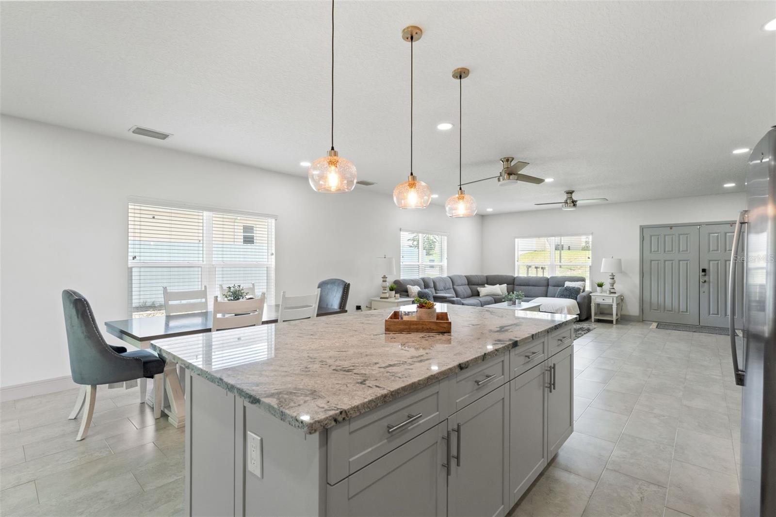 Uma ou mais fotos foram praticamente encenadas. Bem -vindo à sua casa de sonho! Esta obra-prima moderna recém-construída oferece 3 quartos espaçosos, 2,5 banheiros luxuosos e uma garagem de 2 carros, todos aninhados dentro de 1984 pés quadrados de espaço de estar (total de 2625 pés quadrados). O exterior possui acabamentos nítidos e recém -pintados e paisagismo meticulosamente mantido que convida você a entrar. Ao entrar, você será recebido por um layout aberto que conecta perfeitamente a sala de estar, a área de jantar e a cozinha. A cozinha é o paraíso do chef com bancadas de granito deslumbrante, utensílios de aço inoxidável elegante, uma ilha de grandes dimensões com uma barra de café da manhã e belos armários brancos. A iluminação decorativa acrescenta um toque de elegância, enquanto os ventiladores de teto em toda a casa garantem conforto. O elegante piso de telha cerâmica abrange toda a casa, criando uma aparência coesa e moderna. A espaçosa lavanderia oferece amplo espaço e conveniência para todas as suas necessidades. Os quartos de hóspedes são generosamente de tamanho e compartilham um banheiro lindamente decorado com pias duplas, balcões de granito e um chuveiro em teto. O quarto principal é um refúgio sereno com dois armários e um banheiro parecido com um spa com pias duplas, balcões de granito, uma banheira de jardim e um chuveiro de stand-up ladrilho ao telhado. As portas de vidro deslizantes levam a um elegante pátio ao ar livre, perfeito para desfrutar do tranquilo quintal verde. Sem HOA e sem CDD, esta casa oferece a liberdade e a flexibilidade que você deseja. Localizado na altamente desejável área de Spring Hill, você estará perto de belas praias e as renomadas Weeki Wachee Springs. Desfrute de acesso a escolas de melhor classificação e uma comunidade conhecida por seu charme e conveniência. Não perca esta incrível oportunidade de possuir um pedaço de luxo moderno em uma das áreas mais procuradas da Flórida!