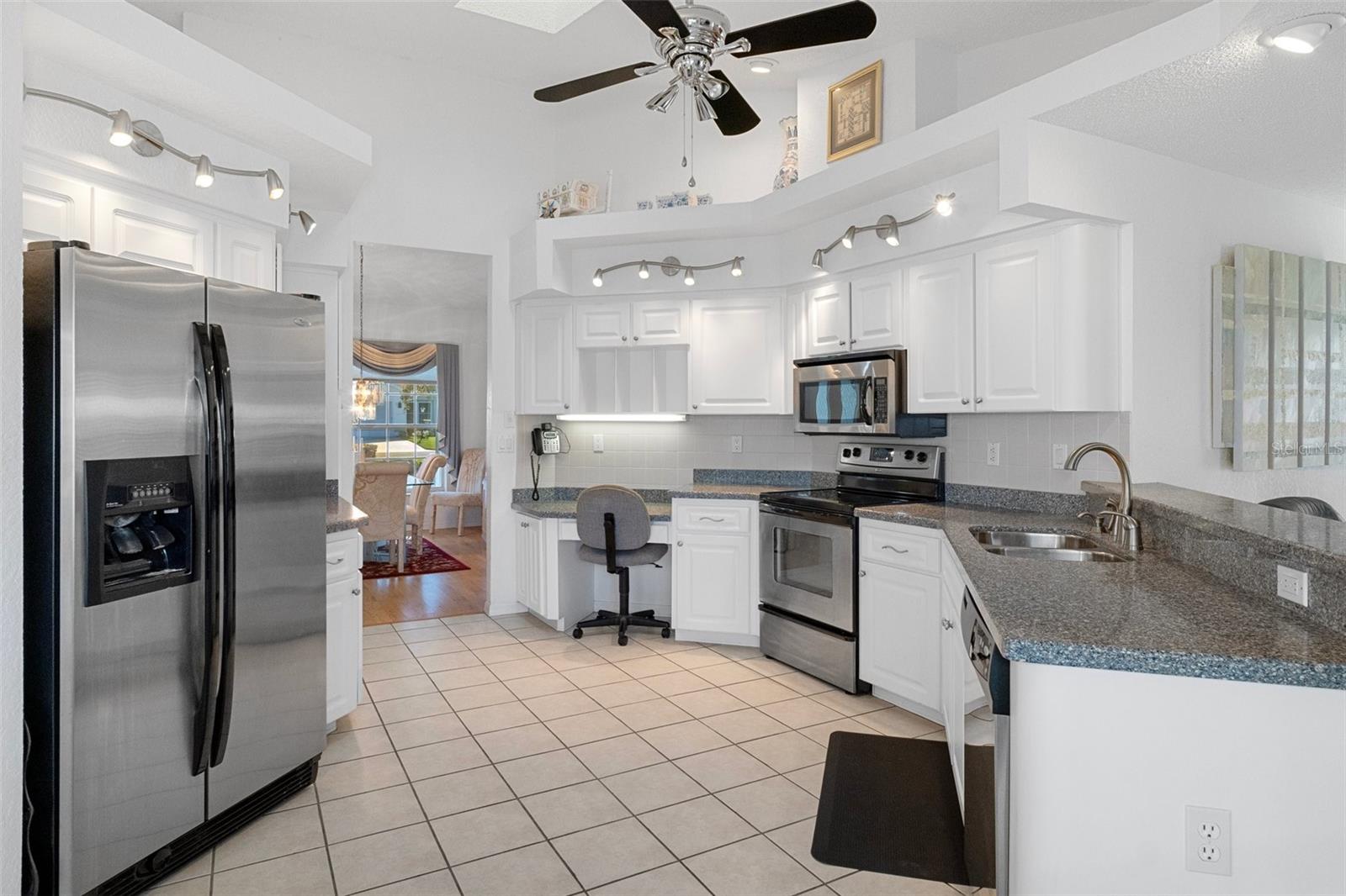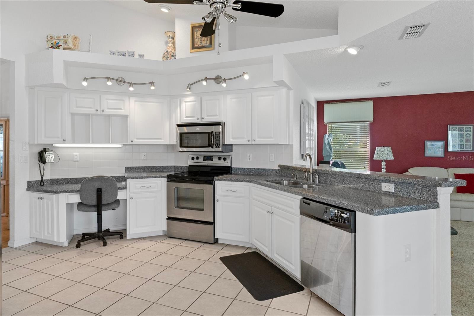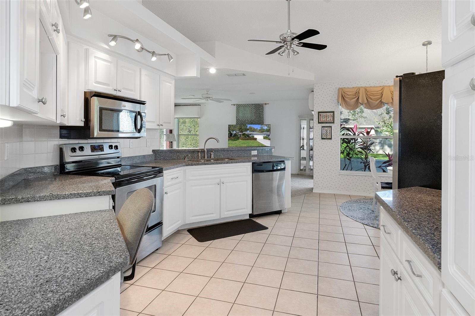 Bem -vindo a esta encantadora casa do piso do Fairway, a antiga casa de modelos artísticos em Timber Pines! Esta adorável propriedade possui uma divisão Planta com 2 quartos, 2 banheiros e uma garagem de 2 carros. Ao entrar na casa, você é recebido por uma sala de estar formal e pela sala de jantar formal adjacente. A cozinha está localizada centralmente, apresenta armários brancos com reflexão, bancadas de quartzo, luz do céu, teto da catedral e um recanto de café da manhã que se abre para a grande sala da família. As principais áreas de estar e o quarto principal têm tetos de catedral, proporcionando uma sensação espaçosa e aberta em toda a casa. O quarto e o banheiro primários apresentam uma banheira de jato, chuveiro com um assento embutido, armário de linho, vaidade em forma de L com pias duplas, bancadas de quartzo, armários reabastecidos e dois armários. Os controles deslizantes na sala de estar, na sala da família e no quarto primário levam ao pátio exibido, perfeito para desfrutar do belo clima da Flórida. A espaçosa lavanderia possui um armário de armazenamento, armários para armazenamento adicional, banheira de lavanderia e uma nova lavadora e secadora instalada em 2019. O manipulador de ar está convenientemente localizado em um armário mecânico para facilitar o acesso, próximo à lavanderia. A garagem de 2 carros é Equipado com escadas puxadas, aparelhos de furacão na porta aérea e armários de armazenamento adicionais. TELHO - 2010, A/C -2021, mais recente aquecedor de água Rheem. O carrinho de golfe EZ-Go está incluído na venda. Móveis disponíveis separadamente. Timber Pines é uma comunidade ativa premiada, com mais de 55 fechaduras, com 4 campos de golfe, 2 piscinas e banheiras de hidromassagem, clube de campo, restaurantes e lounge, Centro de Artes Performentes, 2 lojas profissionais, 12 novas quadras de bola de pickle de última geração , Tênis, 2 novos parques de cães e um novo centro de bem -estar e fitness center inaugurado em fevereiro de 2023, mais de 100 clubes e atividades para desfrutar nesta comunidade lindamente mantida. A taxa mensal de HOA de US $ 314 inclui 250 canais + entretenimento + esportes, 1 caixa HD e 1 HD Box com DVR ou DVR acessível em nuvem e Internet de alta velocidade. Uma taxa de contribuição de capital do comprador de US $ 2.640, deve -se ao fechamento.