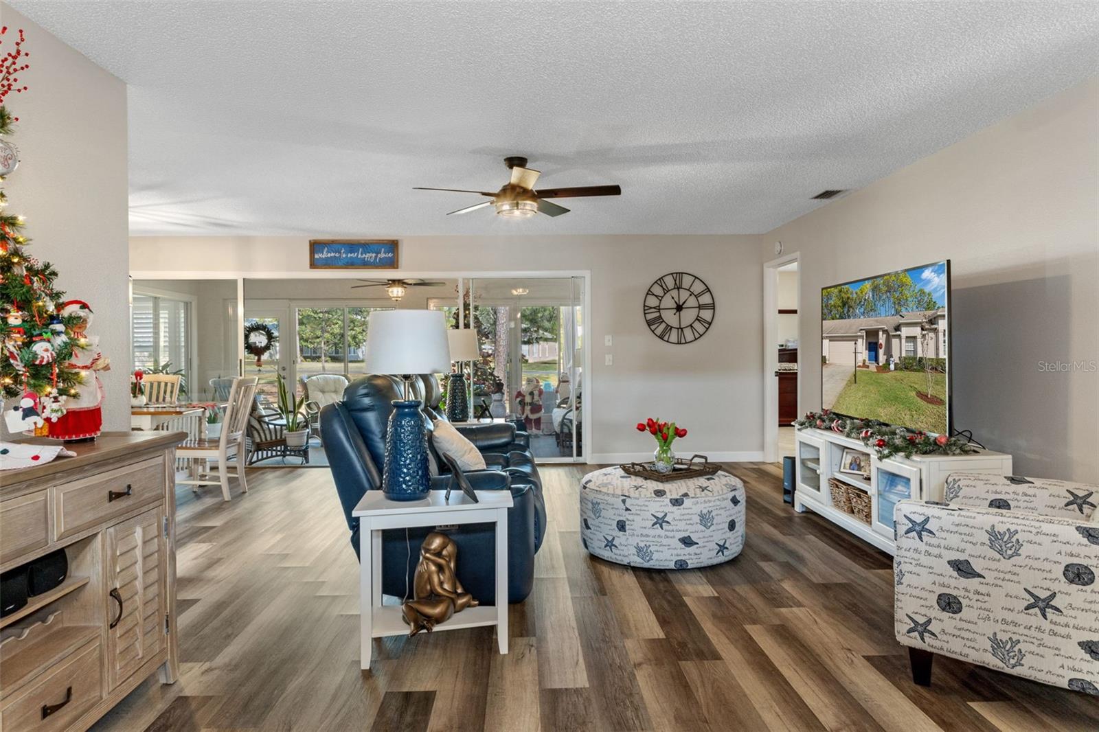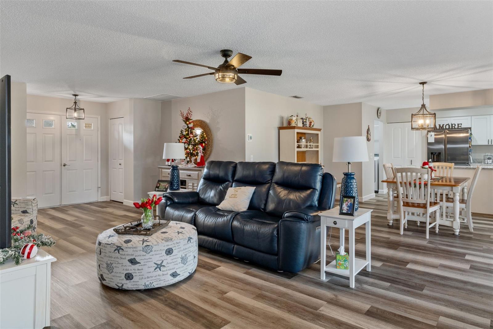 ENORME MELHORIAÇÃO DE PREÇOS !!!!! Bem -vindo ao Timber Pines, uma comunidade fechada exclusiva de mais de 55 anos, projetada para um estilo de vida ativo e vibrante. Esta casa é cercada por paisagismo maduro meticulosamente mantido pelo HOA. Ao pisar nas portas da frente dupla, você apreciará imediatamente os tetos abobadados e a planta baixa, proporcionando uma sensação espaçosa e arejada. O piso de vinil de luxo flui perfeitamente em todo o espaço principal. A cozinha está equipada com armários brancos, bancadas de quartzo e apenas 3 anos de idade. A lavadora e a secadora também ficam. A suíte primária tem tapete mais recente, dois armários, banheiro com pias duplas e um chuveiro no banheiro privativo. Luminárias de iluminação atualizadas em toda a casa adicionam estilo e conforto. Desfrute do acolhedor recanto do café da manhã, com janelas de sacada encantadoras e uma sala de família bônus, logo após a cozinha e a sala de estar, ao redor das janelas que banham o espaço com luz natural. O pátio traseiro é perfeito para relaxar com um bom livro e um copo de vinho. Esta comunidade principal possui quatro campos de golfe, um clube de campo, um restaurante e bar recém -reformado com várias telas de TV, duas piscinas convidativas, um centro de fitness, tênis e quadras de pickleball, bola de bocha, sala de bilhar e mais de 100 clubes diversos. As taxas HOA incluem cabo de espectro com duas caixas e Internet de alta velocidade, tornando a vida ainda mais conveniente. Não perca esta casa meticulosamente mantida e lindamente atualizada no coração de Pines de madeira.