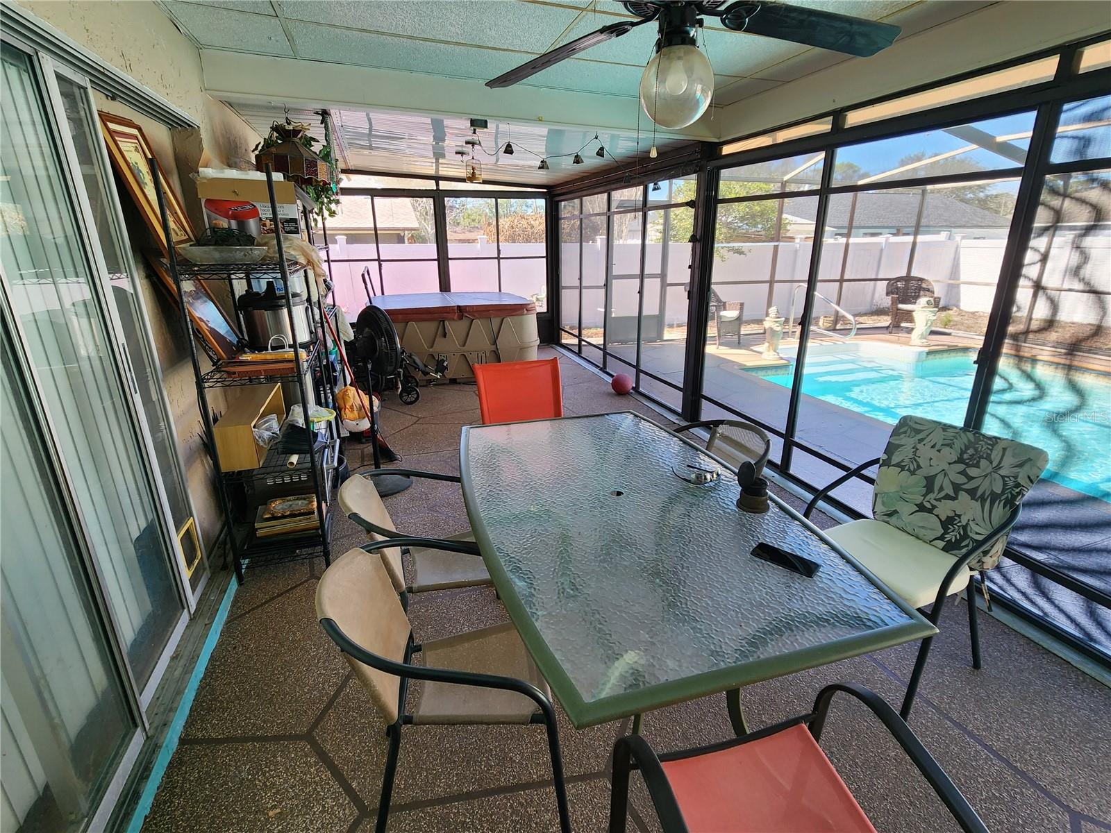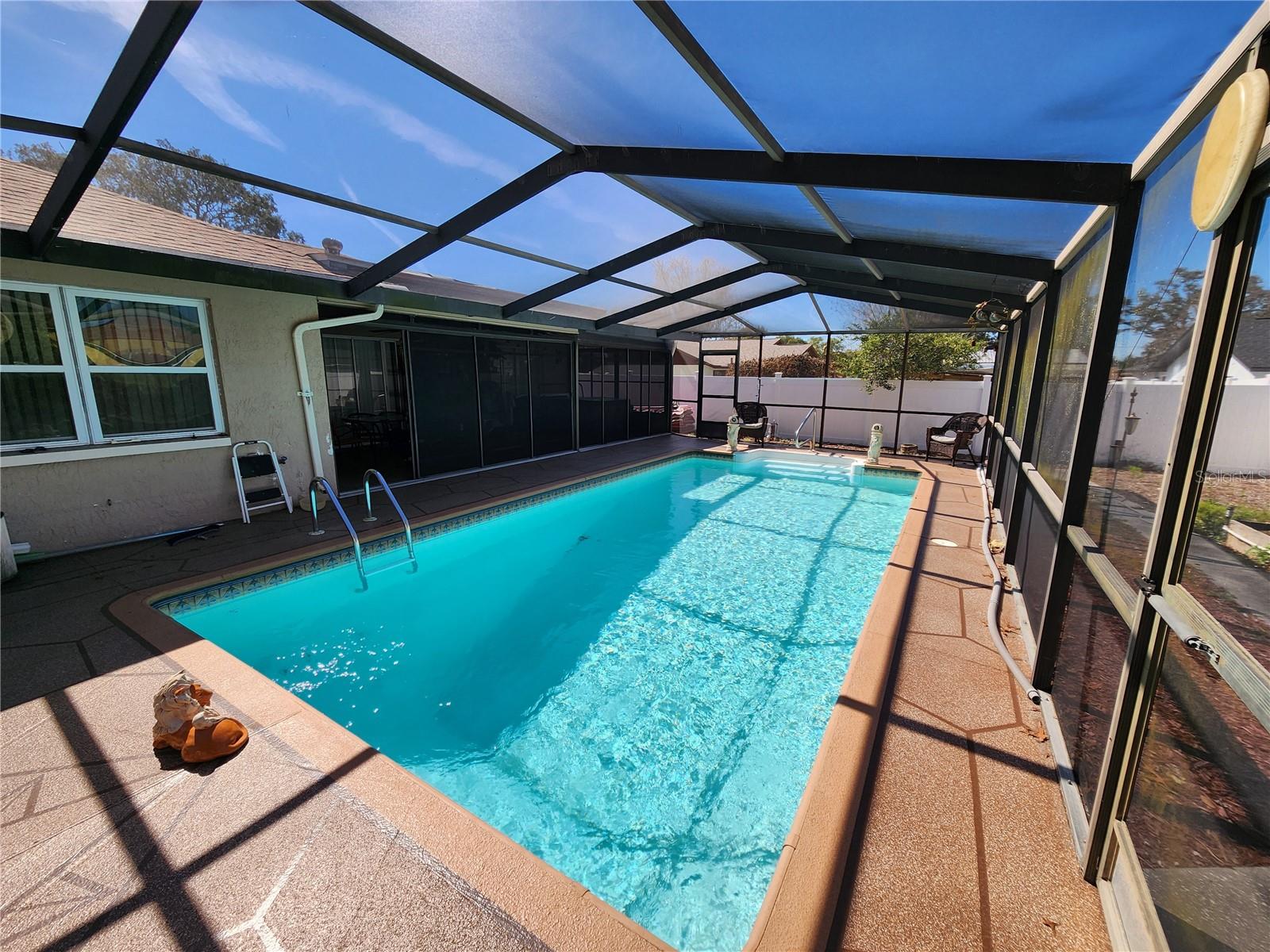 Spring Hill 3 quartos piscina casa 2 banheiros completos e garagem para 2 carros - entre na casa pela varanda da frente até a grande sala - tetos abobadados - comer na cozinha com pias duplas e despensa - quarto principal tem closet e banheiro privativo - Lanai fechado em vinil com banheira de hidromassagem - Os extras incluem telhado novo 2022, poço de irrigação, sistema Rain Bird mais recente, portas com painéis internos, chuveiro externo, janelas inclinadas mais recentes, amaciante de água, sótão Armazenamento - Ligue hoje