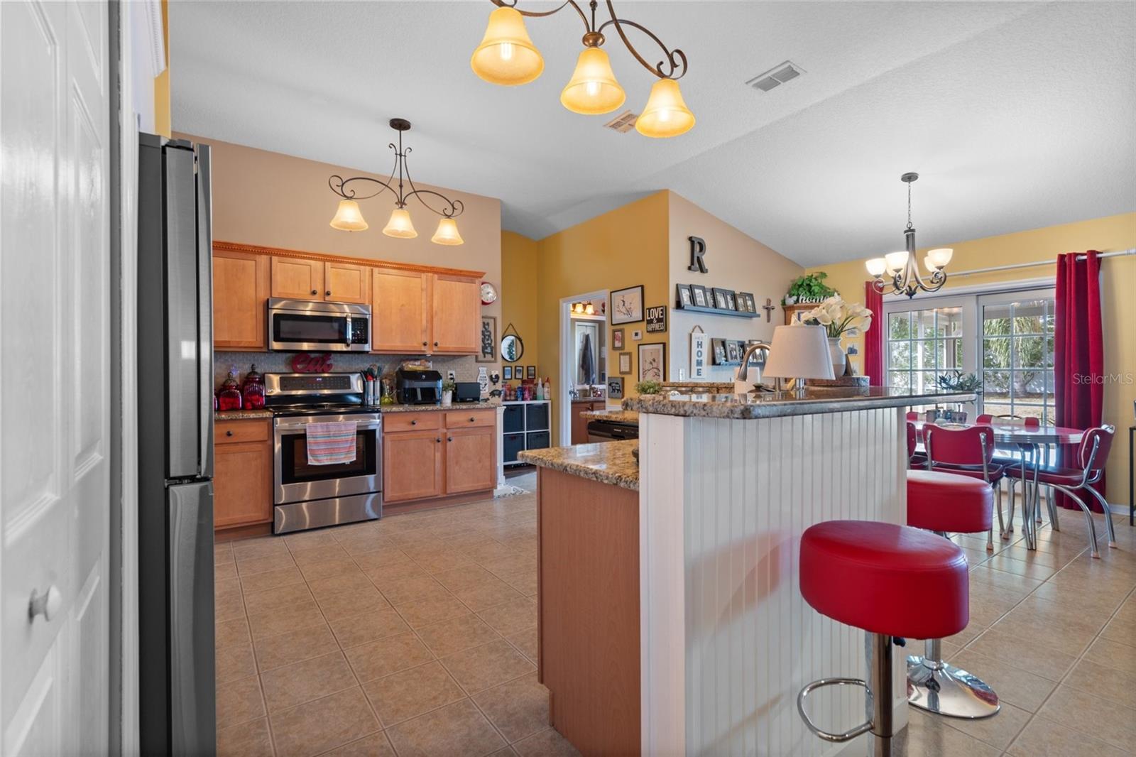 Bem-vindo à casa dos seus sonhos, uma impressionante residência construída na Mercedes que combina perfeitamente com conforto e elegância. Esta bela propriedade possui 3 quartos espaçosos e 2 banheiros imaculados, com uma garagem de dois carros e mais de 2.000 pés quadrados de espaço de vida lindamente projetado. Ao se aproximar da casa, você será recebido por paisagismo tropical exuberante, completo com um sistema de irrigação adicionado em 2020, garantindo que seu paisagismo permaneça vibrante e bonito, aprimorando o apelo do meio -fio. Entre e seja cativado pela sala de estar formal, um espaço perfeito para relaxar ou divertir convidados. Atualmente está sendo usado como uma sala de teatro com um projetor e uma tela. Há um lindo piso de tábua de vinil à prova d'água que corre por toda a casa, fornecendo durabilidade e elegância. Você vai adorar a grande sala de jantar formal, é ideal para hospedar jantares ou pode usar esse espaço como um escritório em casa com Convector. O quarto da família é um espaço relaxante maravilhoso que se conecta perfeitamente à cozinha, criando uma atmosfera convidativa para reuniões de família. A cozinha é uma delícia de chef, com bancadas de granito deslumbrante, um belo backsplash de ladrilhos e uma abundância de armários para todas as suas necessidades culinárias. A despensa espaçosa oferece armazenamento extra, enquanto utensílios de aço inoxidável completam esta cozinha moderna. A casa foi meticulosamente mantida e apresenta um telhado de telha tridimensional mais recente de 30 anos instalado em 2019, os quartos são pintados nas cores de tinta Gorgoeus Designer e há luminárias mais recentes e ventiladores/luzes de teto em toda a casa. A espaçosa suíte master é um verdadeiro retiro, com um grande closet e um luxuoso banheiro principal equipado com um chuveiro e uma grande vaidade com pias duplas. As áreas de estar mostram paredes de lambris requintadas, molduras de coroa e acabamentos personalizados, adicionando um toque de sofisticação e elegância. O segundo quarto é generoso, com um ventilador/luz mais recente. O terceiro quarto é espaçoso com um closet e um ventilador/luz mais recente. O lindo banheiro de hóspedes inclui uma combinação conveniente de banheira/chuveiro e uma grande vaidade com bancada em granito. Lá fora, a propriedade é igualmente impressionante. O quarto da Flórida exibido é um espaço relaxante que se abre para um pátio de pavimentação, perfeito para entretenimento ao ar livre ou desfrutando de noites tranquilas desfrutando de um copo de vinho ou uma cerveja gelada após um longo dia difícil. O quintal é completamente cercado e seu paisagismo lindamente, incluindo um galpão conveniente para armazenamento adicional. Os recursos adicionais incluem uma lavanderia interna, calhas grandes e pisos de azulejos na garagem tela. Esta casa está estrategicamente localizada perto de lojas, restaurantes, médicos e hospitais, com fácil acesso ao Suncoast Parkway para viagens convenientes para Tampa, Tarpon Springs, Dunedin, Clearwater e São Petersburgo. Não perca a oportunidade de possuir essa casa requintada, com preços para vender muito rapidamente por apenas US $ 329.900.