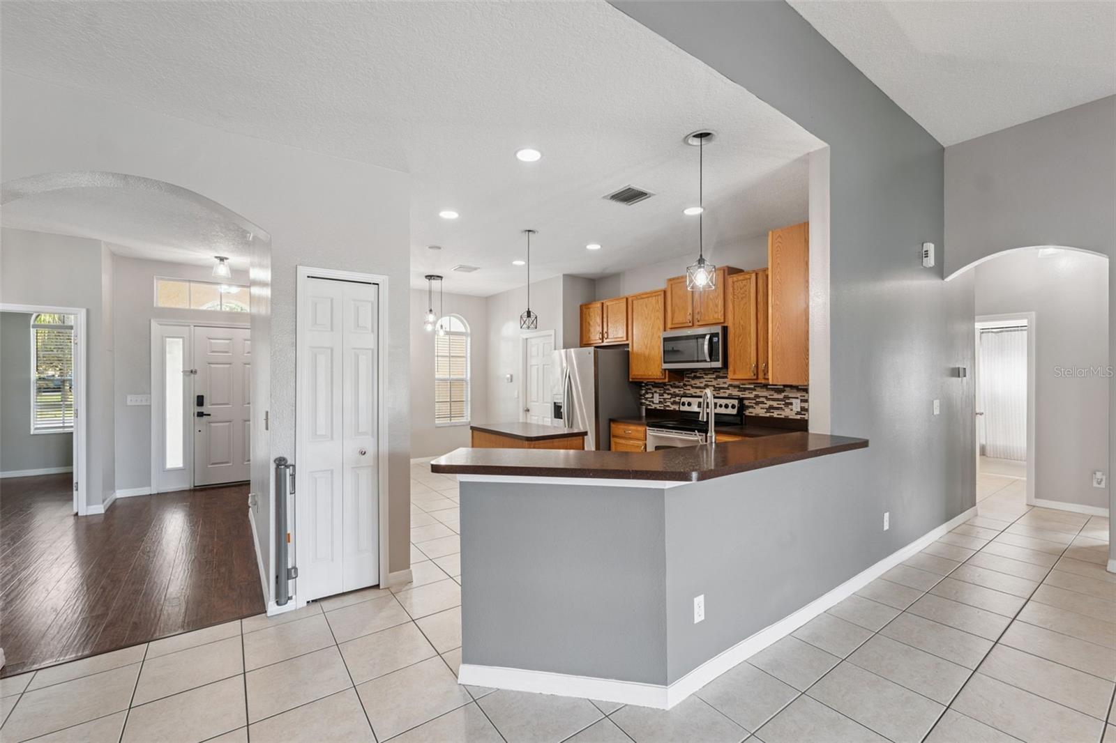 Uma ou mais fotos foram virtualmente encenadas. Entre nesta casa lindamente conservada de cinco quartos e três banheiros, onde o design inteligente encontra o conforto do dia a dia. O exterior convidativo apresenta um charme atemporal com janelas em arco, uma fachada em tons neutros e uma varanda frontal coberta sob a sombra de uma árvore madura. Ao entrar, a luz natural inunda o hall de entrada através das luzes laterais e de uma janela de popa, destacando os tetos altos e o rico piso de madeira escura. O fluxo contínuo para a sala aberta revela piso de cerâmica, transições em arco e portas deslizantes de grandes dimensões que emolduram as vistas do pátio coberto e do quintal totalmente cercado. A cozinha é funcional e elegante com armários de madeira, eletrodomésticos de aço inoxidável, bancadas de pedra, ilha central com iluminação suspensa e amplo espaço para refeições perfeito para reuniões. A suíte principal serve como um retiro privado com piso de madeira aconchegante, acesso direto ao pátio e um banheiro tipo spa com chuveiro com box de vidro, banheira de imersão e pia dupla. Cada quarto adicional foi cuidadosamente projetado com acabamentos modernos, luz natural e amplo armazenamento, oferecendo flexibilidade para hóspedes, familiares ou espaço de trabalho. Os banheiros adicionais são decorados com bom gosto, com um deles abrindo convenientemente para o quintal - ideal para entretenimento ao ar livre ou planos futuros de piscina. O quintal totalmente fechado com cerca de vinil, fogueira de tijolos, assentos no pátio e paisagismo maduro criam o santuário ao ar livre perfeito. Uma lavanderia bem organizada e uma espaçosa garagem para dois carros contribuem para o apelo prático da casa. Localizado a apenas 8,8 km do Parque Estadual Weeki Wachee Springs, desfrute de passeios de caiaque, trilhas naturais e do famoso show de sereias, enquanto o parque aquático Buccaneer Bay oferece um destino divertido e ideal para toda a família. O Veterans Memorial Park fica a apenas 10 km de distância e dispõe de quadras esportivas, áreas de piquenique e trilhas para caminhada. Para fazer compras e jantar, o The Shoppes at Avalon fica a menos de 4,8 km de distância. Além disso, com a Suncoast Expressway a apenas 11 km da sua porta, viajar para Tampa e arredores é muito fácil, oferecendo acesso rápido às comodidades da cidade enquanto desfruta da tranquilidade da vida suburbana. Esta casa convida você a se instalar, relaxar e torná-la sua.