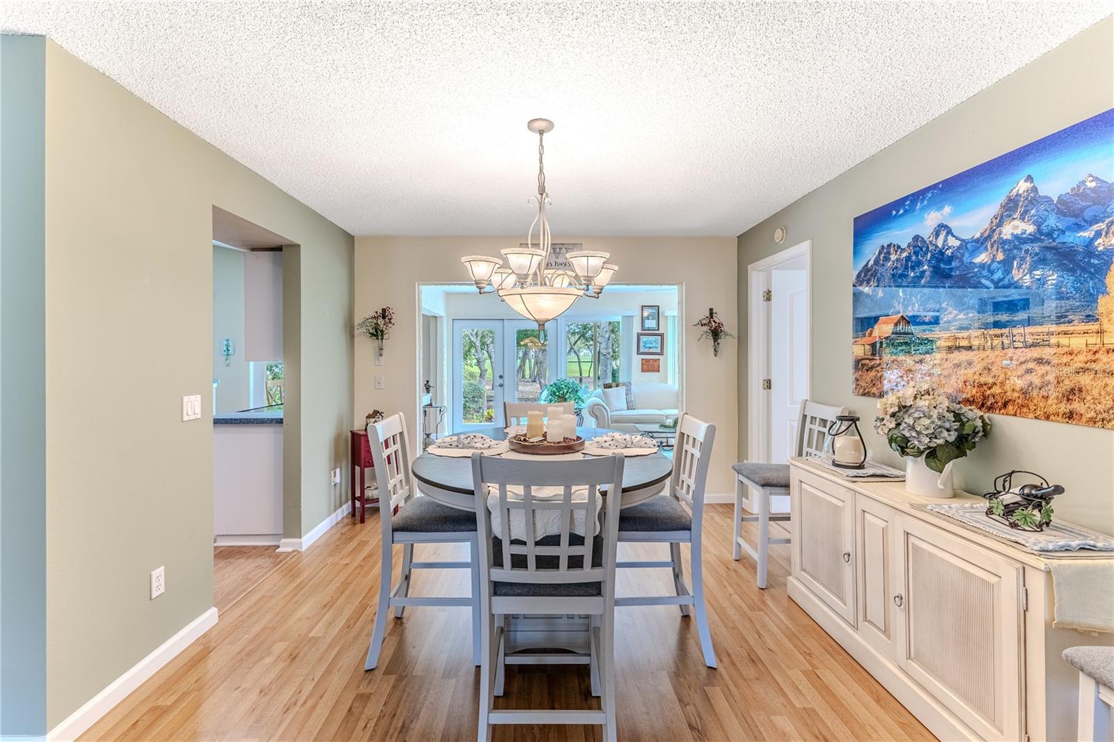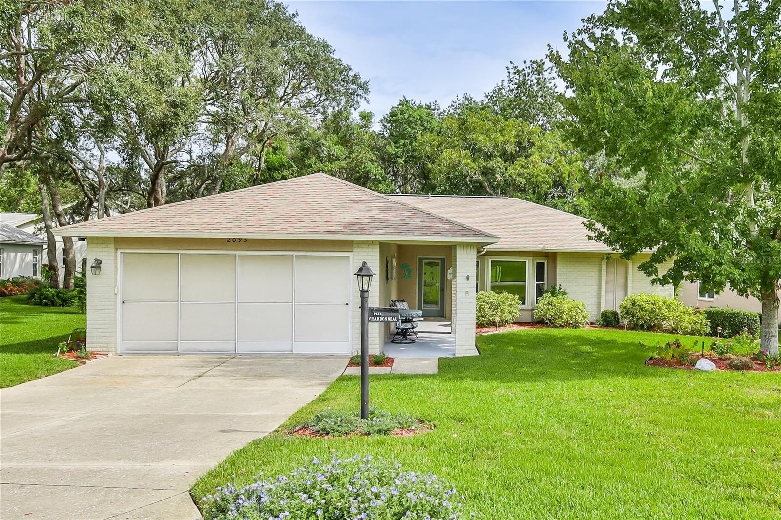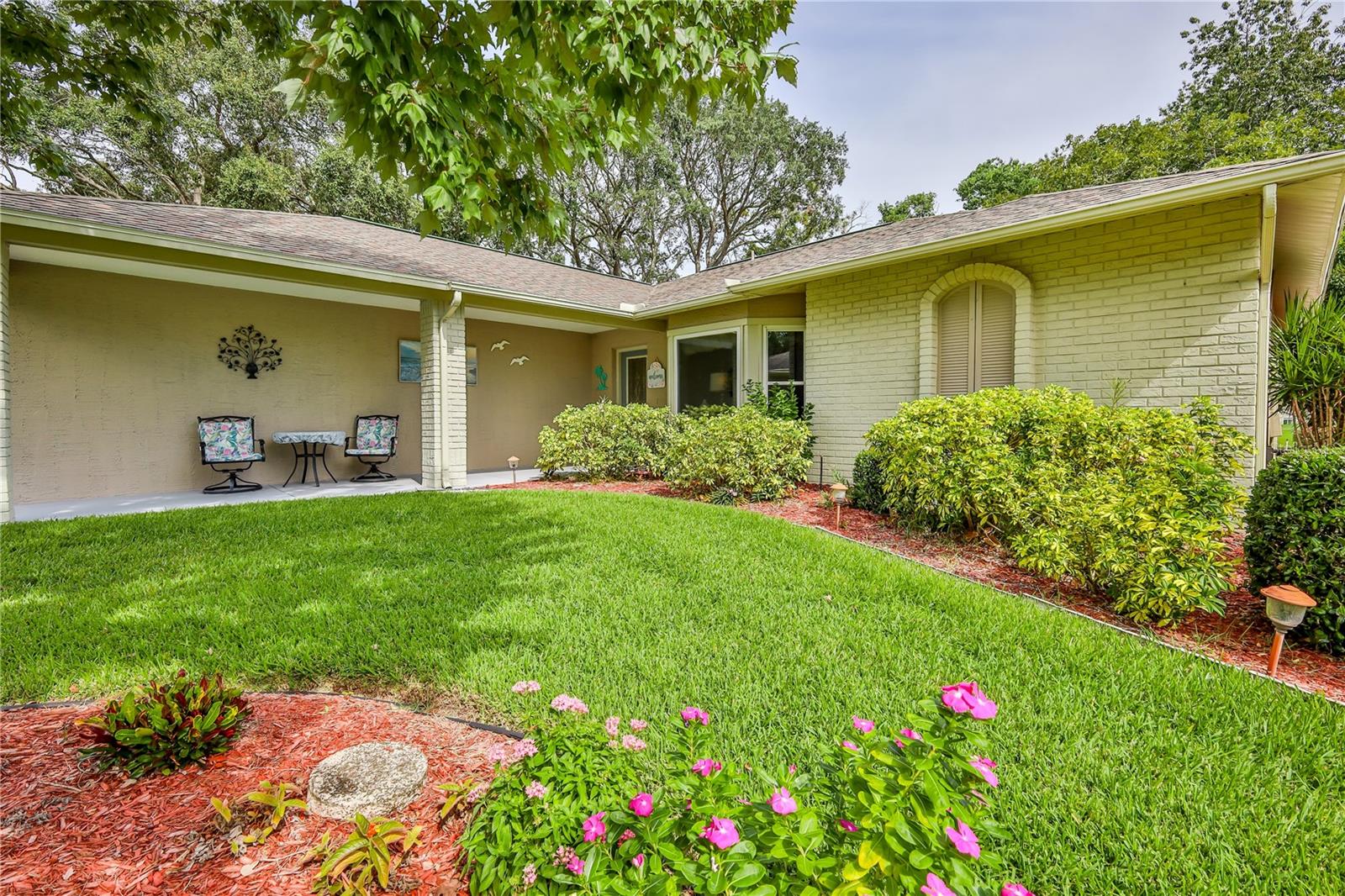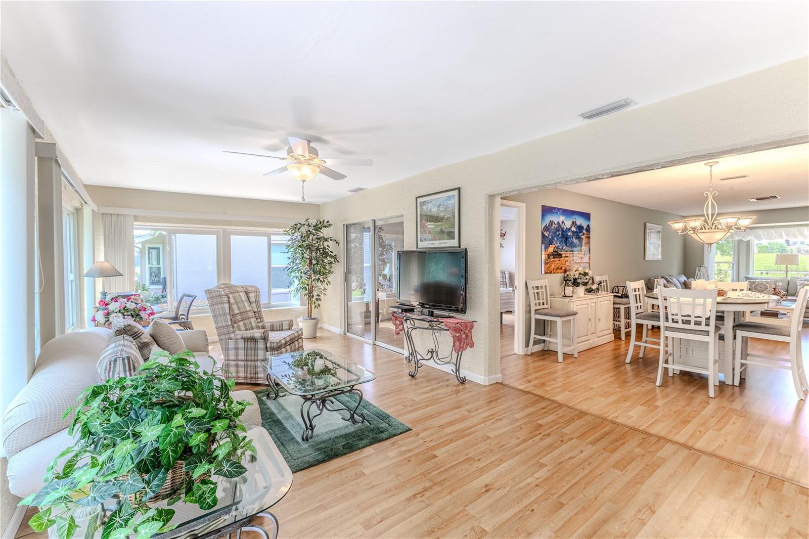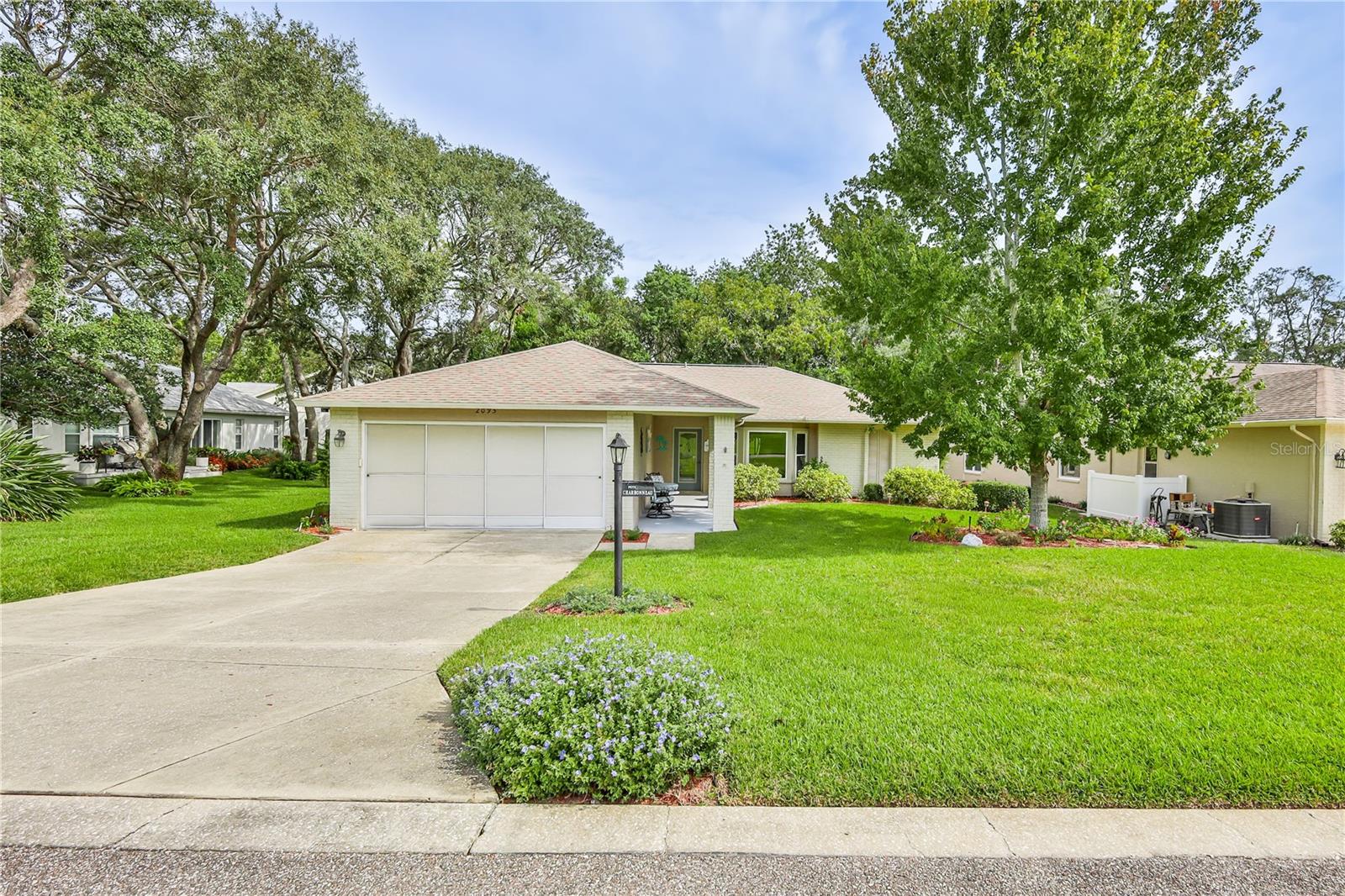 Bem-vindo a esta encantadora casa de 2 quartos e 2 banheiros, com vistas do buraco 5 no campo de golfe Grand Pines, com uma planta baixa desejável e muito espaço de estar. Entre na combinação de sala de estar e de jantar que cria uma entrada calorosa e convidativa. A casa também oferece uma lanai fechada espaçosa, perfeita como sala de família, escritório ou espaço flexível. A suíte primária inclui portas de vidro deslizantes para o Lanai, dois armários e um banheiro na suíte com pias de vaidade dupla, iluminação moderna, chuveiro e ladrilhos atualizados. O quarto de hóspedes também possui um grande closet e está convenientemente localizado perto do banho de hóspedes completo. A cozinha possui tetos abobadados, utensílios de aço inoxidável, armazenamento abundante de armários, dois armários de despensa e uma acolhedora área de jantar de janela de sacada com vista para o jardim e campo de golfe exuberante. A sala da família fora da cozinha facilita o entretenimento. A vida ao ar livre é uma delícia com um pátio de pavimentação com vista para os jardins exuberantes e vistas de campo de golfe. Destaques adicionais incluem uma lavanderia interna com pia, armários e armário de armazenamento, além de uma garagem de 2 carros com bancada e prateleiras. Telhado 2012. Windows 2019. HVAC 2021. Sprinklers no poço. Esta casa combina charme, funcionalidade e um belo cenário - pronto para seus novos proprietários desfrutarem!