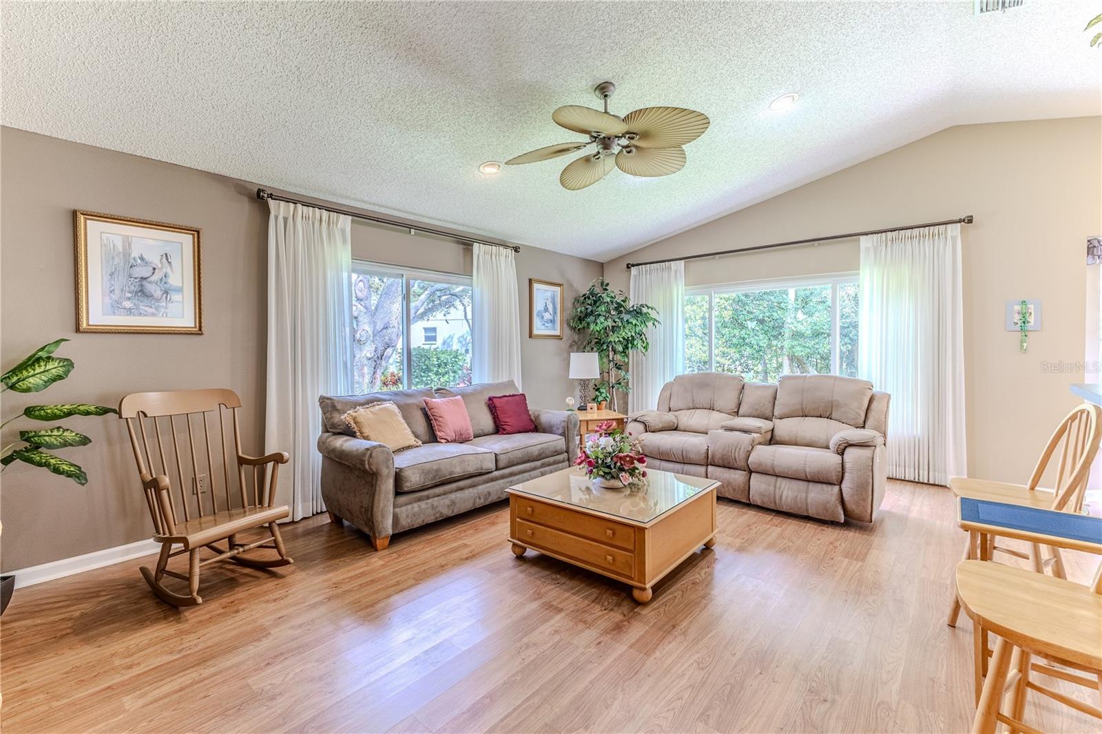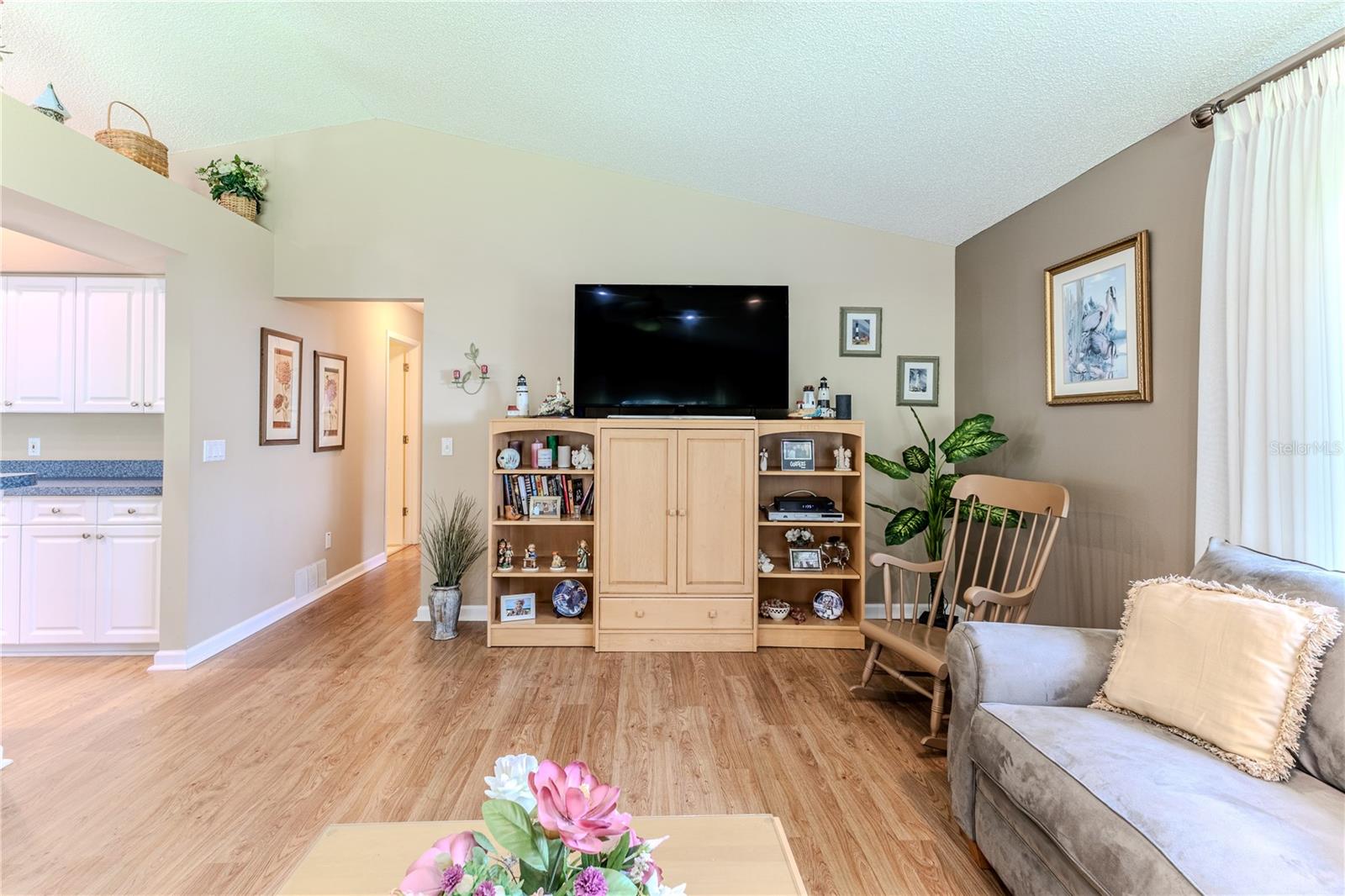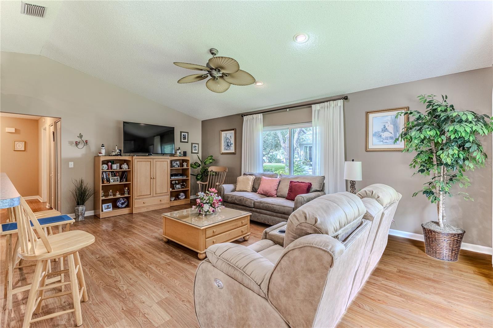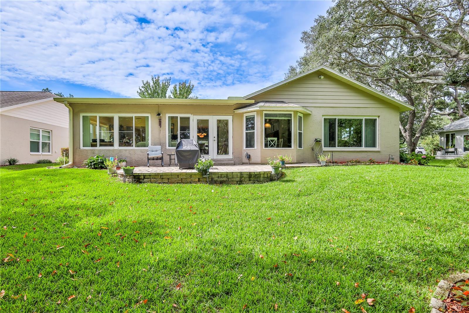 Bem-vindo a esta encantadora casa de 2 quartos e 2 banheiros, com vistas do buraco 5 no campo de golfe Grand Pines, com uma planta baixa desejável e muito espaço de estar. Entre na combinação de sala de estar e de jantar que cria uma entrada calorosa e convidativa. A casa também oferece uma lanai fechada espaçosa, perfeita como sala de família, escritório ou espaço flexível. A suíte primária inclui portas de vidro deslizantes para o Lanai, dois armários e um banheiro na suíte com pias de vaidade dupla, iluminação moderna, chuveiro e ladrilhos atualizados. O quarto de hóspedes também possui um grande closet e está convenientemente localizado perto do banho de hóspedes completo. A cozinha possui tetos abobadados, utensílios de aço inoxidável, armazenamento abundante de armários, dois armários de despensa e uma acolhedora área de jantar de janela de sacada com vista para o jardim e campo de golfe exuberante. A sala da família fora da cozinha facilita o entretenimento. A vida ao ar livre é uma delícia com um pátio de pavimentação com vista para os jardins exuberantes e vistas de campo de golfe. Destaques adicionais incluem uma lavanderia interna com pia, armários e armário de armazenamento, além de uma garagem de 2 carros com bancada e prateleiras. Telhado 2012. Windows 2019. HVAC 2021. Sprinklers no poço. Esta casa combina charme, funcionalidade e um belo cenário - pronto para seus novos proprietários desfrutarem!