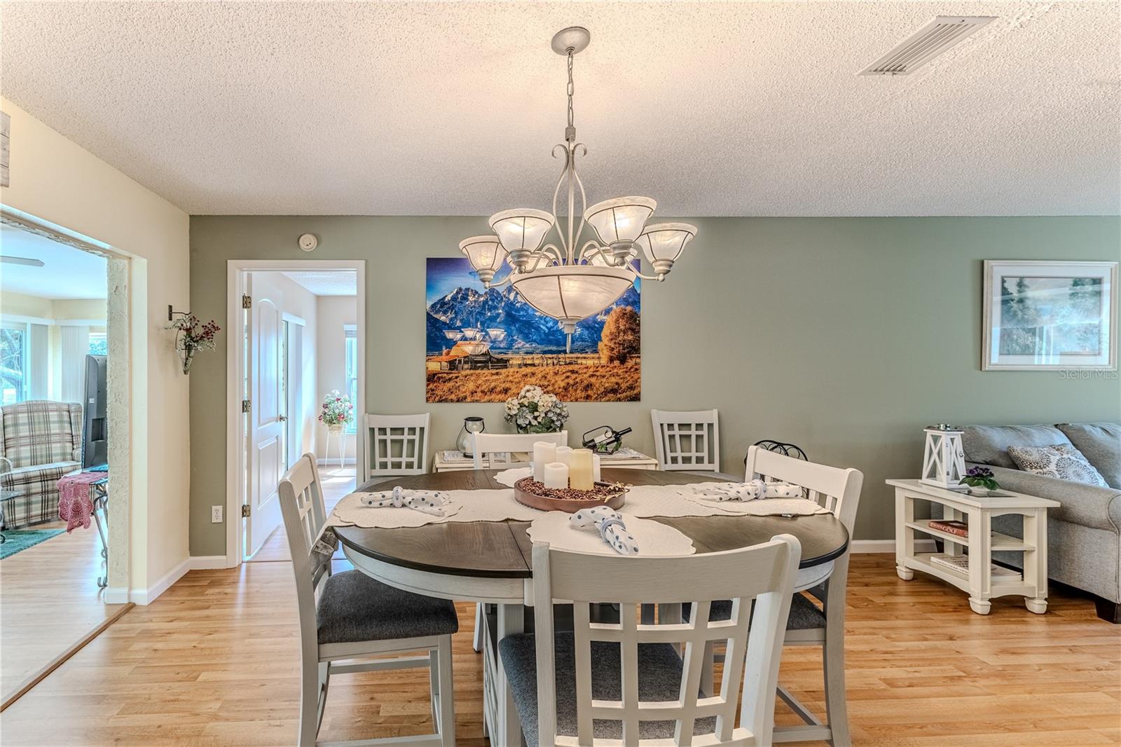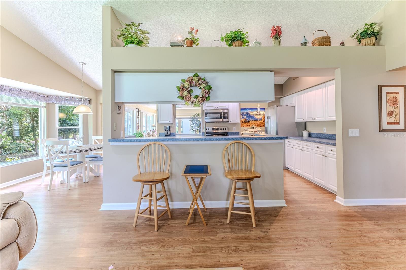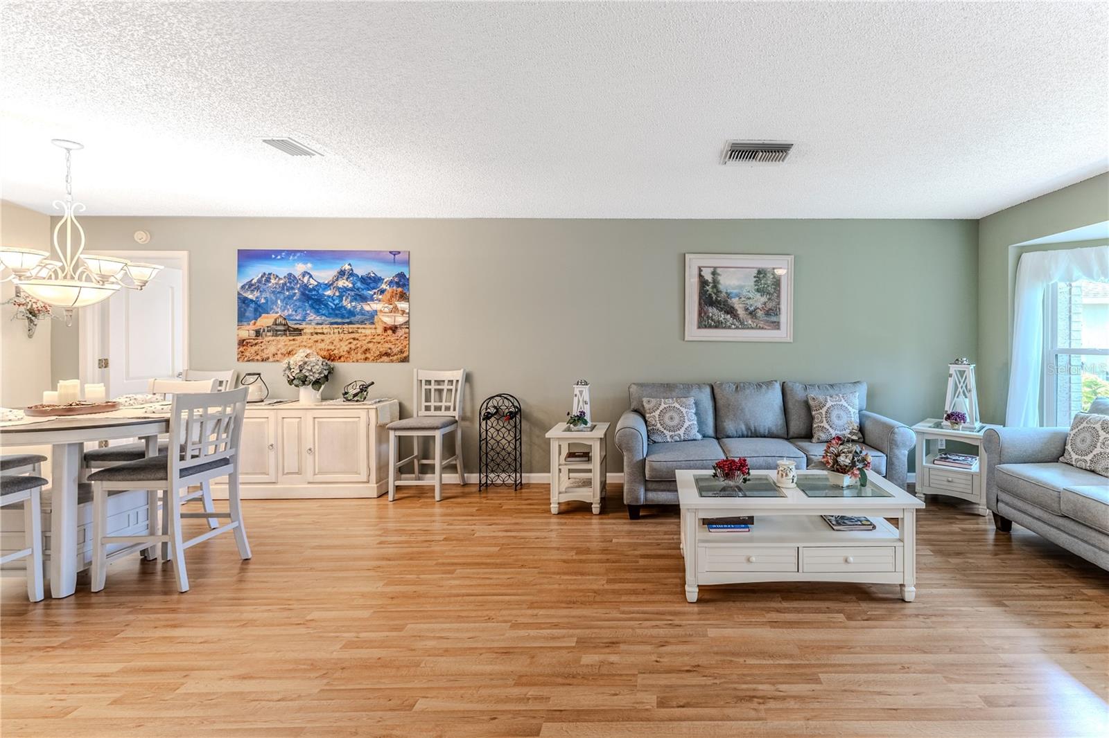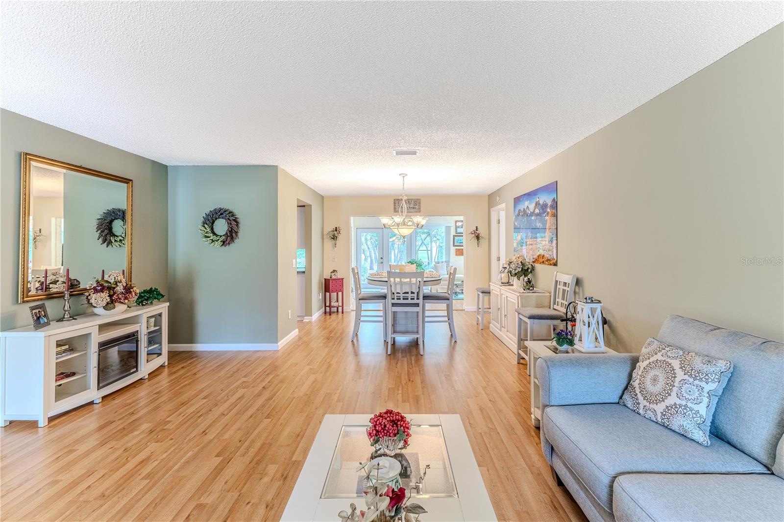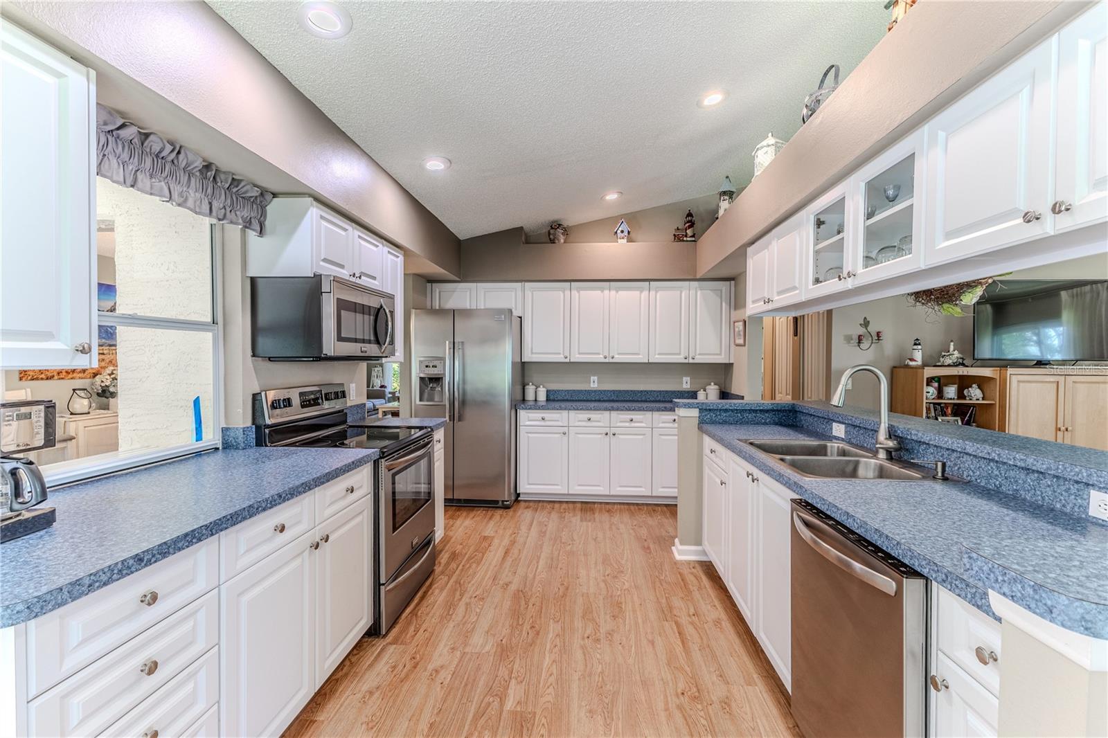 Bem-vindo a esta encantadora casa de 2 quartos e 2 banheiros, com vistas do buraco 5 no campo de golfe Grand Pines, com uma planta baixa desejável e muito espaço de estar. Entre na combinação de sala de estar e de jantar que cria uma entrada calorosa e convidativa. A casa também oferece uma lanai fechada espaçosa, perfeita como sala de família, escritório ou espaço flexível. A suíte primária inclui portas de vidro deslizantes para o Lanai, dois armários e um banheiro na suíte com pias de vaidade dupla, iluminação moderna, chuveiro e ladrilhos atualizados. O quarto de hóspedes também possui um grande closet e está convenientemente localizado perto do banho de hóspedes completo. A cozinha possui tetos abobadados, utensílios de aço inoxidável, armazenamento abundante de armários, dois armários de despensa e uma acolhedora área de jantar de janela de sacada com vista para o jardim e campo de golfe exuberante. A sala da família fora da cozinha facilita o entretenimento. A vida ao ar livre é uma delícia com um pátio de pavimentação com vista para os jardins exuberantes e vistas de campo de golfe. Destaques adicionais incluem uma lavanderia interna com pia, armários e armário de armazenamento, além de uma garagem de 2 carros com bancada e prateleiras. Telhado 2012. Windows 2019. HVAC 2021. Sprinklers no poço. Esta casa combina charme, funcionalidade e um belo cenário - pronto para seus novos proprietários desfrutarem!