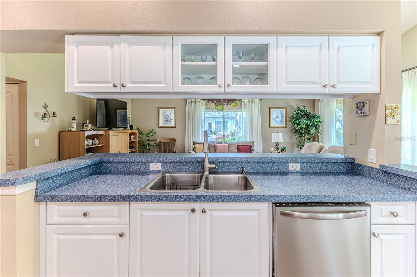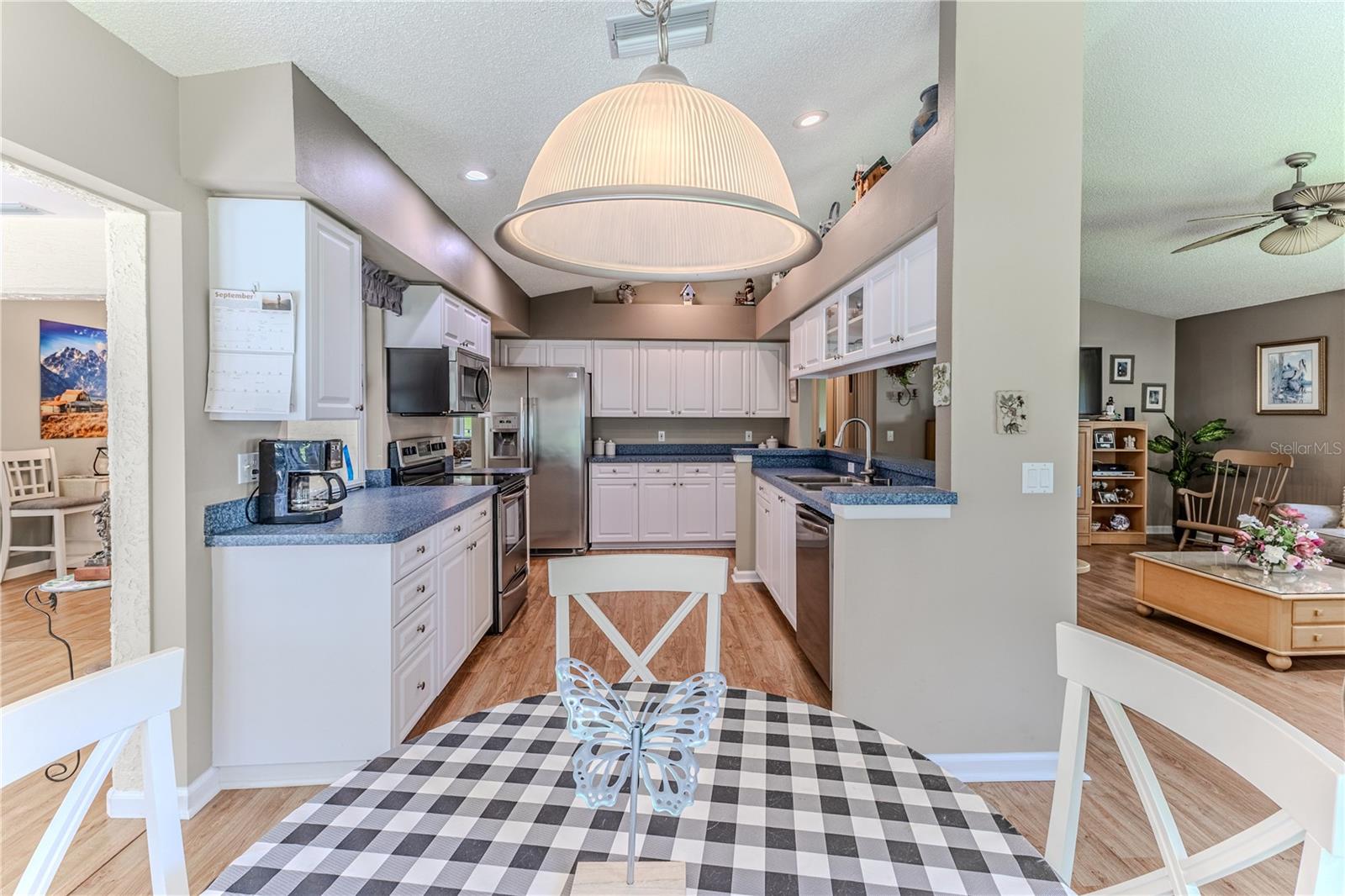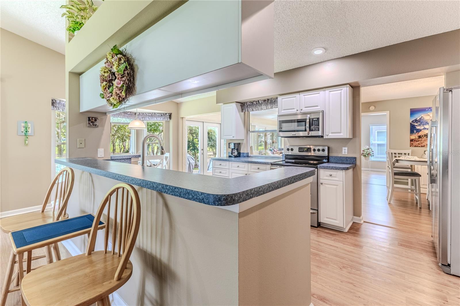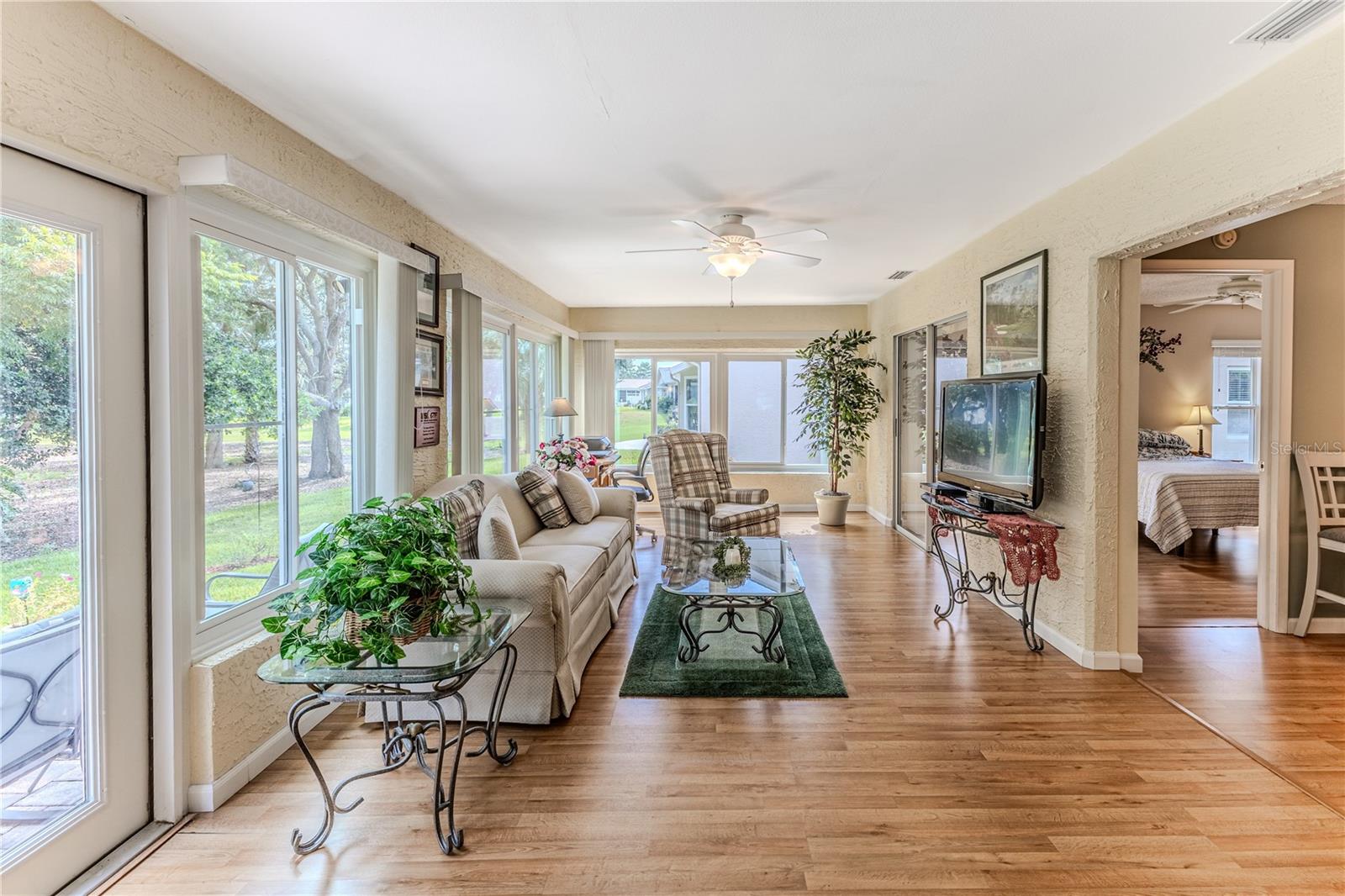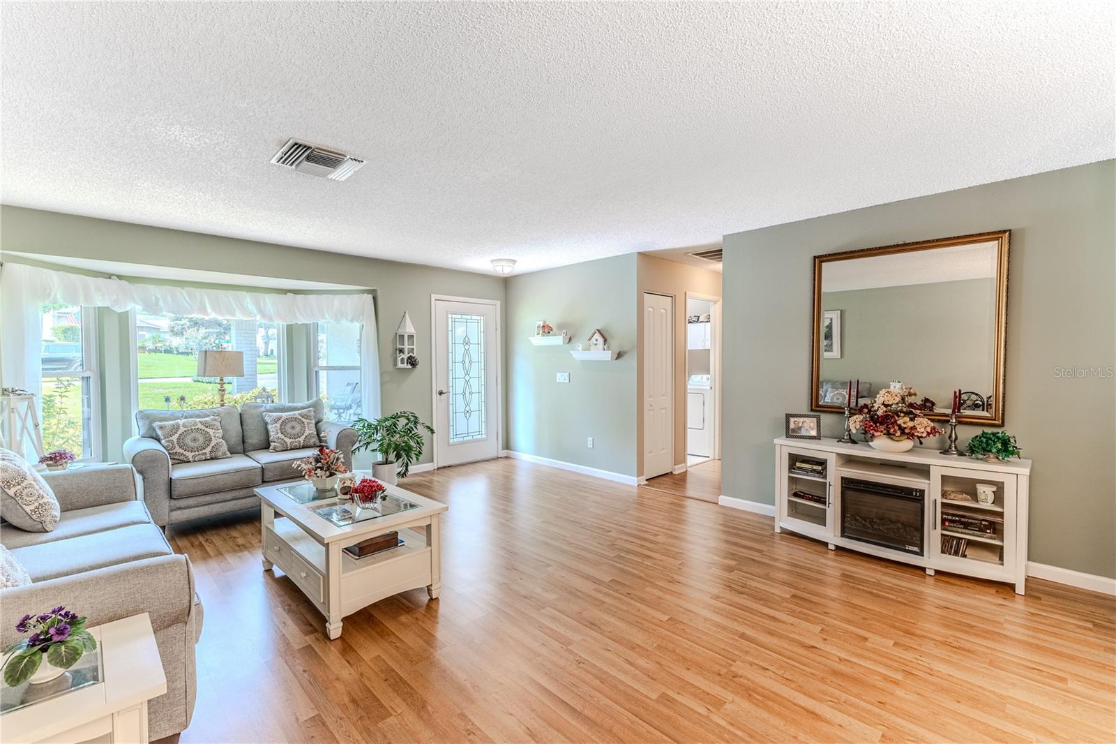 Bem-vindo a esta encantadora casa de 2 quartos e 2 banheiros, com vistas do buraco 5 no campo de golfe Grand Pines, com uma planta baixa desejável e muito espaço de estar. Entre na combinação de sala de estar e de jantar que cria uma entrada calorosa e convidativa. A casa também oferece uma lanai fechada espaçosa, perfeita como sala de família, escritório ou espaço flexível. A suíte primária inclui portas de vidro deslizantes para o Lanai, dois armários e um banheiro na suíte com pias de vaidade dupla, iluminação moderna, chuveiro e ladrilhos atualizados. O quarto de hóspedes também possui um grande closet e está convenientemente localizado perto do banho de hóspedes completo. A cozinha possui tetos abobadados, utensílios de aço inoxidável, armazenamento abundante de armários, dois armários de despensa e uma acolhedora área de jantar de janela de sacada com vista para o jardim e campo de golfe exuberante. A sala da família fora da cozinha facilita o entretenimento. A vida ao ar livre é uma delícia com um pátio de pavimentação com vista para os jardins exuberantes e vistas de campo de golfe. Destaques adicionais incluem uma lavanderia interna com pia, armários e armário de armazenamento, além de uma garagem de 2 carros com bancada e prateleiras. Telhado 2012. Windows 2019. HVAC 2021. Sprinklers no poço. Esta casa combina charme, funcionalidade e um belo cenário - pronto para seus novos proprietários desfrutarem!