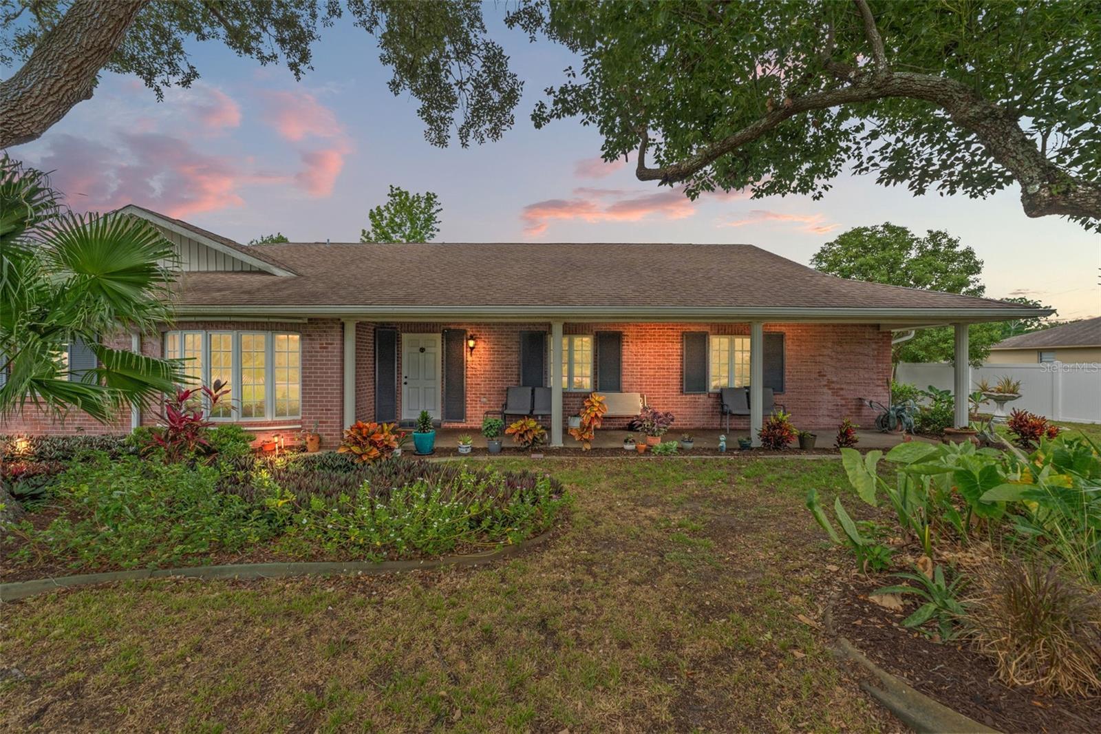 O charme do tijolo encontra a vida na Flórida! Casa estilo rancho com colunas, grande varanda frontal e PISCINA privativa em um terreno de esquina de 0,40 acres. NOVO TELHADO 2024. O endereço é na Horizon Drive, mas o acesso à garagem é na Carrin Road. No interior, uma prática divisão oferece 4 quartos / 3 banheiros / garagem para 2 carros sem carpete! Azulejo e laminado por toda parte. A sala, no centro da casa, tem uma LAREIRA em tijolo ladeada por estantes embutidas e portas francesas que abrem para a piscina. A cozinha possui armários de madeira, balcões Corian, geladeira preta, máquina de lavar louça preta, forno duplo preto e micro-ondas de aço inoxidável, com copa e área de jantar separada. Detalhes de acabamento em madeira por toda parte. Rodapés, grades de cadeiras e portas de madeira maciça que agregam durabilidade e aconchego. A suíte principal tem acesso direto à piscina e box amplo. O 4º quarto é amplo com armários duplos e pode servir como Suíte Primária Alternativa ou Sala Polivalente. Dois quartos adicionais e dois banheiros completos. Lá fora, aproveite a PISCINA cercada por tela com deck de pavimentação e um quintal CERCADO para seus cães/crianças. A/C 2011. Aquecedor de água 2024.
