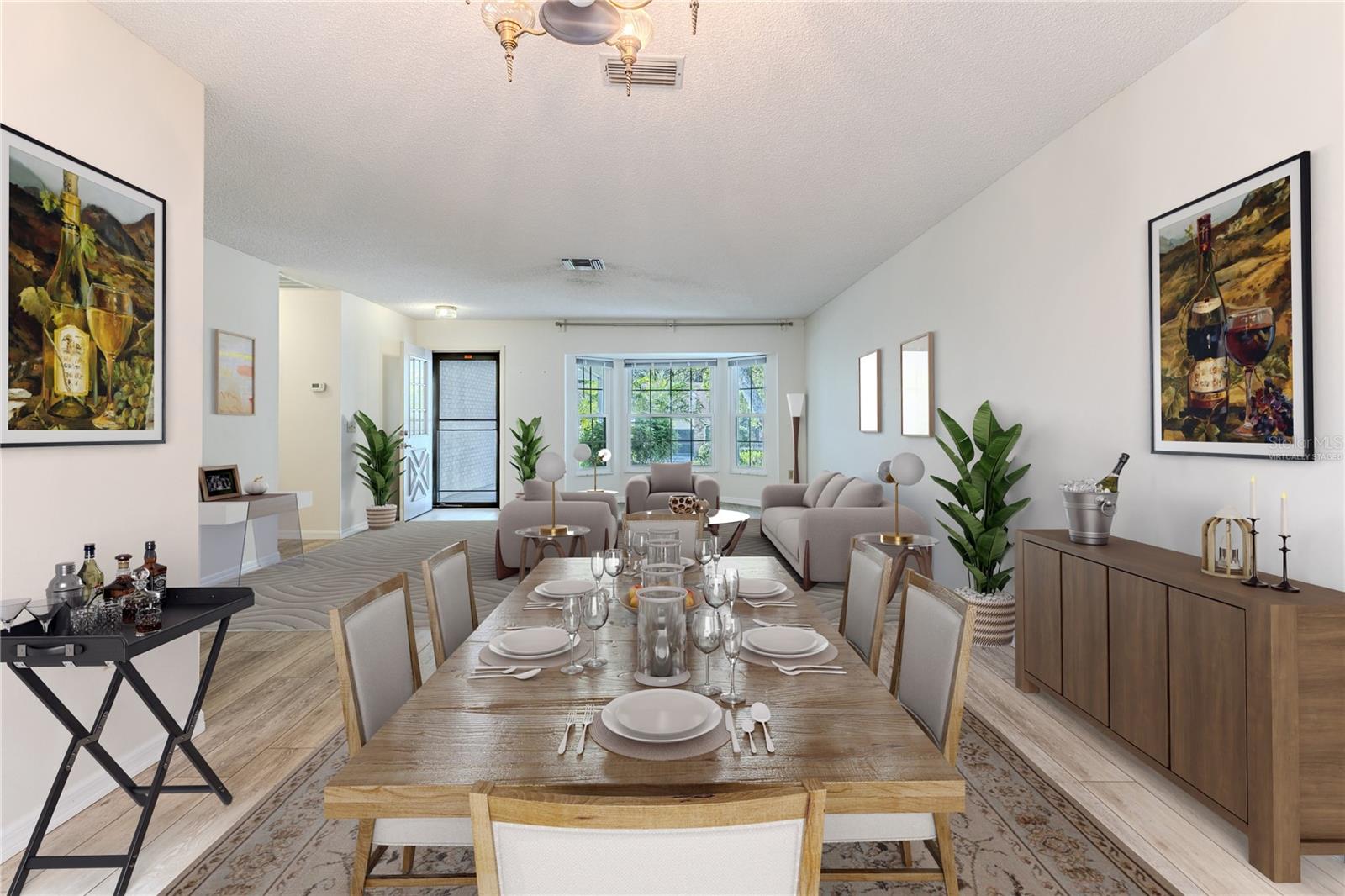Bem-vindo a esta encantadora casa de 2 quartos, 2 banheiros e garagem para 2 carros, situada em um terreno paisagístico com árvores maduras e graciosas palmeiras Robellini. A convidativa varanda da frente é perfeita para cumprimentar os vizinhos, enquanto a marquise privativa nos fundos oferece um retiro tranquilo com vista para o quintal. Entre em uma combinação de sala de estar e sala de jantar iluminada e aberta que flui perfeitamente para a marquise. A planta dividida oferece conforto e privacidade, com a espaçosa suíte principal com ventilador de teto, amplo closet, estantes embutidas e um banheiro privativo atualizado completo com uma penteadeira mais nova com tampo de mármore, box amplo e toalete novo. A cozinha foi cuidadosamente projetada com eletrodomésticos de aço inoxidável, exaustor, despensa, janelas panorâmicas e uma grande pia dupla. Uma janela de passagem conveniente se abre para a marquise, facilitando o entretenimento. Ao lado da cozinha, a sala familiar oferece espaço extra com ventilador de teto e bar seco - perfeito para relaxar ou receber convidados. O quarto de hóspedes possui um ventilador de teto novo e fica do outro lado do corredor do banheiro completo com toalete atualizado. Em toda a casa, você encontrará lindos pisos de pranchas de vinil luxuosos e janelas de painel duplo que se inclinam para facilitar a limpeza. A lavanderia interna inclui dois armários, armários para armazenamento e uma nova pia - além da lavadora e secadora! A garagem para 2 carros oferece armazenamento adicional com bancada embutida e escadas rebatíveis no sótão. Roof 2022. HVAC 2015. Windows 2020. Liquidação remediada com todos os documentos totalmente seguráveis e financiáveis. Timber Pines é uma comunidade premiada, fechada por guarda, com mais de 55 anos e com escritura restrita, que oferece um estilo de vida estilo resort: três campos de golfe de 18 buracos, um pitch & putt de 9 buracos, tênis, 12 quadras de pickleball, duas piscinas comunitárias, restaurante e bar do clube de campo, academia, bilhar, artes cênicas e mais de 100 clubes e atividades sociais. Com sua planta baixa cuidadosa, luz natural abundante e atualizações importantes do sistema, esta casa está pronta para morar. Não perca a chance de torná-lo seu!