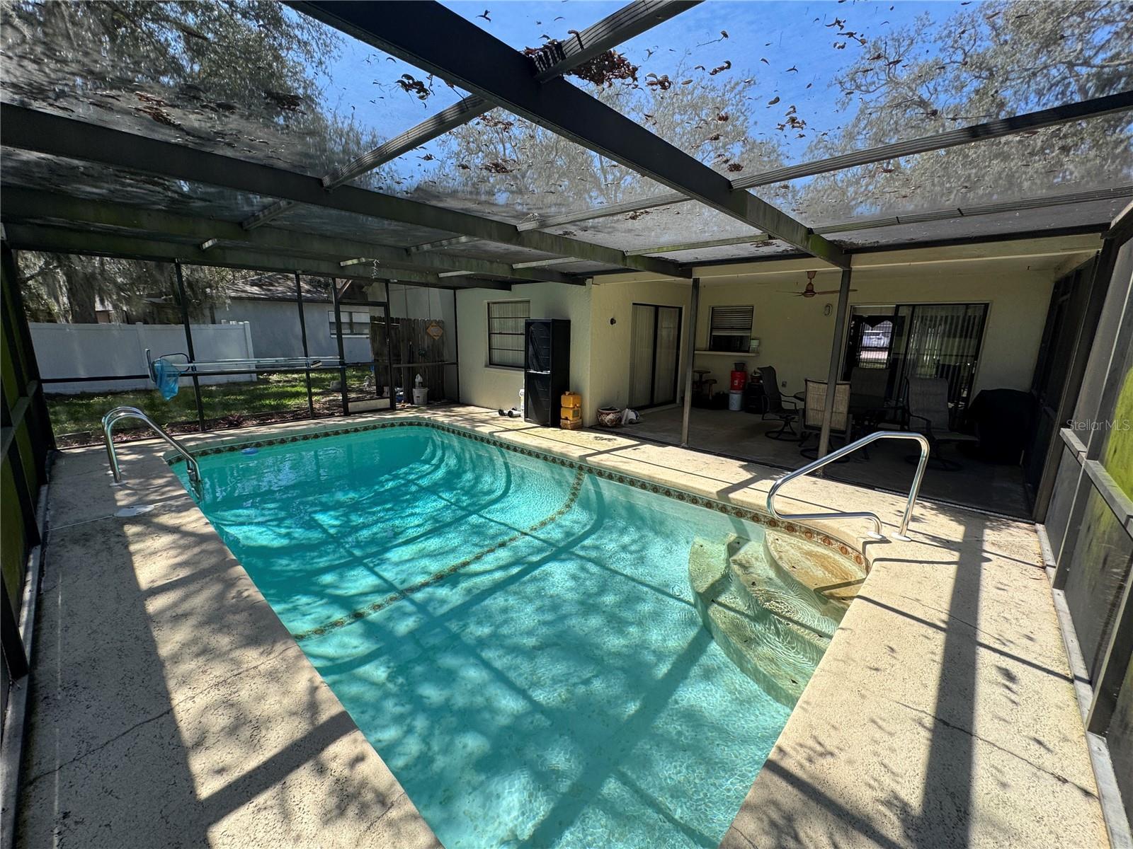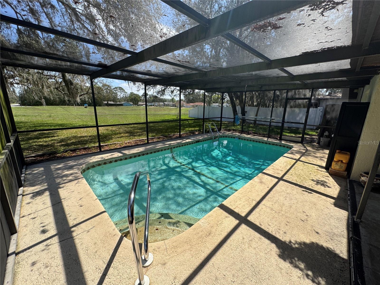 Bela casa com piscina de 2 quartos e 2 banheiros em Spring Hill. Área de drenagem atrás da casa, sem vizinhos traseiros e com bela vista. Piso de cerâmica na sala de estar, sala de jantar, sala de estar e cozinha. Belo laminado de madeira em ambos os quartos. Planta dividida. Ambos os quartos têm armários embutidos. A cozinha tem muitos armários e balcão e é bem iluminada com luzes LED mais recentes. Grande garagem anexa para 2 carros. Ambos os banheiros também foram atualizados. Piscina e varanda com tela, bem como pátio externo adicional. Belas árvores no jardim da frente. A garagem também tem telas. Bela casa. Ligue hoje!