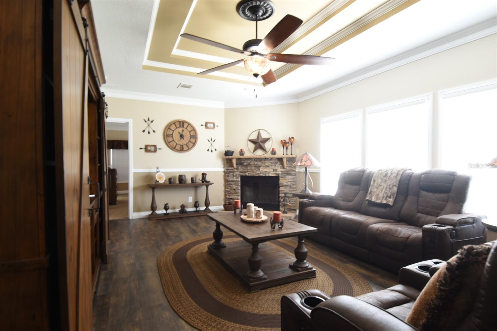 Uau! Linda casa fabricada em 2018 personalizada e carregada de atualizações! As características incluem uma cozinha personalizada com armários de madeira, ilha grande, bancadas de granito, eletrodomésticos de inox e bar seco. Planta dividida com espaçosa suíte principal oferecendo teto falso, sancas, enorme closet e banheiro privativo com pia dupla em granito e armários personalizados. Grande sala apresenta lareira de pedra empilhada, teto de bandeja e sancas. Paredes/tetos de drywall, tinta fresca, janelas de vinil de painel duplo e revestimento de placa Hardie no exterior. Aproveite a varanda de 40 pés com teto isolado, ventiladores e iluminação com vista para um sereno lago de carpas e fonte de água. A propriedade inclui estacionamento coberto, uma enorme garagem individual de 40x50 com ventiladores elétricos industriais e 3 portas de enrolar, além de garagem para trailers, 50 A e conexão de água. Totalmente cercado e cercado com cercas de privacidade de vinil e portões grandes. Tudo em 0,61 acres. Ideal para entusiastas de carros, proprietários de trailers, velejadores ou amantes de brinquedos! Sem restrições de escritura, sem HOA. Convenientemente localizado perto da SR 50, com ótimas lojas e restaurantes.