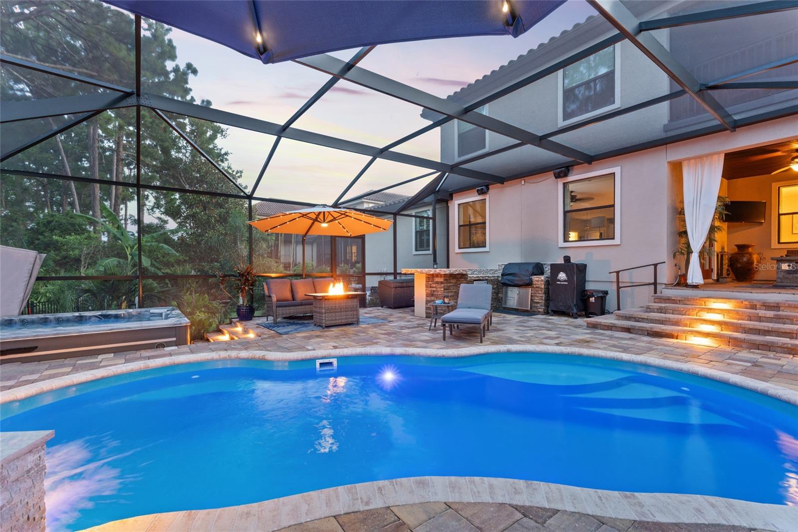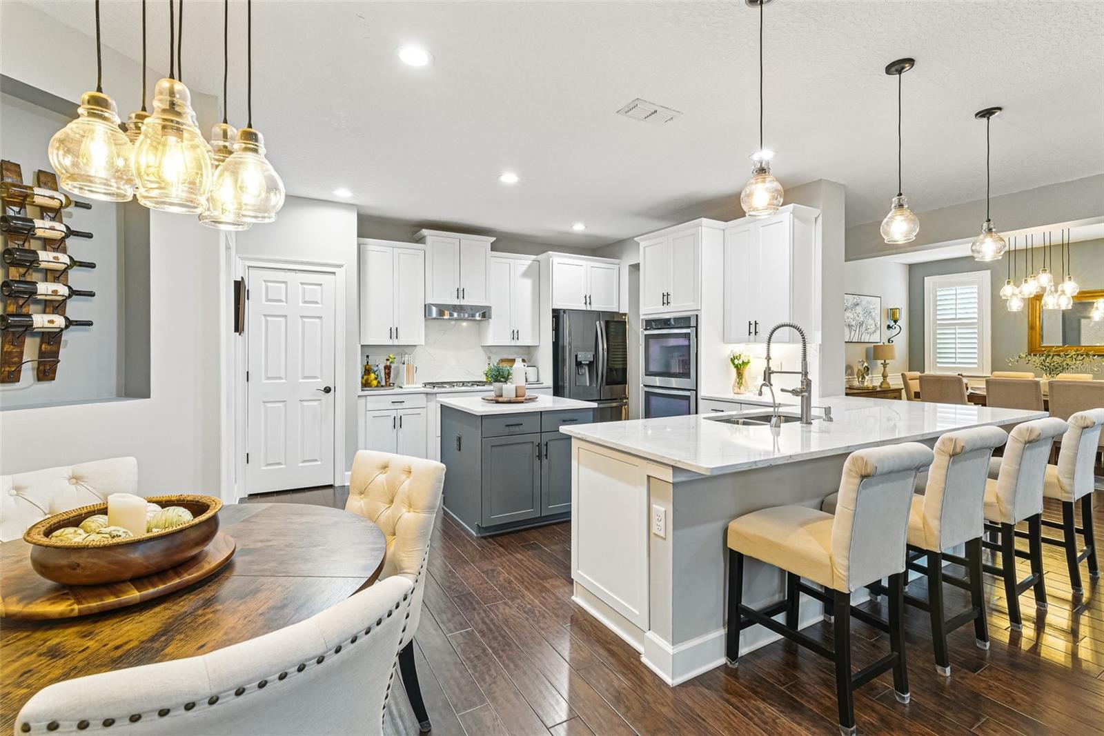 Welcome to Palencia: one of the most sought-after gated communities in Northeast Florida. Your personal resort awaits. This stunning home boasts a classic Mediterranean exterior with a barrel tile roof and an inviting façade that evokes a timeless charm. No entanto, quando você entra, você é recebido por um layout contemporâneo de conceito aberto que combina perfeitamente conforto e sofisticação, criando um equilíbrio perfeito entre a elegância tradicional e a vida moderna. Boasting nearly 4,000 square feet, this impressive home includes 5 bedrooms and 5 bathrooms, along with a dedicated executive office. Features a first-floor primary suite for ultimate convenience. A área externa é um verdadeiro destaque, mostrando um lanai estendido com um spa e uma piscina de água salgada, perfeita para relaxamento e recreação. A cozinha de verão oferece um ótimo espaço para grelhar e refeições ao ar livre, enquanto a vista panorâmica da lagoa aumenta o apelo geral, tornando essa propriedade uma excelente opção para desfrutar de um conforto interno e experiência ao ar livre. Recently updated gourmet kitchen with expansive island breakfast bar seamlessly connects the living and dining areas. The spacious formal dining room, accentuated by architectural details, offers a perfect setting for both family gatherings and the guests. The French doors of the living room leading to the lanai are an invitation to enjoy Florida living at its best. The first-floor spacious office, elegantly appointed with French doors, currently serves as an inviting space for entertaining. Upstairs boasts a great bonus room with bar area and a terrace overlooking your backyard paradise. There are four more bedrooms and three more full bathrooms ensuring plenty of space for your family and guests. Are you ready to embrace the Palencia lifestyle! Desfrute de uma série de comodidades excepcionais, incluindo um campo de golfe de 18 buracos, um centro de tênis com dez quadras, um centro de natação e mais de 30 acres de parques lindamente mantidos com trilhas para caminhada e ciclismo, bem como a pitoresca Reserva do Twalk River Tolomato. Zoned for A rated schools and conveniently located close to shopping, restaurants, US 1 and I -295. Short commute to the downtown Jacksonville and St Augustine. The builder bond assessment of the CDD is fully paid off, enhancing the value of this remarkable property.