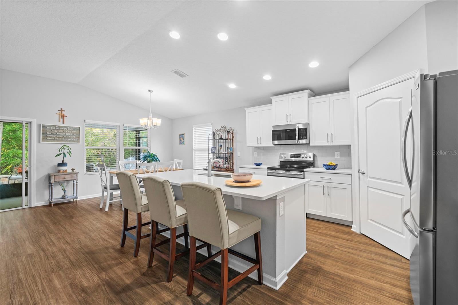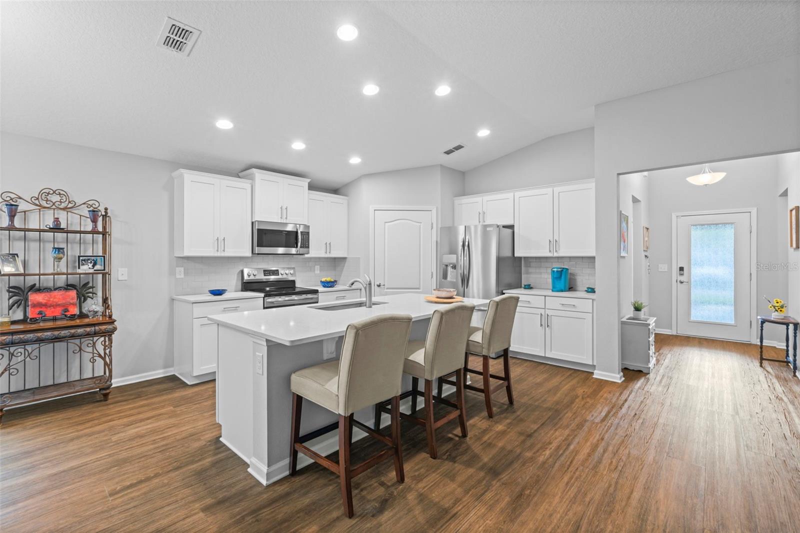 Experimente a vida sem esforço nesta casa lindamente mantida de 3 quartos, localizada em uma comunidade fechada de 55 anos, onde os cuidados com o gramado estão incluídos. Cercado por vistas serenas da Preserve e projetado para conforto, esta casa oferece um retiro pacífico a poucos minutos do histórico centro de São Augustine e das praias. O quintal totalmente cercado apresenta um pátio de pavimentação elevado e um espaçoso lanai de tela dupla, criando o cenário perfeito para entreter ou simplesmente desfrutar do ar livre. No interior, o conceito aberto destaca o piso de tábua de vinil de luxo, uma cozinha elegante com bancadas de quartzo, acessórios atualizados e espaço generoso para hospedar familiares e amigos. As características incluem um amaciador de água, poço de irrigação profunda, piso de garagem revestido com epóxi e um título de cupins. Se você começa o seu dia com café na varanda da frente ou terminando relaxando no convés traseiro, esta casa oferece um estilo de vida de baixa manutenção com acesso às comodidades das comunidades Freedom e San Salito.