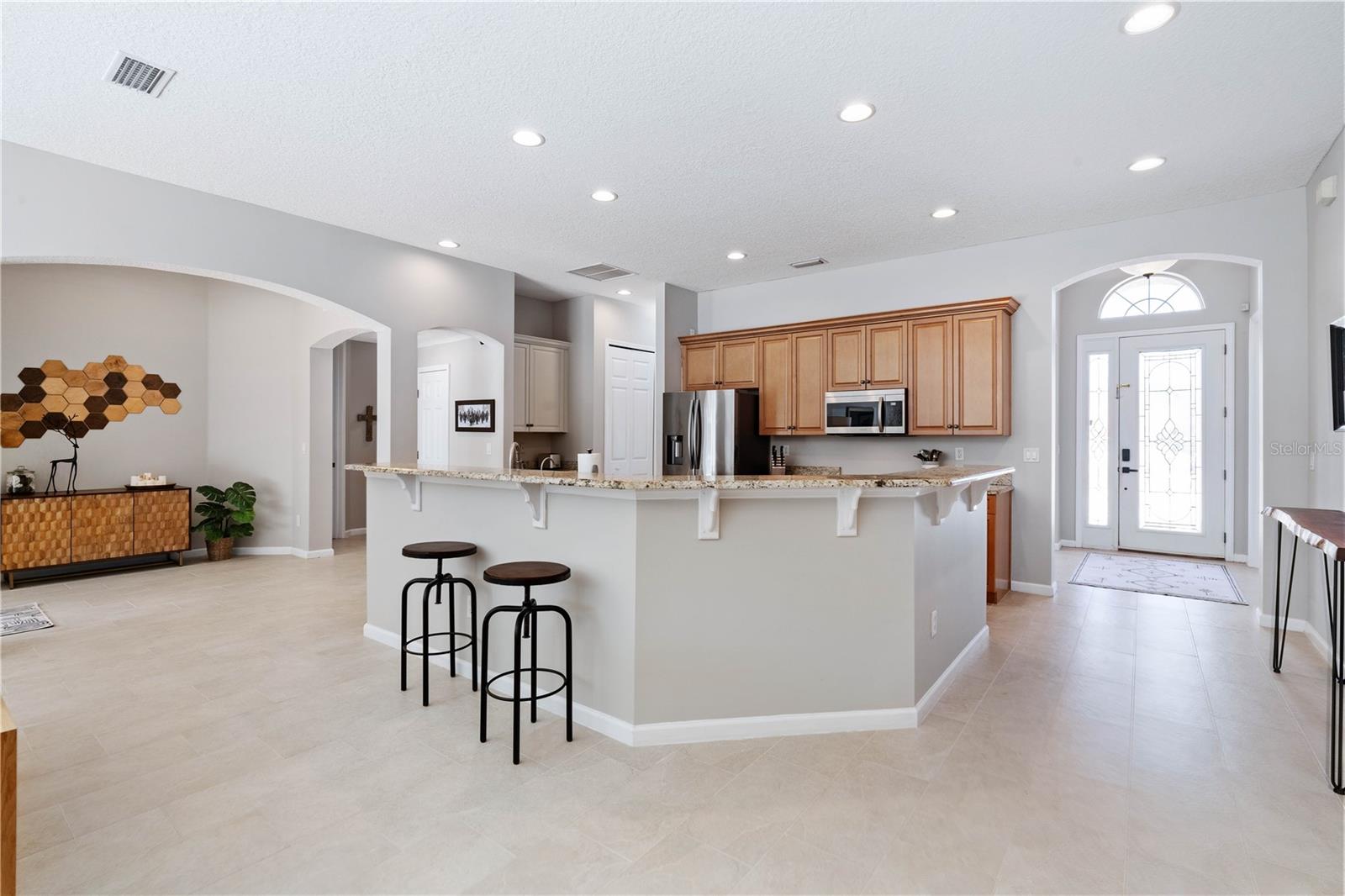Desfrute de uma fatia de paz e privacidade nesta casa de bloqueios de concreto Brothers em casa em Tuscany Ridge. A serenidade desta casa 4BR/4BA 2844 pés quadrados flui perfeitamente, desde os banheiros completamente refeito, com compromissos semelhantes a spa até a linda suíte de quarto principal com pisos de mármore e incrustação de bambu. O Proprietário Pride realmente aparece com toneladas de atualizações, incluindo novos pisos, todos os novos aparelhos, aquecedor de água sem tanque, novo AC, luminárias e ventiladores, tratamentos de janelas, sistemas de armazenamento, etc. Planta aberta com muita luz natural. Entre no vestíbulo e observe o espaço do escritório com as portas francesas à esquerda e jantando para a direita. O divertido será uma alegria com uma grande área de cozinha aberta para a sala de estar ... tudo com uma excelente vista da piscina fechada e do cenário de quintal privado. O plano dividido permite a privacidade do quarto de hóspedes. 4º quarto ou espaço de bônus no andar de cima com seu próprio banheiro atualizado. Agende sua consulta para realmente apreciar todos os recursos do designer desta linda casa!