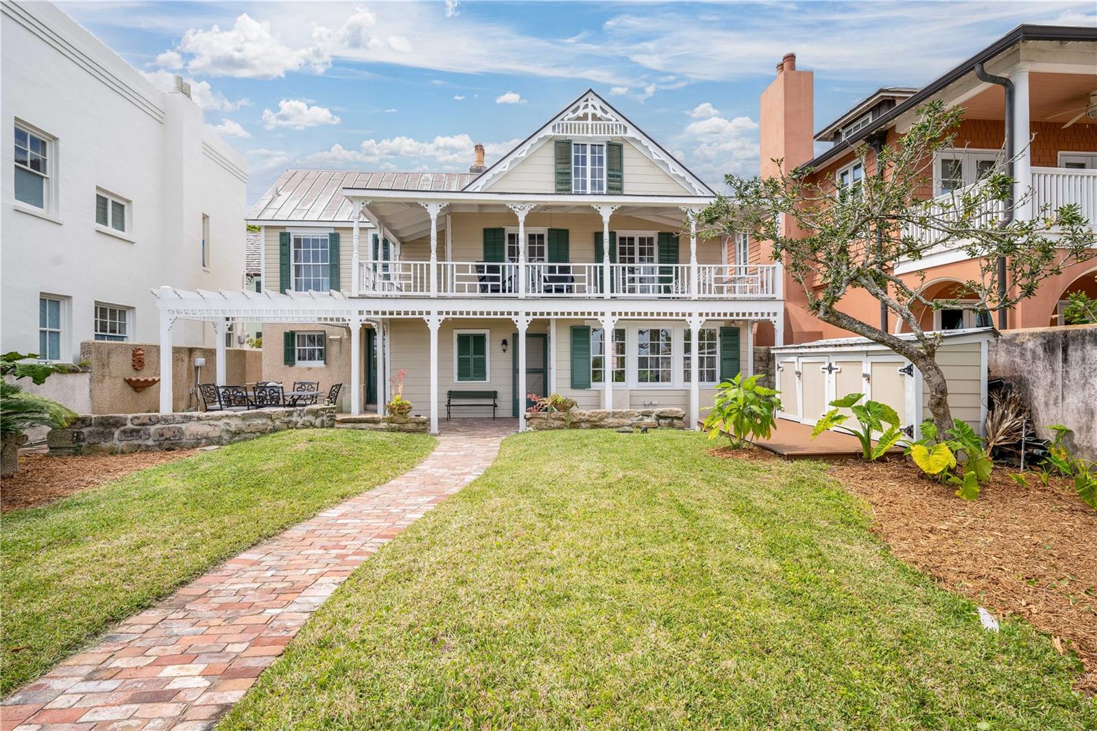 Bem-vindo à Casa Rovira-Hernandez na Avenida Menendez, no centro histórico de St. Com a estrutura original datada de 1754, esta propriedade está repleta de história; proprietários notáveis incluem Charles Gobert e Alexander Hamilton. Partes da estrutura do andar de baixo, especificamente a idade da coquina, fazem desta uma das poucas casas coloniais espanholas originais que ainda existem. Posicionado à beira-mar do Rio Mantazas, com varanda voltada para o leste com vista para o Farol de Santo Agostinho e a marina, os visitantes entram no grande pátio murado através de um portão de ferro forjado. Do jardim, as vistas idílicas do canal são emolduradas por palmeiras nativas, enquanto uma passarela de tijolos leva à entrada da propriedade e à área de estar externa. O ambiente intimista é perfeito para entretenimento e realização de eventos. Ao entrar no grande hall de entrada, os detalhes personalizados do teto de madeira chamam a atenção. Esta entrada tradicional é grande o suficiente para ser usada como uma pequena sala de leitura ou como área de entretenimento para coquetéis ou outros eventos sociais. Do hall de entrada, uma grande escadaria leva ao segundo andar, enquanto múltiplas aberturas levam você para a sala de estar. Equipada com lareira e muitas janelas, esta área de encontro funciona como o coração da casa, dando um tom de calor e amplitude. A cozinha do chef fica fora da área de estar, com espaço para refeições e portas externas que levam à área de refeições ao ar livre e à entrada do mordomo na Marine Street. Subindo a escada de madeira até o segundo andar, você é recebido por um patamar iluminado pelo sol, com grandes janelas fiéis à época que levam você para a grande varanda. Os quartos da casa e um banheiro completam o segundo andar. A divisão central que funciona como terceiro quarto dispõe de lareira com moldura em tijolo, tectos abobadados em madeira e porta para a varanda virada a poente. A beleza desta sala convida a muitas ideias de utilização, mais um local acolhedor para reuniões familiares, uma biblioteca, ou mesmo um local de entretenimento. Uma escada escondida leva ao terceiro andar e ao sótão. O espaço possui uma janela com vista deslumbrante para o leste, podendo ser convertido em área de dormir ou home office. Não perca a oportunidade de possuir um pedaço de história em uma das cidades mais emblemáticas da Flórida. O proprietário está oferecendo financiamento a um comprador qualificado com uma oferta e termos aceitáveis. Ligue para os agentes de listagem para obter mais detalhes.