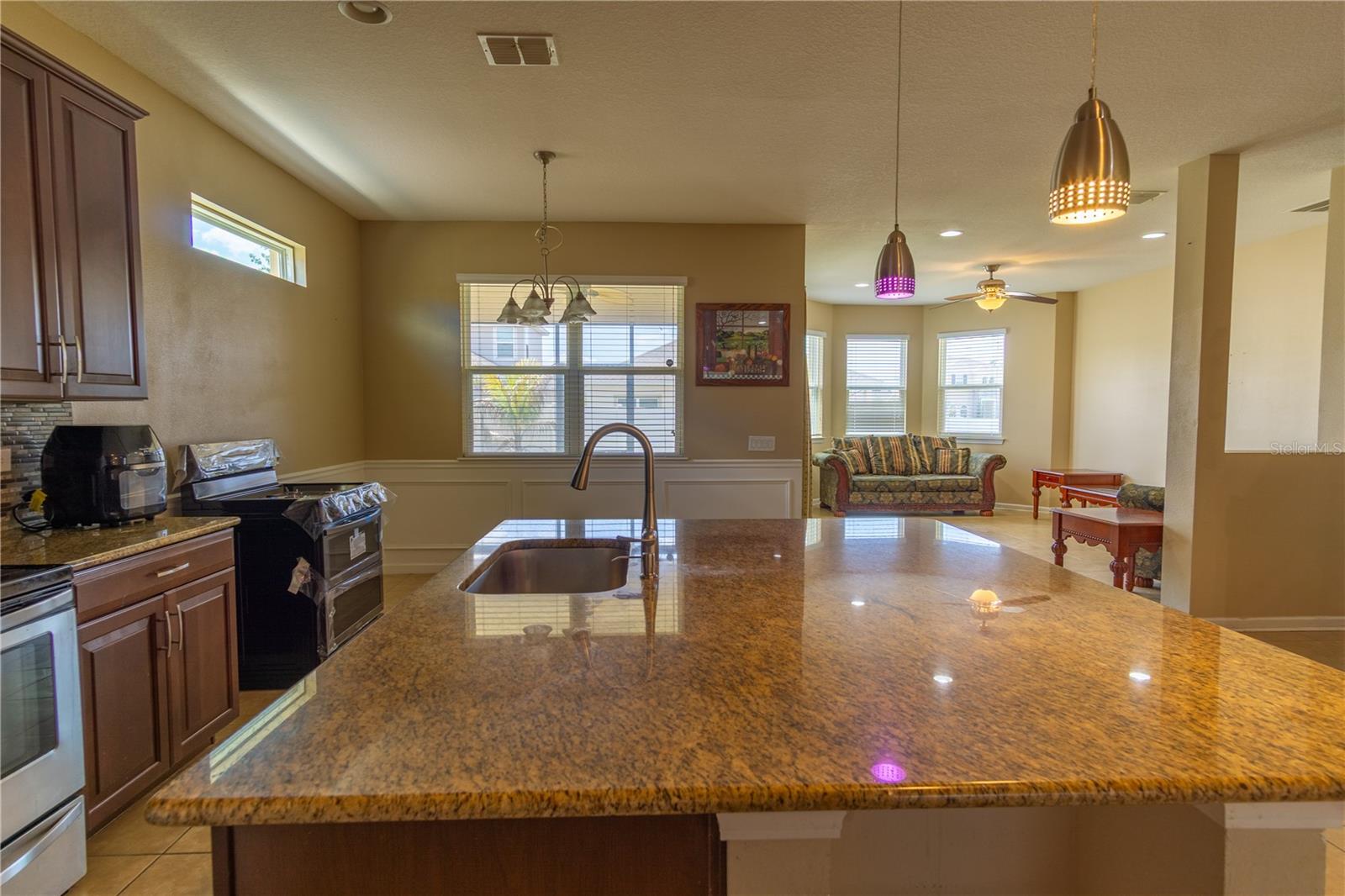 Bem -vindo à reserva em Turtle Creek. Esta propriedade possui um espaçoso layout de 4 quartos e 3,5 banheiros com 2.347 pés quadrados de espaço de estar, situado em um lote de canto ao sul de Lake Nona. A casa inclui uma garagem de 2 carros com opções de estacionamento em tandem, que podem acomodar um carrinho de golfe, um barco ou podem ser transformadas em uma mancave. Ao entrar, você encontrará um espaço brilhante e arejado, com os dois primeiros quartos localizados na frente da casa, compartilhando um banheiro de Jack e Jill. A cozinha foi projetada para cozinhar e divertir, com bancadas em granito, utensílios de aço inoxidável, uma ilha espaçosa e uma despensa considerável. Esta área flui naturalmente para a grande sala familiar. O quarto principal é generoso e cheio de luz natural, acompanhado por um espaçoso banheiro da suíte e um grande closet. A área de lavanderia está convenientemente localizada perto do closet primário. O quarto final está situado no andar de cima e inclui seu próprio banheiro privativo, tornando-o um espaço ideal para um membro da família de interpolação ou multi-generacional em busca de privacidade. Os moradores da comunidade podem desfrutar de comodidades como uma bela piscina e playground. A Preserve em Turtle Creek está convenientemente localizada a poucos minutos do centro de St. Cloud's Shops and Restaurants, com fácil acesso a Lake Nona Medical City, Aeroporto Internacional de Orlando, parques temáticos e grandes rodovias, aumentando seu apelo como uma localização privilegiada. Não perca a chance de tornar esta casa a sua. O ventilador de teto no quarto primário não transmite. Fotos adicionais a serem enviadas nos próximos 2 dias