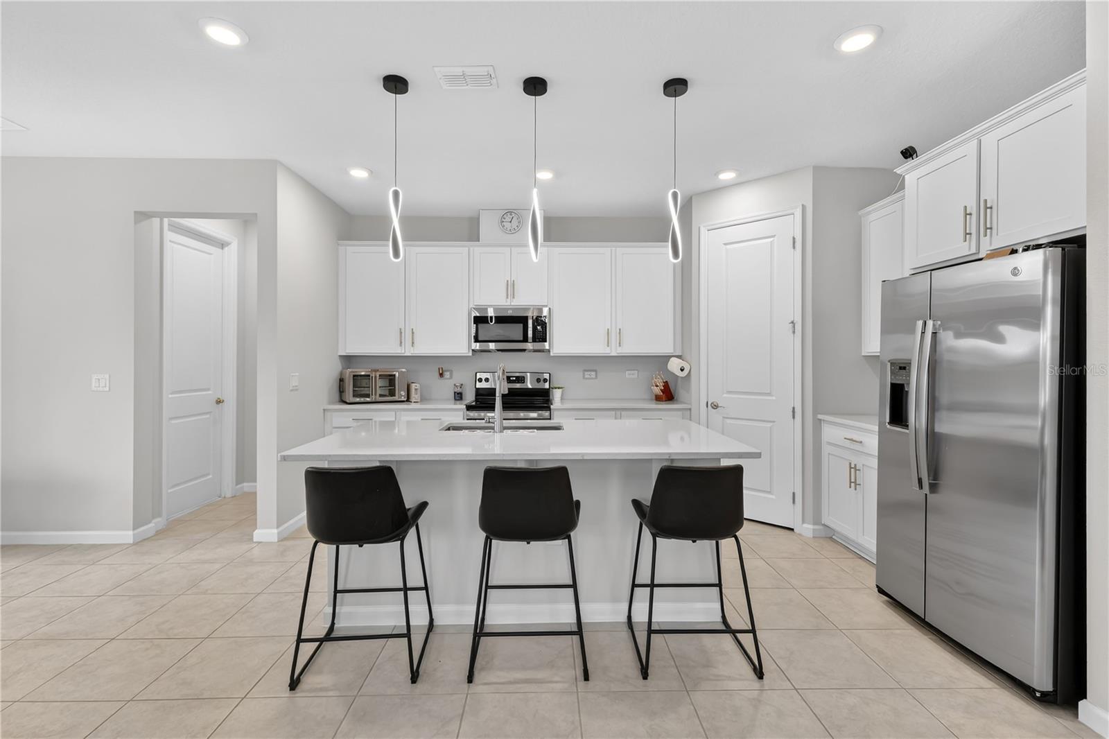 Você não vai querer perder esta casa de 3 quartos e 2 banheiros, impecavelmente mantida e pronta para morar, situada no coração de St. Cloud - onde atualizações modernas encontram conforto, eficiência e privacidade. A partir do momento em que você entra, você notará a pintura interior fresca, a iluminação atualizada e o toque contemporâneo e luminoso que fazem esta casa realmente se destacar. O design de conceito aberto é ideal tanto para a vida cotidiana quanto para entretenimento, apresentando uma cozinha espaçosa completa com elegantes bancadas de quartzo, uma grande ilha central e fluxo contínuo para as áreas de estar e jantar. Ao virar da esquina, um espaço de mesa embutido cuidadosamente projetado oferece o local perfeito para trabalhar em casa ou manter-se organizado. Saia para sua varanda protegida e relaxe enquanto desfruta de vistas tranquilas da floresta - sem vizinhos traseiros significa maior privacidade e tranquilidade. O exterior frontal foi aprimorado com pavimentação, aumentando a atratividade e a funcionalidade do meio-fio. Esta casa também oferece atualizações valiosas, incluindo painéis solares para eficiência energética e piso de madeira compensada no sótão para armazenamento adicional conveniente. Oportunidade de valor agregado: O vendedor está disposto a contribuir para o pagamento dos painéis solares em termos aceitáveis, ajudando a reduzir o custo total do saldo solar do comprador e maximizando a economia a longo prazo. Os residentes têm acesso a comodidades fantásticas da comunidade, incluindo uma piscina estilo resort, área de recreação para crianças e playground coberto - tudo com um HOA baixo de apenas US$ 320 por trimestre e SEM taxas de CDD. Idealmente localizada perto de lojas, restaurantes e principais rodovias, esta casa oferece a combinação perfeita de localização, estilo de vida e valor. Agende sua exibição privada hoje – esta marca todas as caixas!