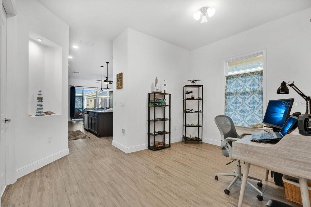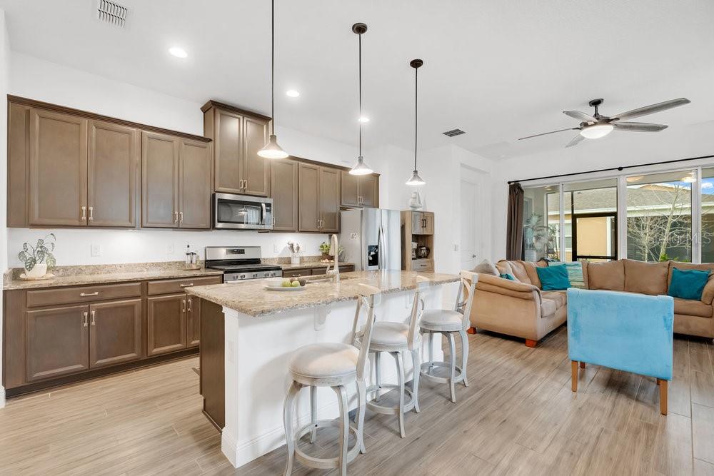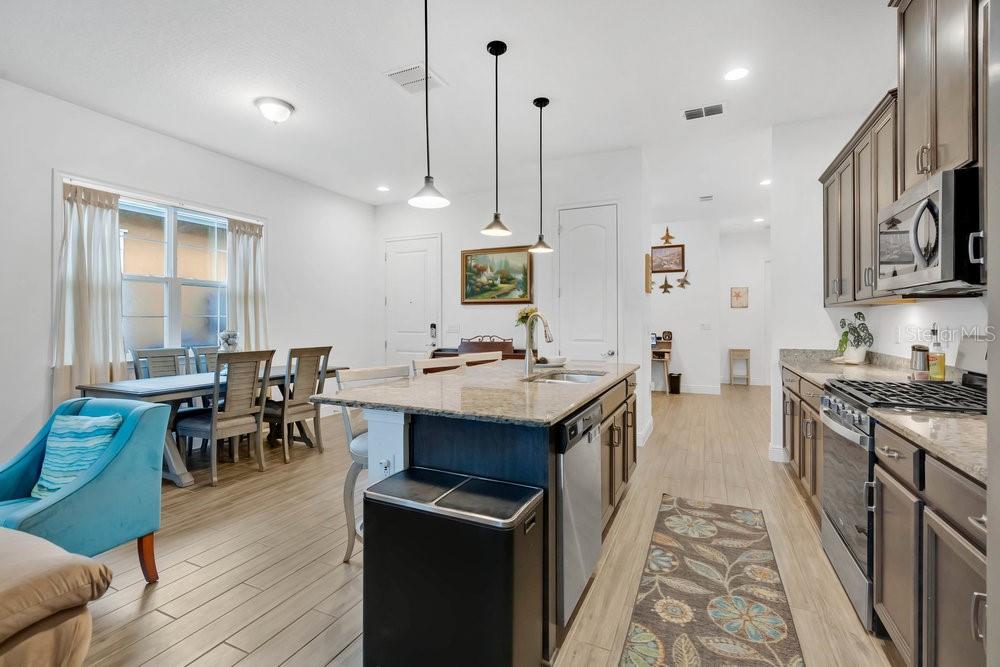 Linda vila de 2 quartos em Del Webb Twin Lakes 55+ Comunidade Entre nesta vila meticulosamente mantida de 2 camas e 2 banheiros, com uma planta baixa com uma espaçosa cozinha de ilha que abre para as áreas de jantar e de estar. The kitchen boasts upgraded Grey Maple 42" cabinetry, granite countertops, and stainless steel appliances for a modern touch. The living area shines with 10 foot ceilings which create an open and majestic feel, upgraded wood-look tile flooring and is wired for surround sound—perfect for entertaining. The outdoor screened lanai offers a relaxing atmosphere to enjoy your morning coffee or evening glass of wine! The primary suite, with enough space for a O California King oferece um grande closet, pias duplas e um espaçoso chuveiro fechado de vidro. Características notáveis adicionais: Piso epóxi de grandes dimensões na garagem com espaço para carrinho de golfe/outros brinquedos Rodapés de 5 polegadas em toda a casa Calha de chuva Windows com classificação de furacão Janela personalizada e acabamento da porta Twin Lakes 55 Comunidade-Vida no estilo resort Localizada no procurado Del Webb Twin Lakes, esta comunidade adulta ativa oferece uma variedade de comodidades, incluindo: Um clube à beira -mar com vistas deslumbrantes Piscina e sauna em estilo resort para relaxar Tênis, pickleball e quadras de bocha para vida ativa Centro de Fitness de última geração Uma variedade de clubes comunitários e atividades sociais Não perca a chance de desfrutar de um luxo que vive em uma comunidade vibrante e rica em amenidades!