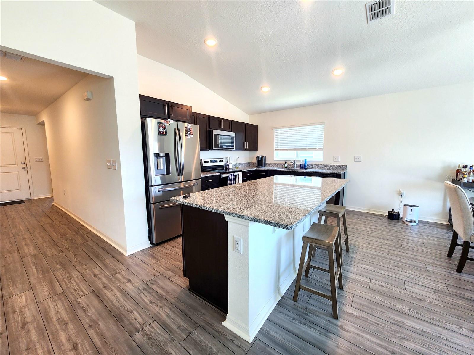 QUEDA DE PREÇO DE US$ 17 mil - SEM CDD - MOVE-IN PRONTO E ATUALIZADO! Bem-vindo a esta casa térrea lindamente atualizada, perfeita para famílias, compradores de primeira viagem ou investidores que procuram uma propriedade sem complicações. O design de conceito aberto apresenta luxuoso piso de pranchas de vinil, uma espaçosa sala com tetos abobadados e muita luz natural que cria uma atmosfera acolhedora e convidativa. A cozinha moderna é um verdadeiro destaque, com bancadas em granito, eletrodomésticos em aço inoxidável e amplos armários, facilitando as refeições do dia a dia e o entretenimento. A suíte principal oferece conforto e estilo com um amplo closet e um banheiro tipo spa completo com pias duplas e box amplo. Saia para o seu retiro privado no quintal, aprimorado com pavimentação estendida - o local perfeito para reuniões familiares, churrascos ou simplesmente aproveitar o sol da Flórida. Esta casa combina conforto, estilo e comodidade, com todas as atualizações já feitas para você. Não perca a chance de possuir uma joia verdadeiramente pronta para o próximo capítulo!