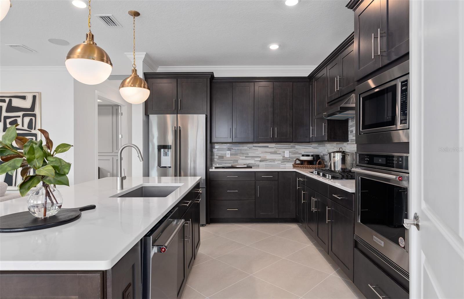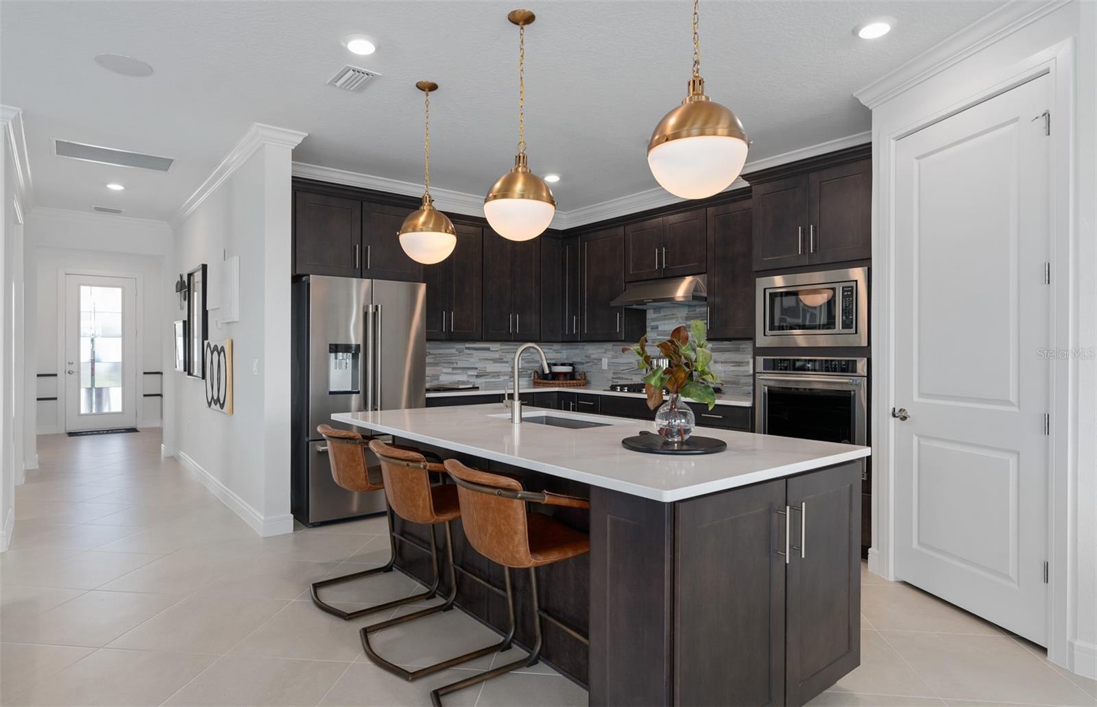 Del Webb, pioneiro da vida adulta ativa agora está vendendo em lagos gêmeos e adicionando ainda mais ao amor neste bairro próspero! Os moradores vão adorar o clube de orla concluído (incluindo um barco comunitário!) E pode esperar comodidades adicionais em breve! Este bairro fechado e de gás natural está esperando apenas por você. Visite 4 modelos de designers, hoje! Entre na mística de Pulte, uma casa de um andar, oferecendo 3 quartos espaçosos, 2 banheiros lindamente decorados e uma sala flexível fechada. O layout de conceito aberto conecta perfeitamente a cozinha gourmet, o café e a sala de reuniões, criando uma atmosfera arejada. As muitas janelas banham todo o espaço em luz natural, elevando a sensação geral de abertura. O coração da casa é a cozinha inspirada no chef, onde os armários brancos de Dana encontram bancadas de quartzo de lagoa luxuosas. Recursos cuidadosamente projetados, como gavetas de perto, armários de canto de fácil alcance, bandejas de lançamento duplo e uma gaveta de cestas de resíduos tornam a cozinha tão funcional quanto bonita. Um backsplash decorativo de ladrilhos de metrô e pia de tigela única aumentam o espaço, enquanto os utensílios inoxidáveis de aço inoxidável - incluindo uma geladeira e uma ventilação de capuz para o exterior - segura, você tem tudo o que precisa para refeições diárias e ocasiões especiais. A cozinha flui sem esforço para o café e a sala de reuniões, onde uma porta de vidro deslizante de canto zero leva à Lanai com cobertura estendida, tornando esta casa ideal para uma vida sem interior e interior. Retire-se para a luxuosa suíte do proprietário, um santuário sereno com um espaçoso closet e um banheiro de spa. Pia de vaidade dupla, um chuveiro emoldurado por vidro, um vaso sanitário fechado e um armário de linho completam o espaço tranquilo. Os dois quartos de reposição adicionais e banheiro oferecem amplo espaço para a família e os hóspedes. A espaçosa lavanderia com lavadora de redemoinho e secadora facilita as tarefas diárias. Todos os detalhes desta casa foram cuidadosamente selecionados, desde o piso de ladrilhos com aparência de madeira nas principais áreas de estar e quartos até o azulejo de cerâmica nos banheiros e lavanderia. Os acabamentos curados por designers elevam todos os cantos desta casa, incluindo o pendente pré-fio na cozinha, hardware de bronze e acessórios de encanamento, persianas de madeira de 2 ”, portas interiores de 8 ', banheiros de altura de conforto e malhas de malhas de mistina e a mistina.