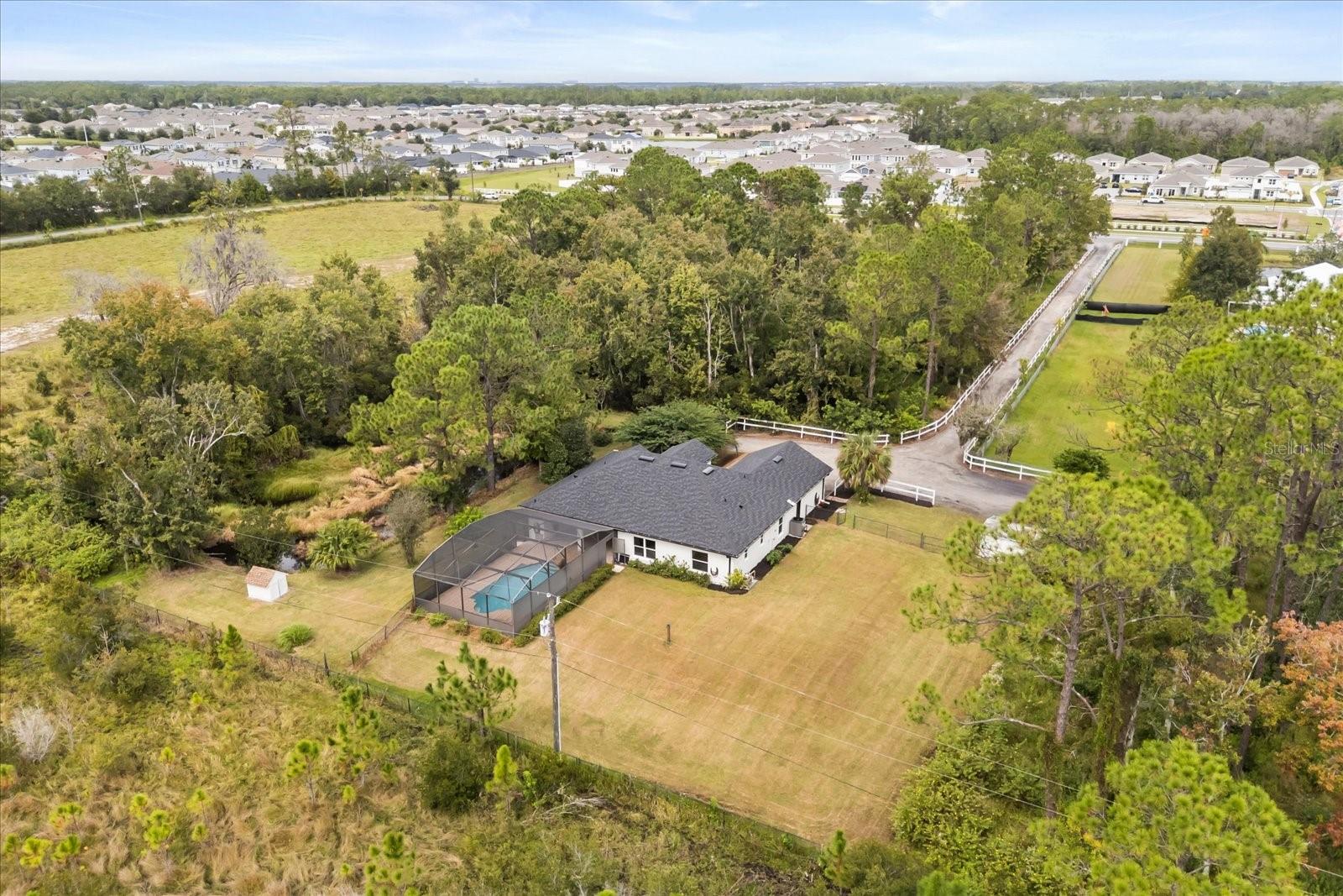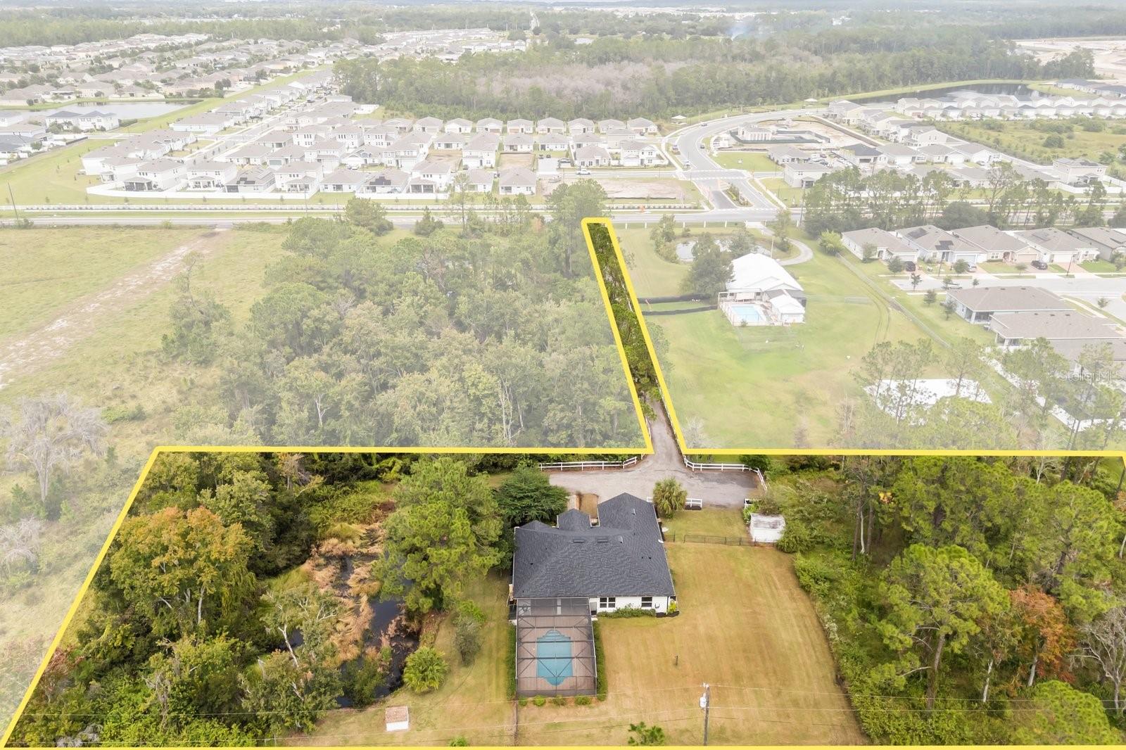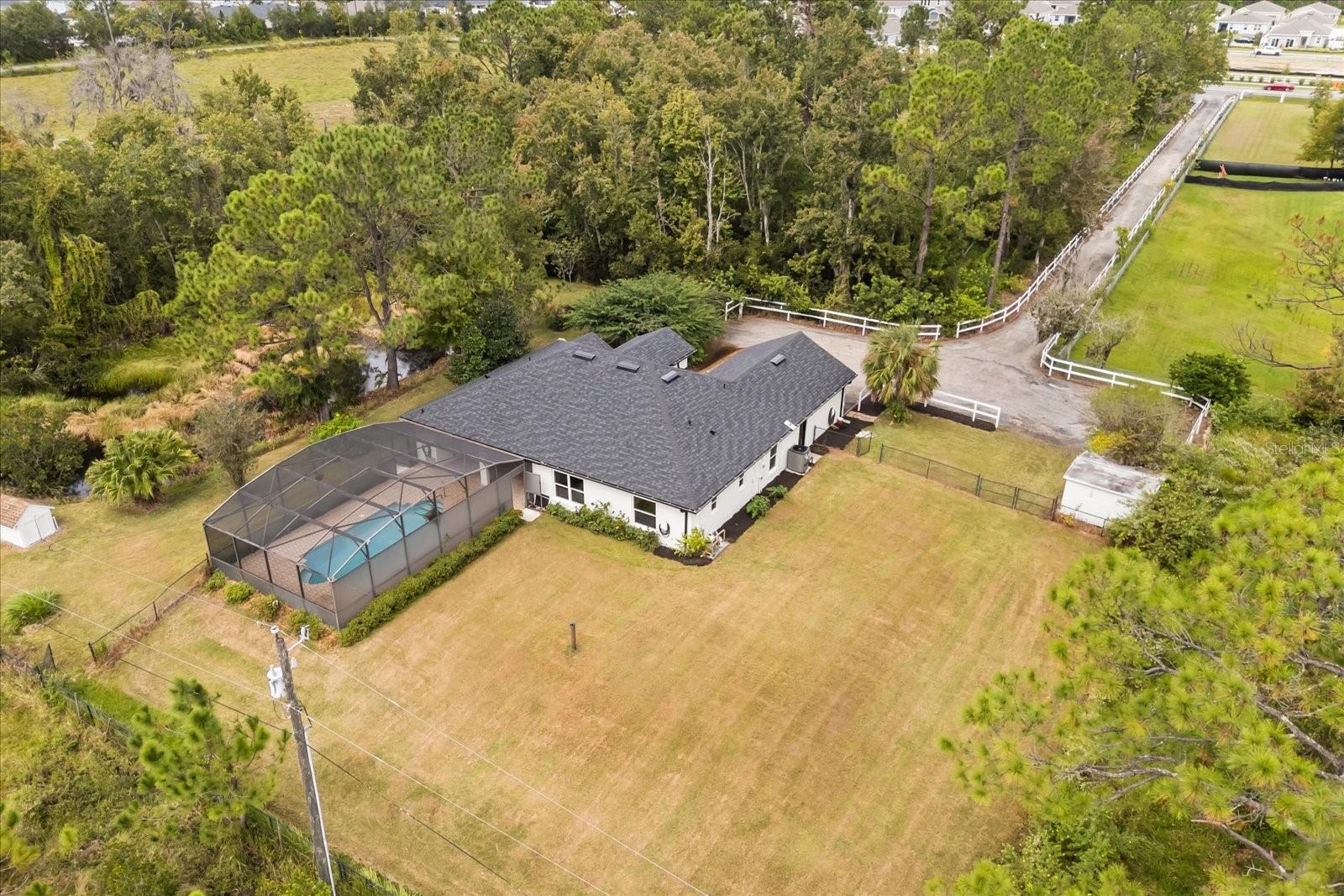Uma ou mais fotos foram virtualmente encenadas. Tour 3D disponível! DOIS ACRES. CASA COM PISCINA TOTALMENTE RENOVADA, SEM HOA. A 10 MINUTOS DO LAGO NONA. PERFEITO COMO CASA DOCE CASA OU COMO AIRBNB (onde você poderia construir mais unidades com muito espaço de estacionamento adicional)...Não procure mais! Bem-vindo ao 5564 Jack Brack Rd, onde tudo o que você procura em uma casa TURN-KEY acaba de ser feito para você, enquanto você tem isolamento e privacidade de sua própria floresta no leste (não áreas úmidas, pode ser preenchido e construído!) e lagoa natural no oeste, em pouco mais de 2 acres! Interior: A cozinha: bancadas em granito preto, armários brancos totalmente novos com portas de vidro iluminadas e gavetas iluminadas no interior, eletrodomésticos de aço inoxidável GE 2022-2023, pia de fazendeiro, backsplash de arenito personalizado. Resto da casa: azulejos personalizados atualizados e piso de madeira projetado por toda parte (sem carpete!), todos os novos acessórios e iluminação modernos, suíte principal e segundo banheiro atualizados, lavadora e secadora mais recentes incluídas e pia, recém-pintada 2025 da cabeça aos pés, incluindo piso de epóxi de garagem, janelas e portas deslizantes totalmente novas de super alta eficiência (é a casa mais silenciosa do mundo!), dutos totalmente novos, isolamento totalmente novo, construção de blocos no exterior, construção de aço nas paredes internas. Quando você entra, parece/cheira a uma casa construída em 2025…E então chegamos à Piscina: ressurgida em 2020, equipamentos atualizados e telas totalmente novas. Outro Exterior: Telhado 2025. 2022 A/C, 2022 Esquentador, rega em poço. 2025 Pintura Exterior. Grande quintal cercado, lindo lago em cascata que bombeia água doce do lago privado, oferecendo um som ambiente sedativo de água corrente natural... paisagismo totalmente novo e degraus de concreto personalizados. Bem e séptico com filtro UV e amaciante de água, para que nunca haja contas de água/esgoto, o cabo de fibra óptica para internet ultrarrápida foi executado na calçada privada de 500 pés de comprimento, o telescópio está pronto para mostrar outros mundos do céu escuro...e SEM HOA! Muito estacionamento para pelo menos 6 carros ou um barco/trailer, com espaço para manobra. Espaço para adicionar um ADU/Grande Galpão/Outro Edifício na propriedade também. A 10 minutos de toda a emoção que o Lago Nona tem a oferecer, mas fora dos roteiros mais conhecidos, onde você pode desaparecer em sua fuga particular como quiser.