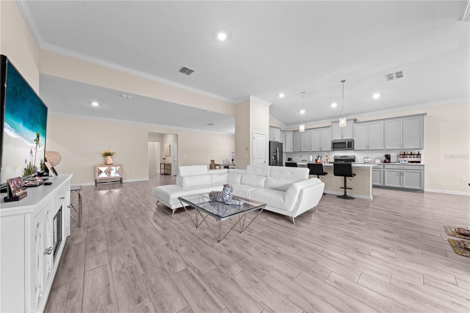 Linda casa de três quartos com três quartos com uma garagem de três carros em um lote de conservação de 0,21 acres. O quintal é grande o suficiente para colocar em um Piscina você deve desejar fazer isso. Esta casa tem uma divisão de 3 vias para adicionar privacidade com um quarto e banheiro juntos como um ótimo convidado Quartos, este quarto também tem um closet. A casa apresenta piso de tábua de cerâmica com exceção aos quartos que Todos têm carpete. A planta tem uma sala de jantar formal separada do conceito de sala de cozinha/viva e café da manhã. A cozinha Apresenta uma despensa de armário, bar de café da manhã, recanto do café da manhã, armários superiores de 42 "com moldagem por coroa, balcões de quartzo, respingo traseiro e uma ilha. A suíte master vem completa com os armários dele e dela, uma enorme caminhada no chuveiro, pias duplas, armário de água e balcões de quartzo. Todos os Fãs de teto dos quartos. Outros ótimos recursos nesta casa incluem um quintal cercado, sistema de segurança, todos os aparelhos incluídos, tela fechada 8 x 18 Lanai, portas de vidro deslizantes de bolso, vários armários de linho, um casaco e armário de vácuo, armários na lavanderia, um sistema de amaciador de água e um sistema de amaciador de água e uma garantia doméstica por meio de serviço de garantia mais bom a 2/7/29. O vendedor está oferecendo ao proprietário finaining com 20% de baixa taxa de juros com um balão de 3 anos. O bairro apresenta calçadas, um playground e piscina comunitária. Agende uma visita em breve!