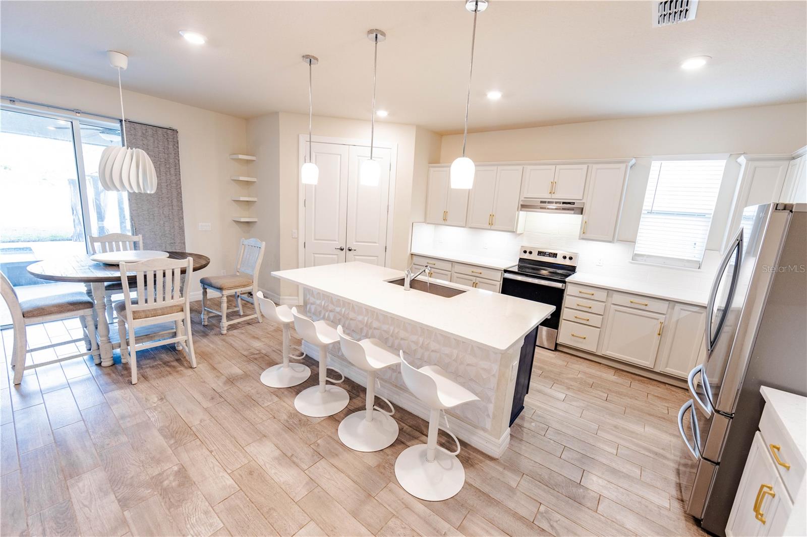 Casa pulte de 5 quartos com piscina, painéis solares e atualizações premium em Live Oak Lake desejável Bem-vindo a esta impressionante casa de dois andares na Comunidade Live Oak Lake, altamente procurada em St. Cloud. Situado em um lote tranquilo e sem saída, sem vizinhos traseiros, esta casa lindamente projetada oferece mais de 4.400 pés quadrados de espaço de estar, incluindo 5 quartos, 4 banheiros e uma garagem de 3 carros. Entre em uma espaçosa planta aberta, cheia de acabamentos modernos e atualizações de ponta por toda parte. A expansiva cozinha apresenta bancadas de pedra, uma ilha de grandes dimensões com uma placa de chute personalizada, utensílios de aço inoxidável e inclui uma lavadora e secadora para sua conveniência. O primeiro andar possui um escritório dedicado, um quarto de hóspedes e uma sala de teatro/mídia - perfeita para noites de cinema ou dias de jogo. Você também encontrará portas atualizadas de 8 pés, rodapés de 5 polegadas e um coletor de utilidade na lavanderia para obter uma funcionalidade adicional. No andar de cima, um loft de grandes dimensões oferece espaço versátil para uma sala de jogos, lounge ou área de estudo. A casa mostra toques elegantes, como piso de tábua de madeira, paredes de destaque, ventiladores de teto e uma zona de gota na entrada. A garagem é conectada para um veículo elétrico e a casa inclui recursos inteligentes, como um termostato programável e sistema de alarme. Saia do seu oásis de quintal particular, completo com um pátio coberto de exibição, um quintal cercado, uma linda piscina e uma área de convés e um mirante coberto personalizado-perfeito para entretenimento ou relaxamento sob o sol da Flórida. O Live Oak Lake oferece taxas baixas de HOA, sem CDD e acesso a comodidades de estilo resort, incluindo piscina comunitária, fitness center, playground e trilhas cênicas. Tudo isso em uma localização privilegiada perto de fazer compras, restaurantes e grandes estradas. Não perca esta oportunidade de possuir uma casa luxuosa e pronta para se mudar em uma das principais comunidades de St. Cloud. Agende sua turnê privada hoje!