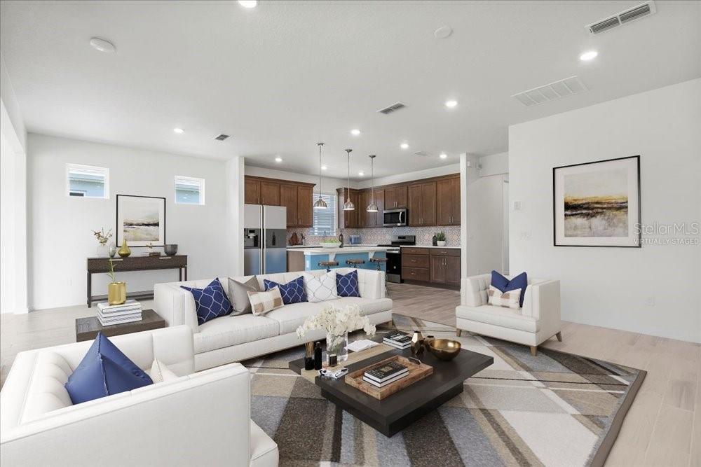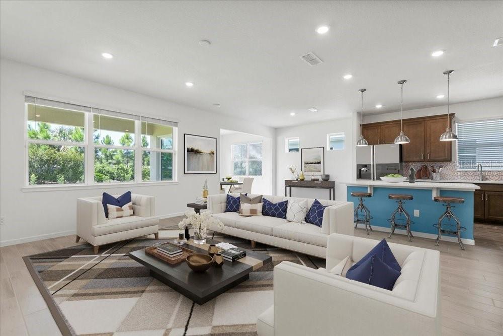 Uma ou mais fotos foram virtualmente encenadas. Bem-vindo ao Del Webb Sunbridge, uma comunidade adulta ativa com mais de 55 anos que oferece comodidades de última geração em estilo resort e um estilo de vida de baixa manutenção! Um Diretor de Atividades em Tempo Integral no local planeja eventos sociais ao longo do ano, bem como aulas e atividades diárias centradas na sede do clube de 27.000 pés quadrados. Clubes, aulas de arte, aulas de ginástica, Pickle Ball, tênis, natação, concertos ou simplesmente relaxar ao redor da piscina estilo resort ou no Tavern & Grill no local esperam por você! Você vai adorar que a manutenção do gramado esteja incluída nas taxas comunitárias do HOA. Esta casa oferece recursos de eficiência energética, como gás natural para o fogão, aquecedor de água sem tanque e secador, bem como janelas de vinil de painel duplo Low-E, isolamento R-30, sistemas de ventilação Off-Ridge e intradorso Flow-Thru para ventilação eficaz do sótão, termostato digital programável e barreira radiante. A planta baixa do Prosperity oferece 2.450 pés quadrados no total, incluindo 1.781 pés quadrados aquecidos com uma planta dividida para privacidade. O generoso quarto de hóspedes e o banheiro ficam na frente da casa, enquanto a deslumbrante suíte principal fica na parte de trás da casa. Uma linda sala com sólidas portas francesas fica no meio da casa. Uma espaçosa cozinha aberta e uma grande sala com marquise adjacente completam este plano perfeito! Você vai adorar a lavanderia dedicada com lavadora, secadora, armários, pia e, sim, uma lavanderia suspensa na parede do banheiro principal. Toda a casa tem um lindo esquema de cores costeiras com azulejos cinza claro / bege com aparência de madeira, armários marrons claros, bancadas de quartzo branco, uma pia de cozinha branca, eletrodomésticos e ferragens de aço inoxidável por toda parte, adorável backsplash de cozinha em mosaico la-fleur para um toque de cor e lindas portas interiores de artesão de 2,5 metros. Já mencionei a espaçosa varanda coberta e o quintal! Cada detalhe desta casa foi planejado para baixa manutenção e facilidade de vida. Esta é a vida na Flórida Central no seu melhor! Ligue hoje para uma exibição privada!