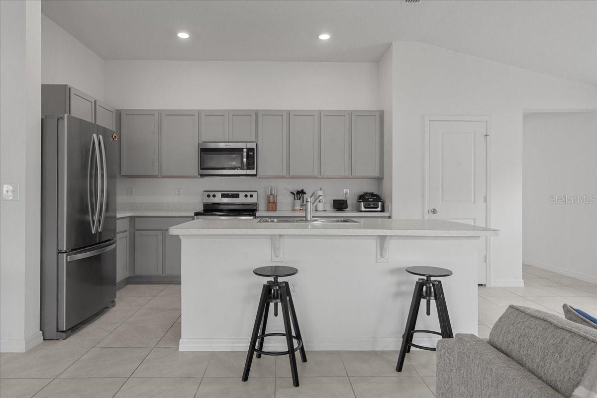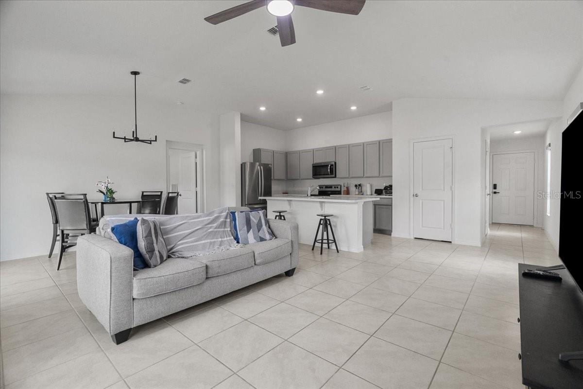 Bem -vindo a esta casa quase nova na altamente desejável Deer Run Estates! Construído há apenas um ano, esta casa de 3 quartos e 2 banheiros apresenta um layout atencioso de quartos divididos que oferece muita privacidade. A planta aberta está cheia de luz natural, tornando -a um ótimo espaço para a vida e o entretenimento cotidianos. A cozinha possui utensílios de aço inoxidável e belos armários cinzentos, com pisos de ladrilhos que se estendem pelas áreas principais. Os quartos têm tapete aconchegante, e a suíte master fornece um retiro pacífico com seu próprio banheiro e amplo espaço. A casa é eficiente em termos de energia com uma classificação de estrela energética da KB e inclui um quintal totalmente cercado-animais de estimação perfeitos ou reuniões ao ar livre. Localizado em Deer Run Estates, esta casa oferece um grande quintal cercado, taxas baixas de HOA e sem CDD. Desfrute de diversão ao ar livre com um playground próximo e trilha de caminhada a poucos passos da sua porta. Além disso, é convenientemente perto de Lake Nona, The Turnpike e US 192, facilitando seu trajeto diário. Esta casa é imperdível-schedule sua exibição hoje!