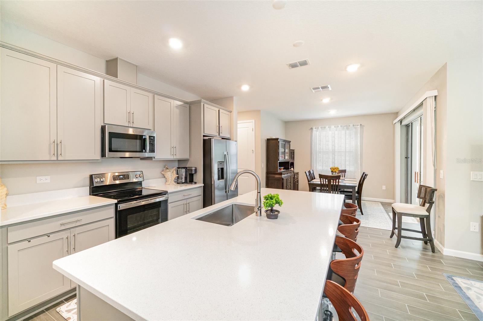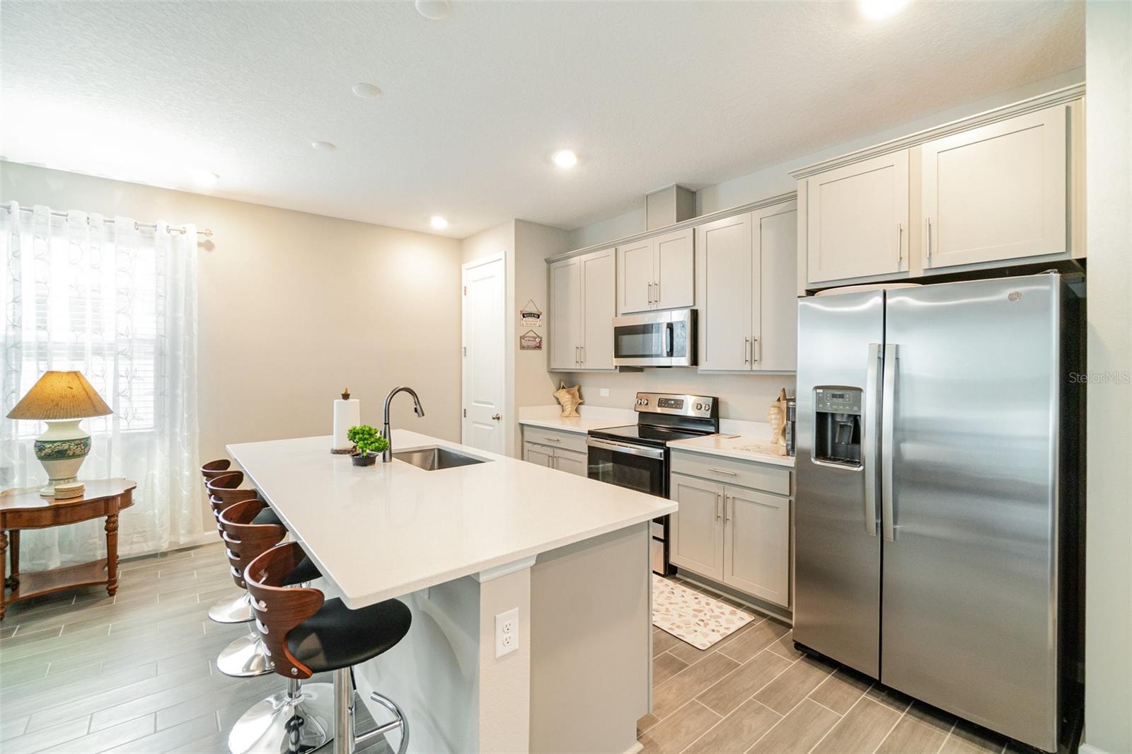 Esta impressionante, como nova casa, mostra mais de US $ 35 mil em atualizações de construtores premium e foi projetado para luxo e funcionalidade. Apoiando uma reserva tranquila, oferece privacidade definitiva, juntamente com uma espaçosa garagem de 3 carros, cerca de vinil e calhas de chuva. No interior, o piso de ladrilhos de porcelana atualizado se estende pelas principais áreas de estar, todos os banheiros e lavanderia, acrescentando elegância e durabilidade. A cozinha gourmet apresenta armários e gavetas de close macio premium, bancadas de quartzo e um elegante exaustor-perfeito para cozinhar e divertir. Ideal para uma vida multigeracional, o nível principal inclui um quarto privado com um banho completo nas proximidades. Desfrute de uma vida interior fora de fora com pátios de frente e traseira, além de um pátio de pavimentação estendido no quintal-perfeita para relaxar ou hospedar hóspedes. No andar de cima, um loft versátil oferece espaço adicional para um escritório em casa, sala de jogos ou área de mídia. Esta casa lindamente mantida com tetos altos combina conforto, estilo e vistas serenas naturais