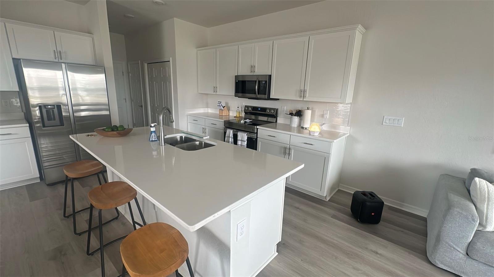 Grande oportunidade de possuir um moderno, como o New Townhome em uma área em rápido crescimento, com enorme potencial para apreciação futura. Esta unidade de canto Townhome tem apenas 1 vizinho adjacente para adicionar privacidade. Está convenientemente localizado ao lado do pool comunitário para facilitar o acesso. Desfrute de todos os toques modernos que esta casa recursos, como aparelhos atualizados com armários leves, backsplash e balcões de quartzo na cozinha, pisos laminados em todo o primeiro andar, atualizando armários.