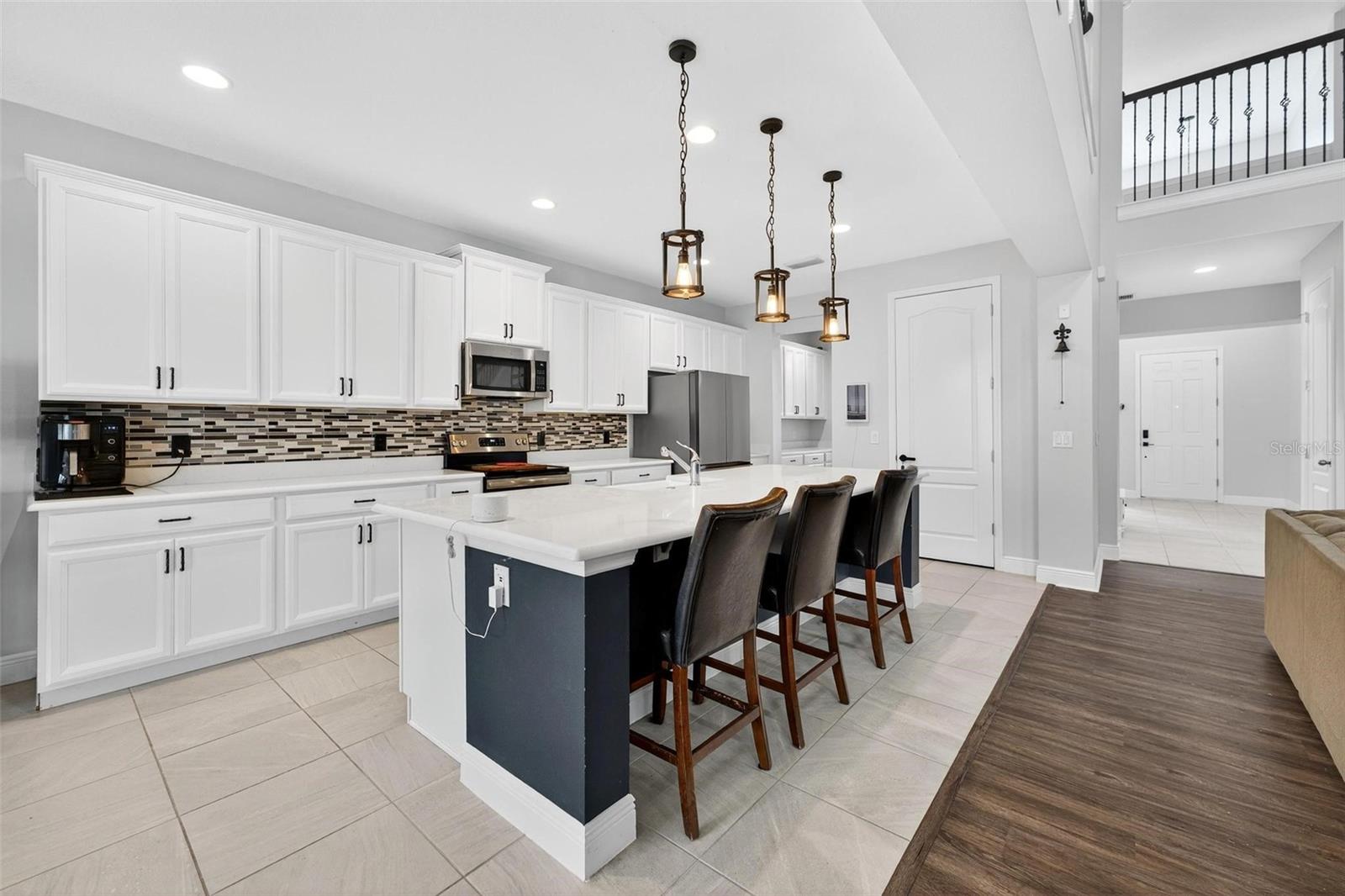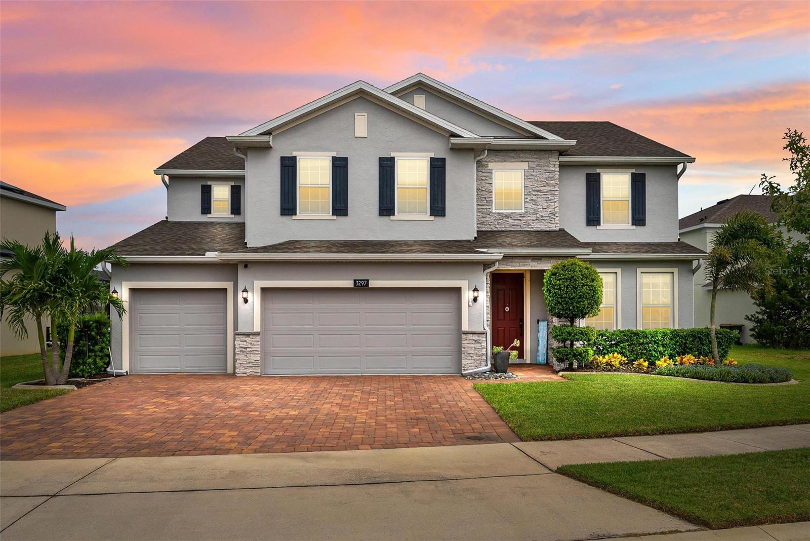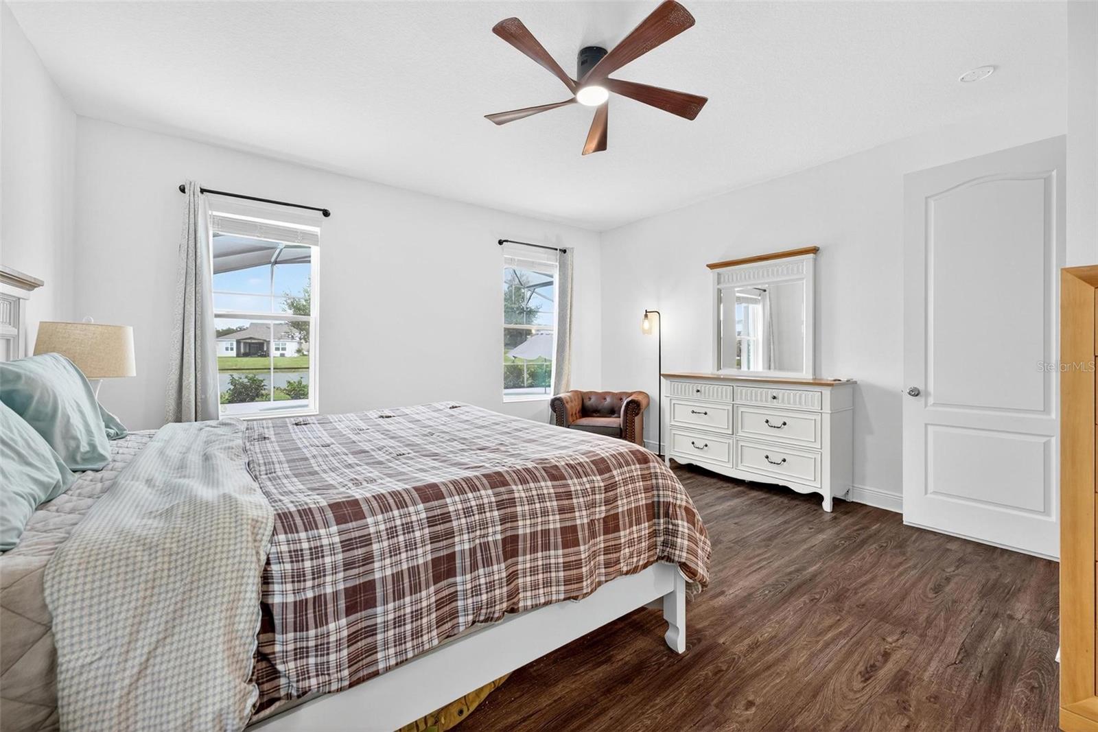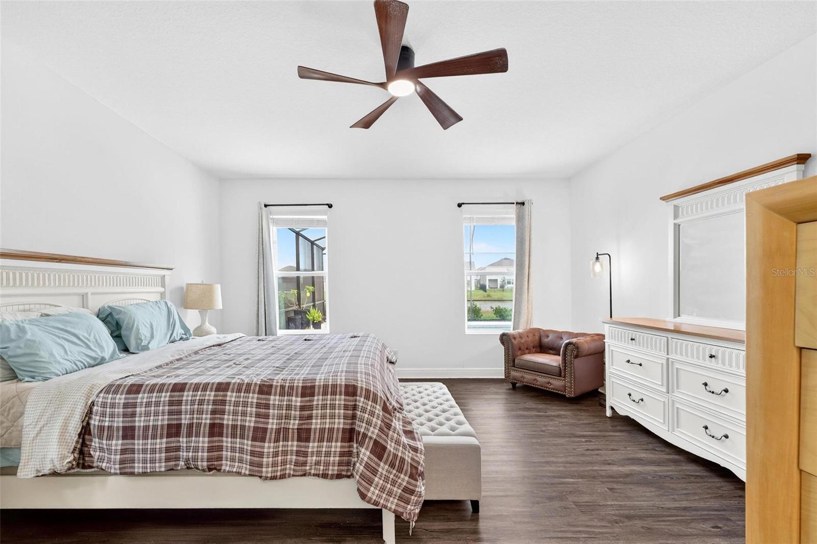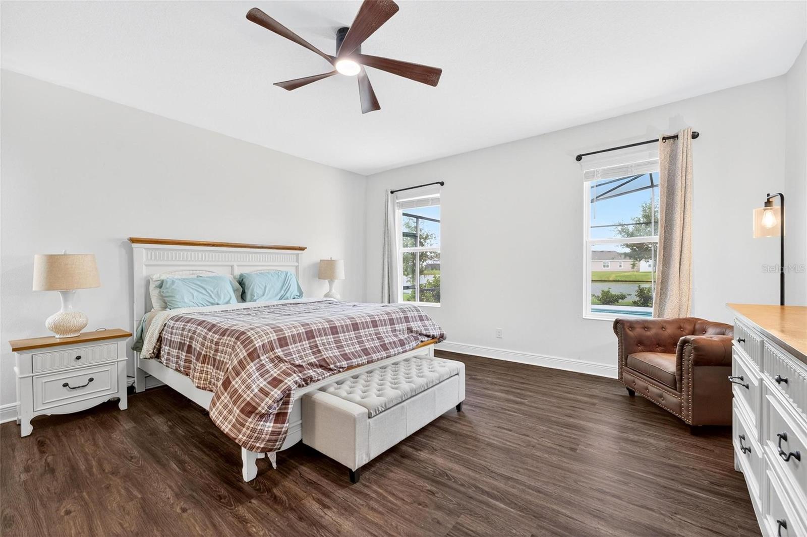 Este extraordinário Plan Exbury de 3.800 pés quadrados oferece um estilo de vida luxuoso à beira-mar em um belo casas em Hanover Lakes, com um design de conceito aberto com 5 quartos, 3,5 banheiros e uma garagem de 3 carros, destacada por um incrível suíte primário de 1º andar. A propriedade fornece acesso direto à água por meio de um canal navegável à cadeia de lagos de jacaré para obter ótimas oportunidades de pesca e passeios de barco em 5 lagos. The oversized kitchen is a chef's delight with beautiful 42" cabinets, quartz countertops, a tile backsplash, expansive island, walk-in pantry, Stainless appliances, and an adjacent Butler's Pantry leading to the Dining Room. A dramatic 2-story Family Room overlooks a spacious covered rear Lanai for entertaining, and the home features upgraded luxury vinyl flooring in main 1st-floor living areas and included window As persianas em todo o banheiro de luxuosas do quarto. Piscina, bloco de respingos e playground, e a localização conveniente fica perto da Disney, Universal, Sea World, Beaches Atlantic Beaches e Vias Expressas para facilitar o acesso ao centro de Orlando.