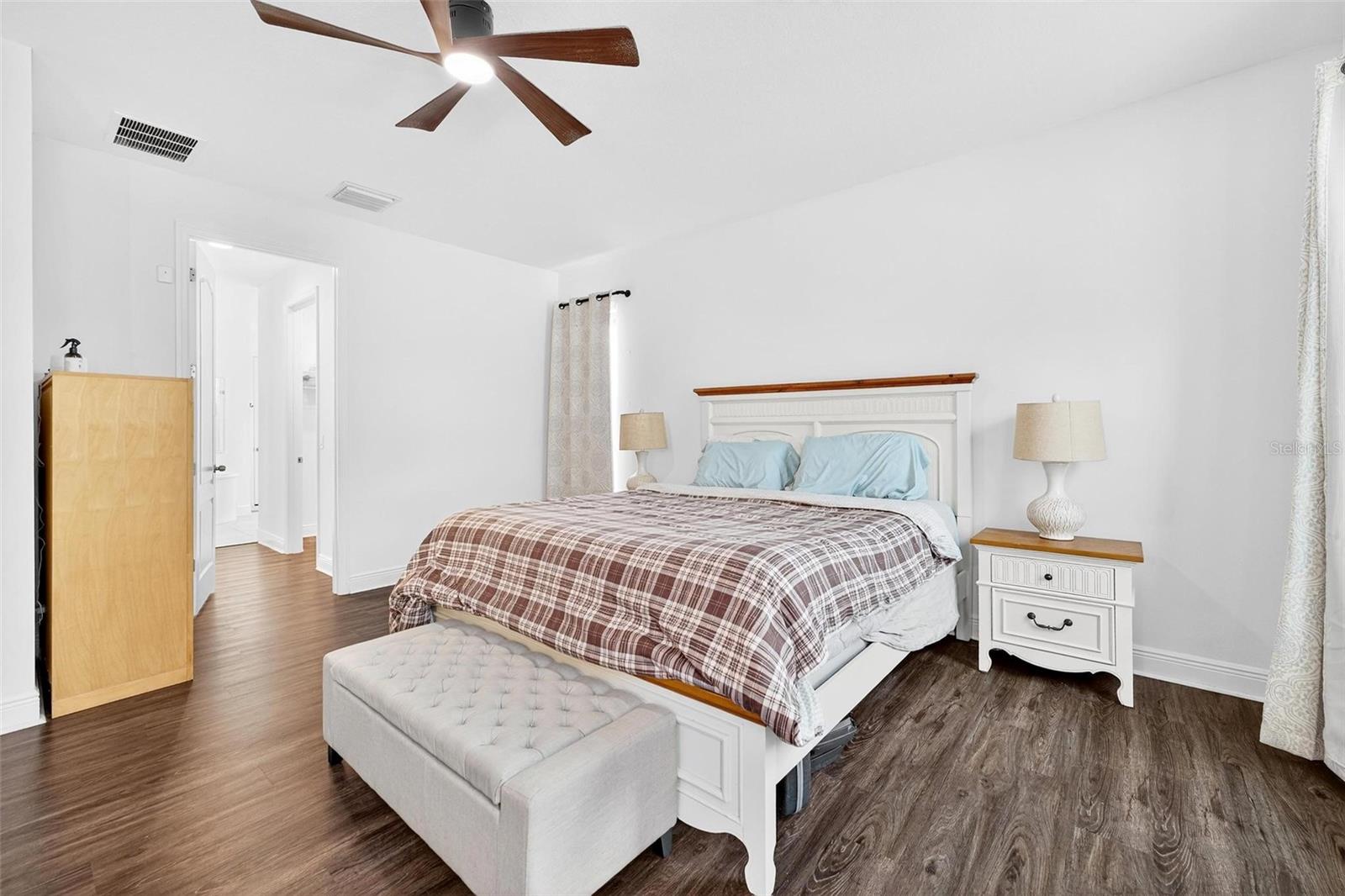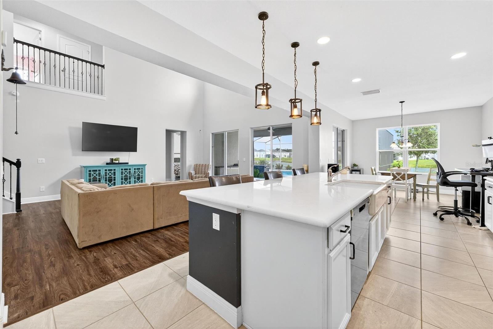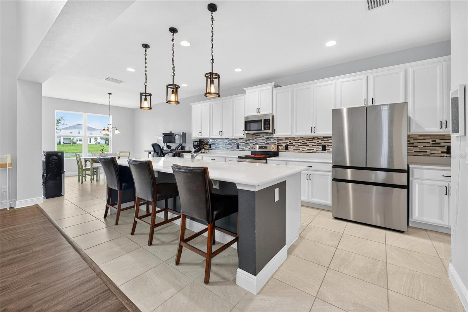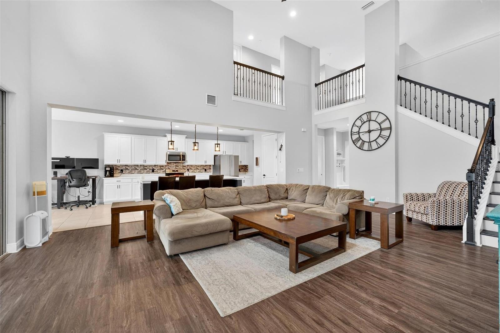 Este extraordinário Plan Exbury de 3.800 pés quadrados oferece um estilo de vida luxuoso à beira-mar em um belo casas em Hanover Lakes, com um design de conceito aberto com 5 quartos, 3,5 banheiros e uma garagem de 3 carros, destacada por um incrível suíte primário de 1º andar. A propriedade fornece acesso direto à água por meio de um canal navegável à cadeia de lagos de jacaré para obter ótimas oportunidades de pesca e passeios de barco em 5 lagos. The oversized kitchen is a chef's delight with beautiful 42" cabinets, quartz countertops, a tile backsplash, expansive island, walk-in pantry, Stainless appliances, and an adjacent Butler's Pantry leading to the Dining Room. A dramatic 2-story Family Room overlooks a spacious covered rear Lanai for entertaining, and the home features upgraded luxury vinyl flooring in main 1st-floor living areas and included window As persianas em todo o banheiro de luxuosas do quarto. Piscina, bloco de respingos e playground, e a localização conveniente fica perto da Disney, Universal, Sea World, Beaches Atlantic Beaches e Vias Expressas para facilitar o acesso ao centro de Orlando.