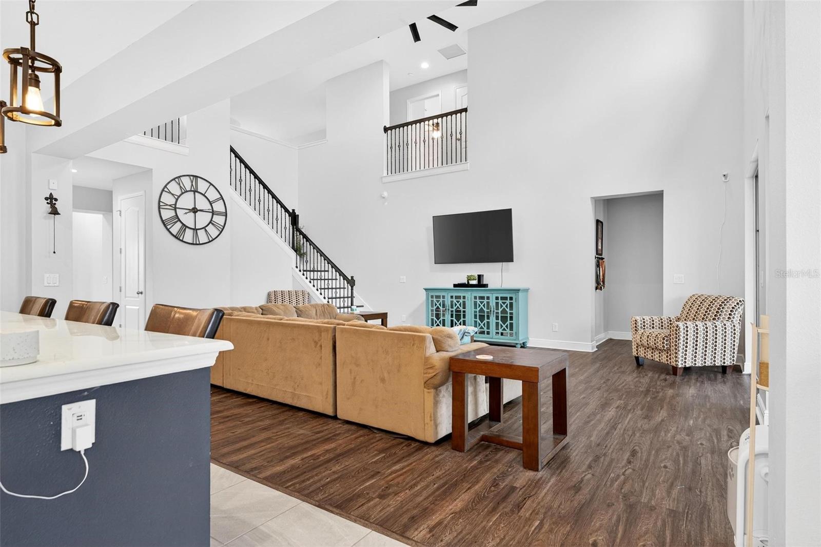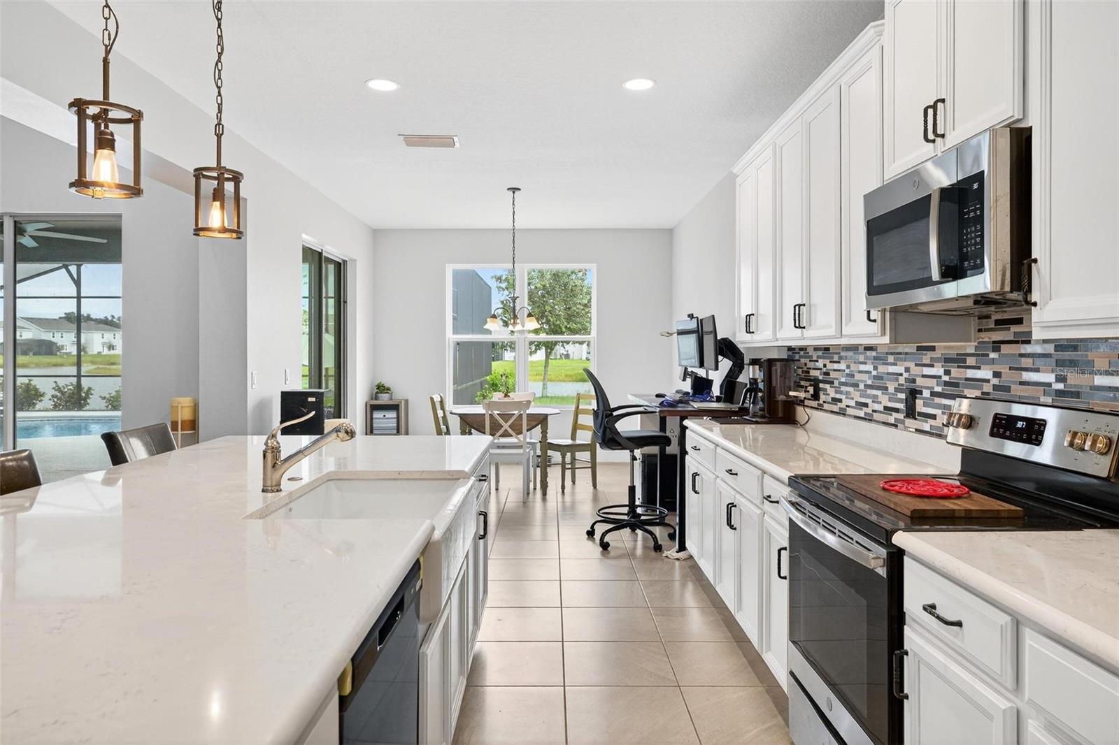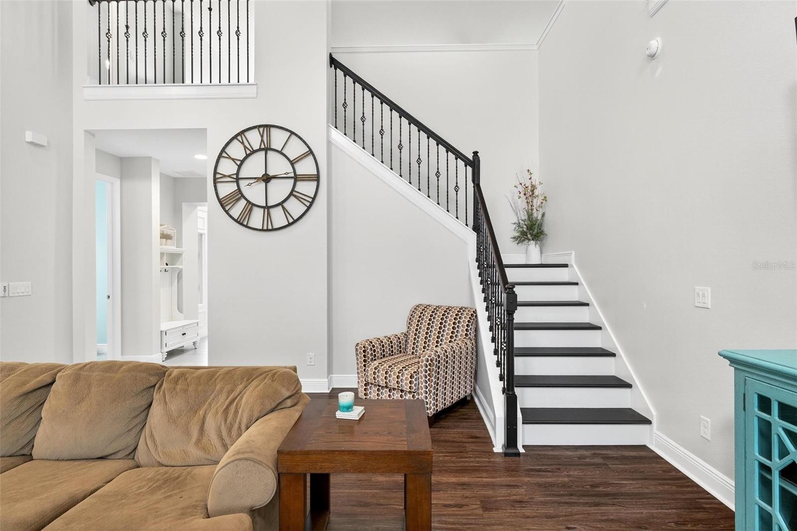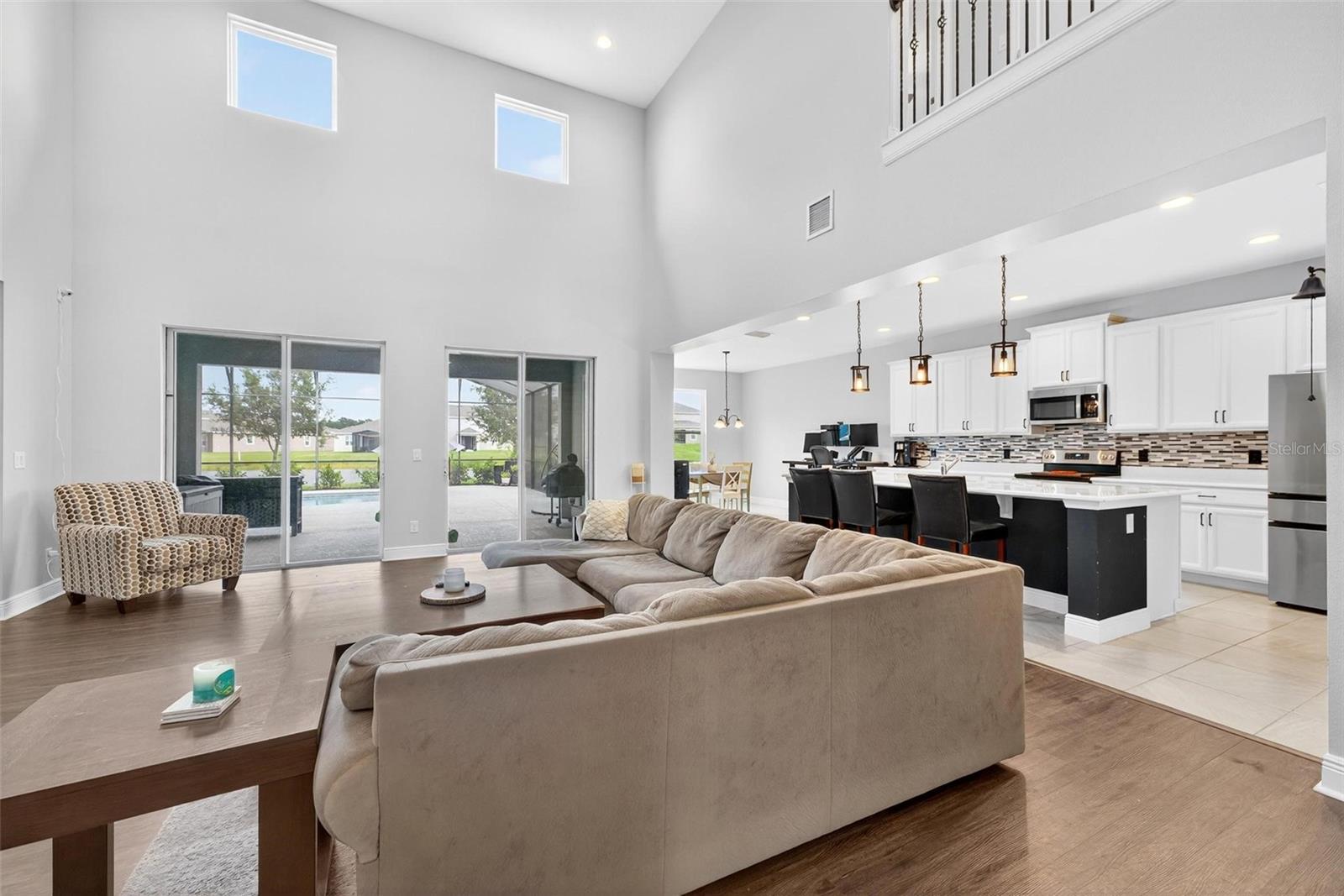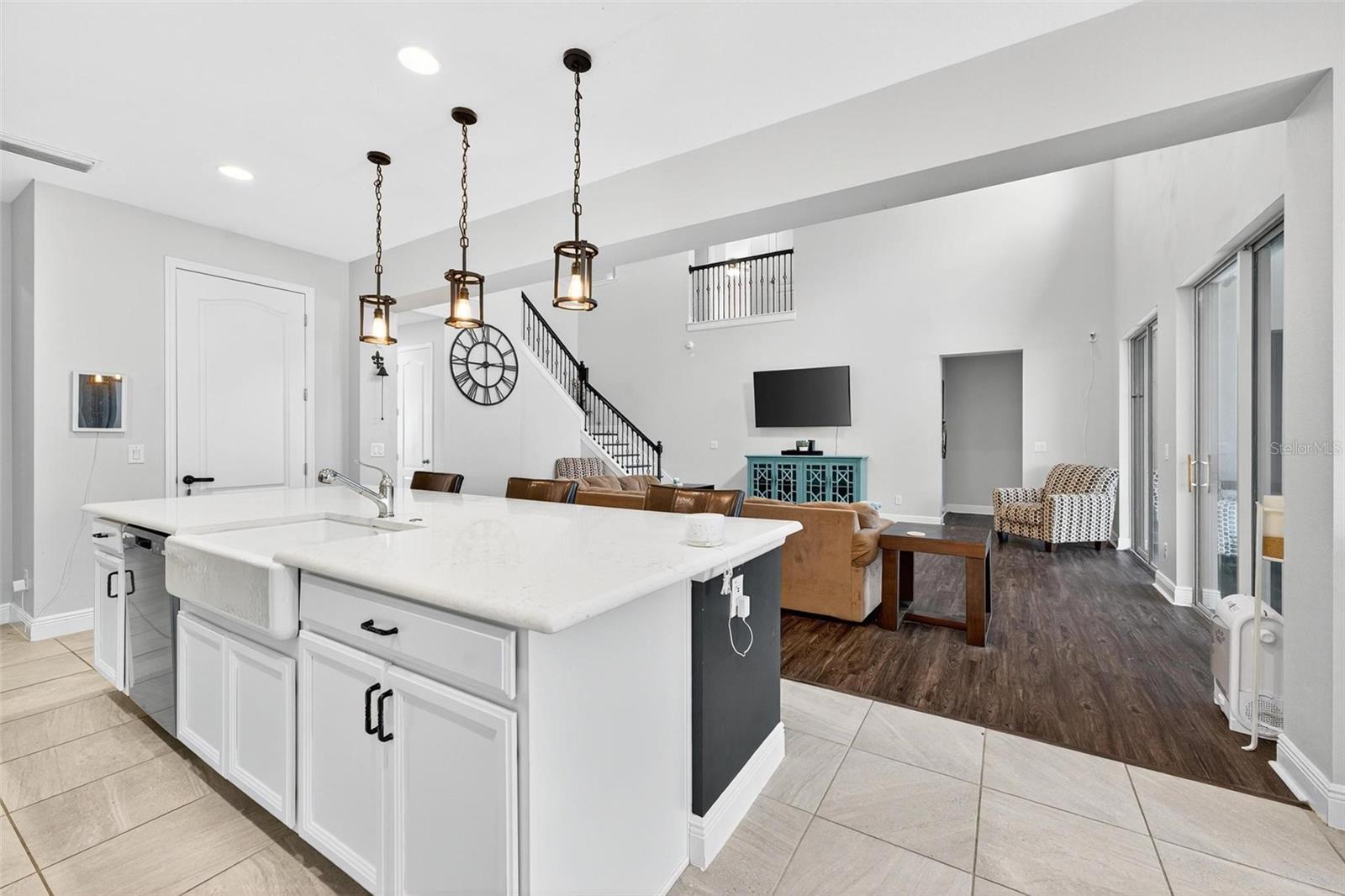 Este extraordinário Plan Exbury de 3.800 pés quadrados oferece um estilo de vida luxuoso à beira-mar em um belo casas em Hanover Lakes, com um design de conceito aberto com 5 quartos, 3,5 banheiros e uma garagem de 3 carros, destacada por um incrível suíte primário de 1º andar. A propriedade fornece acesso direto à água por meio de um canal navegável à cadeia de lagos de jacaré para obter ótimas oportunidades de pesca e passeios de barco em 5 lagos. The oversized kitchen is a chef's delight with beautiful 42" cabinets, quartz countertops, a tile backsplash, expansive island, walk-in pantry, Stainless appliances, and an adjacent Butler's Pantry leading to the Dining Room. A dramatic 2-story Family Room overlooks a spacious covered rear Lanai for entertaining, and the home features upgraded luxury vinyl flooring in main 1st-floor living areas and included window As persianas em todo o banheiro de luxuosas do quarto. Piscina, bloco de respingos e playground, e a localização conveniente fica perto da Disney, Universal, Sea World, Beaches Atlantic Beaches e Vias Expressas para facilitar o acesso ao centro de Orlando.