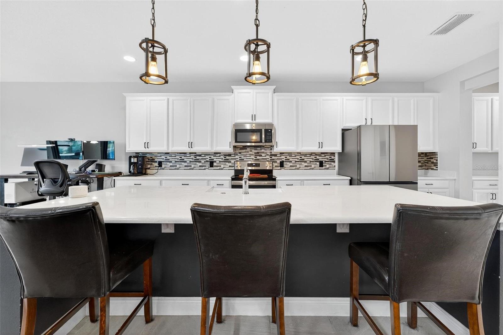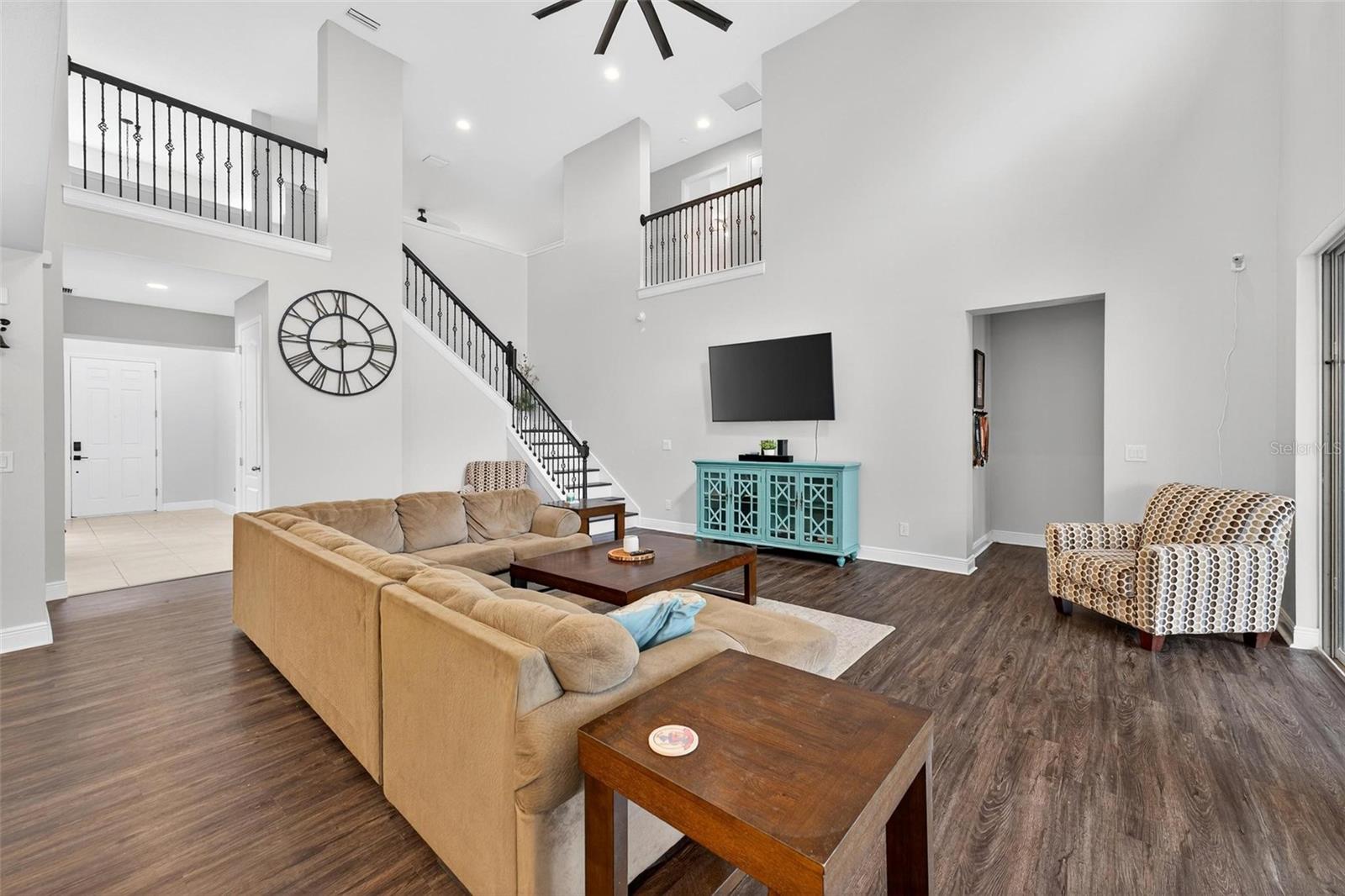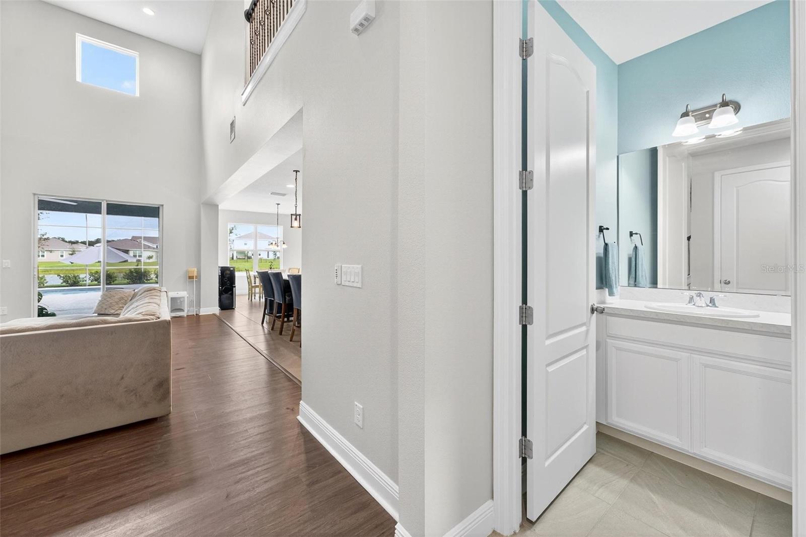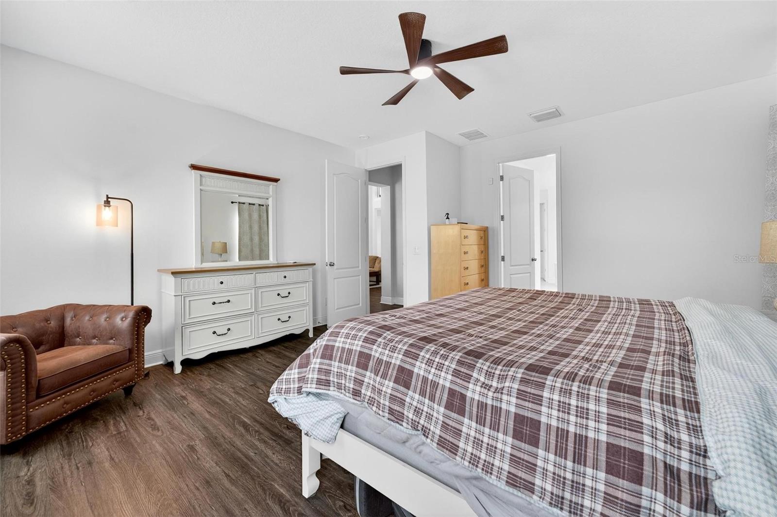 Este extraordinário Plan Exbury de 3.800 pés quadrados oferece um estilo de vida luxuoso à beira-mar em um belo casas em Hanover Lakes, com um design de conceito aberto com 5 quartos, 3,5 banheiros e uma garagem de 3 carros, destacada por um incrível suíte primário de 1º andar. A propriedade fornece acesso direto à água por meio de um canal navegável à cadeia de lagos de jacaré para obter ótimas oportunidades de pesca e passeios de barco em 5 lagos. The oversized kitchen is a chef's delight with beautiful 42" cabinets, quartz countertops, a tile backsplash, expansive island, walk-in pantry, Stainless appliances, and an adjacent Butler's Pantry leading to the Dining Room. A dramatic 2-story Family Room overlooks a spacious covered rear Lanai for entertaining, and the home features upgraded luxury vinyl flooring in main 1st-floor living areas and included window As persianas em todo o banheiro de luxuosas do quarto. Piscina, bloco de respingos e playground, e a localização conveniente fica perto da Disney, Universal, Sea World, Beaches Atlantic Beaches e Vias Expressas para facilitar o acesso ao centro de Orlando.