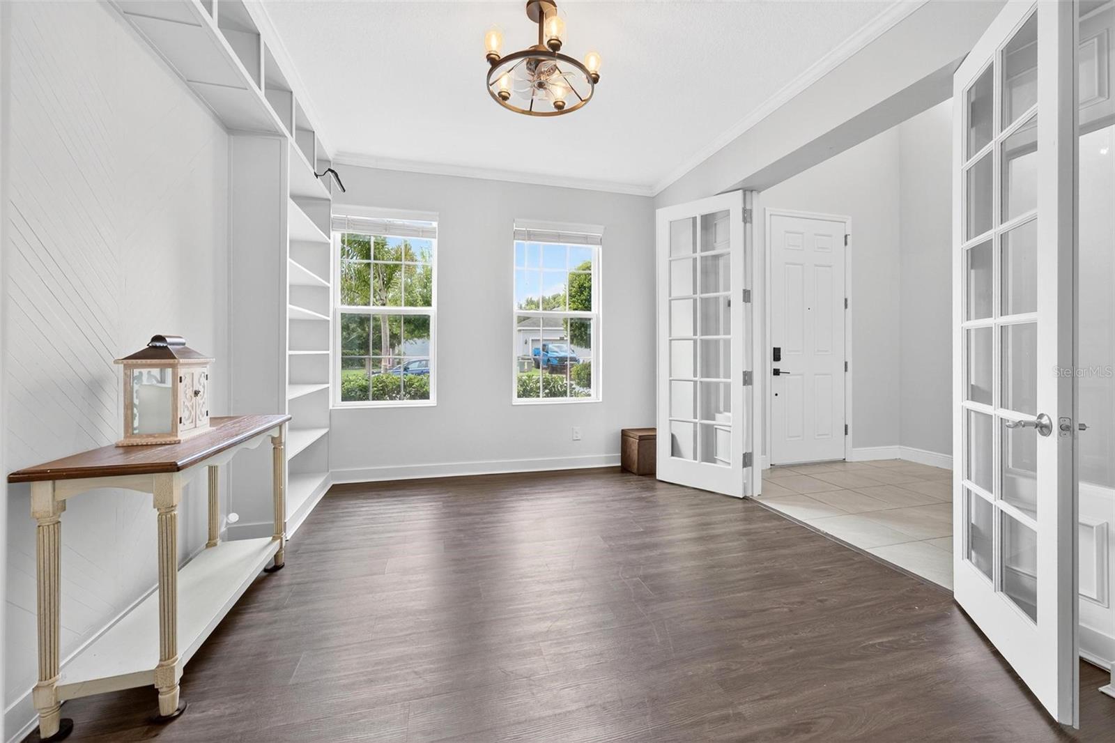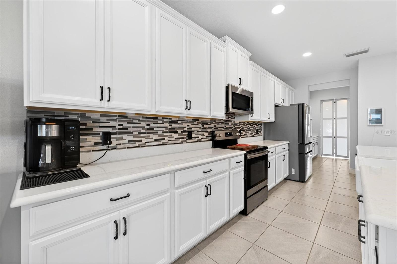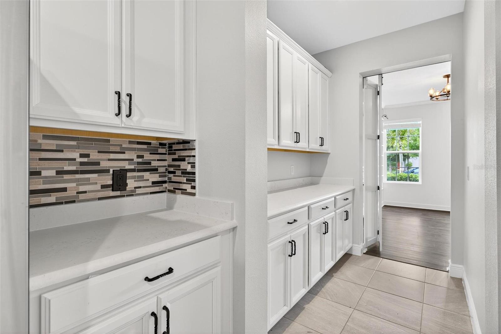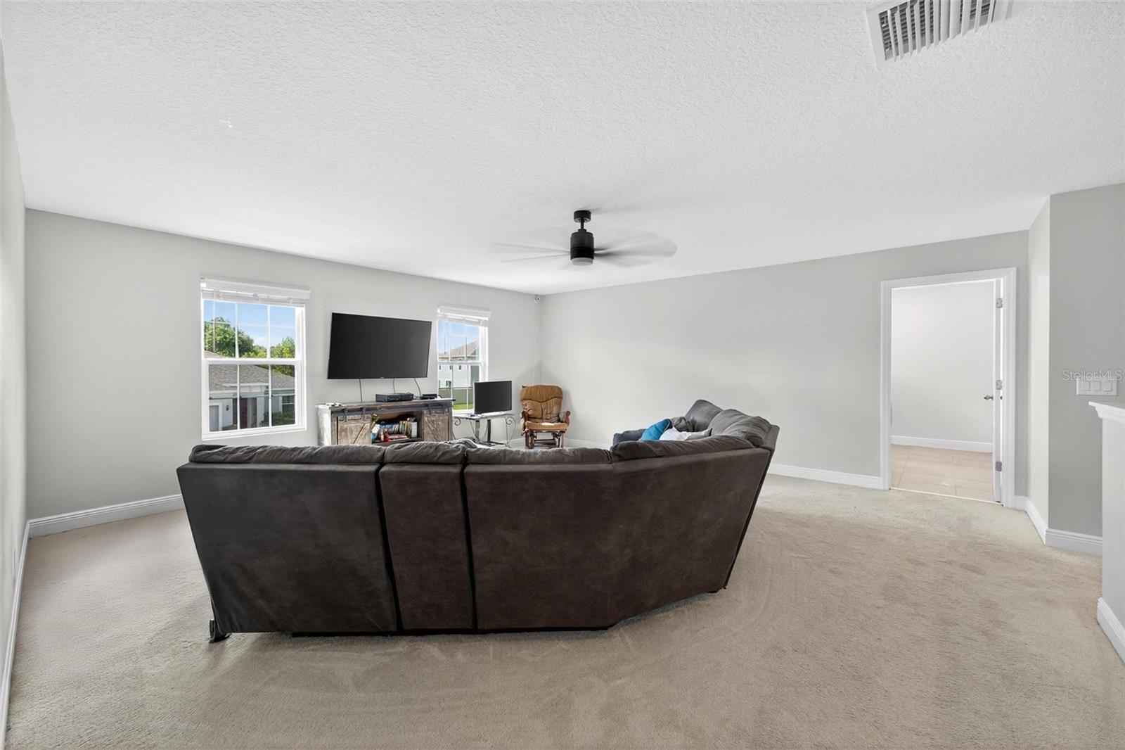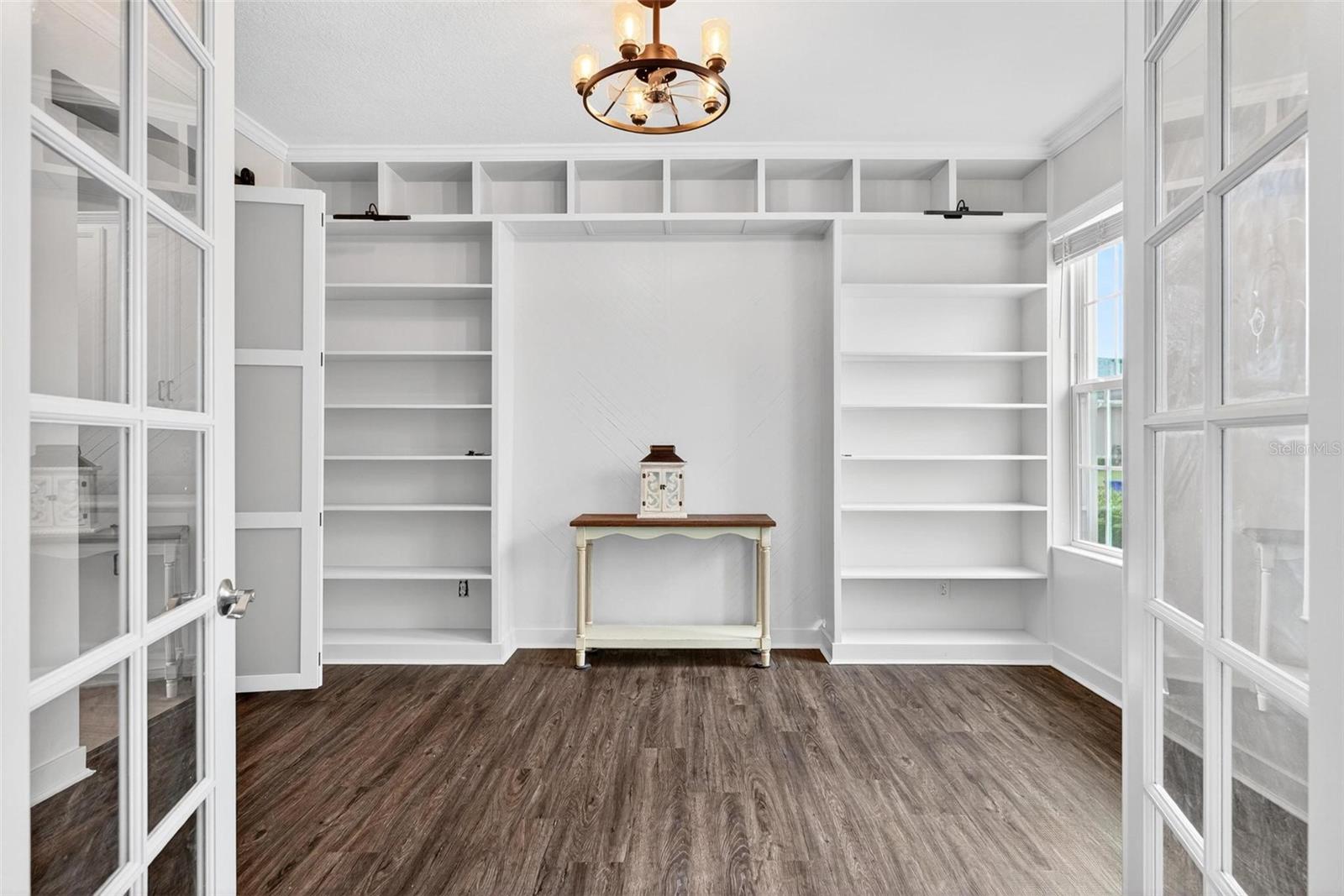 Este extraordinário Plan Exbury de 3.800 pés quadrados oferece um estilo de vida luxuoso à beira-mar em um belo casas em Hanover Lakes, com um design de conceito aberto com 5 quartos, 3,5 banheiros e uma garagem de 3 carros, destacada por um incrível suíte primário de 1º andar. A propriedade fornece acesso direto à água por meio de um canal navegável à cadeia de lagos de jacaré para obter ótimas oportunidades de pesca e passeios de barco em 5 lagos. The oversized kitchen is a chef's delight with beautiful 42" cabinets, quartz countertops, a tile backsplash, expansive island, walk-in pantry, Stainless appliances, and an adjacent Butler's Pantry leading to the Dining Room. A dramatic 2-story Family Room overlooks a spacious covered rear Lanai for entertaining, and the home features upgraded luxury vinyl flooring in main 1st-floor living areas and included window As persianas em todo o banheiro de luxuosas do quarto. Piscina, bloco de respingos e playground, e a localização conveniente fica perto da Disney, Universal, Sea World, Beaches Atlantic Beaches e Vias Expressas para facilitar o acesso ao centro de Orlando.