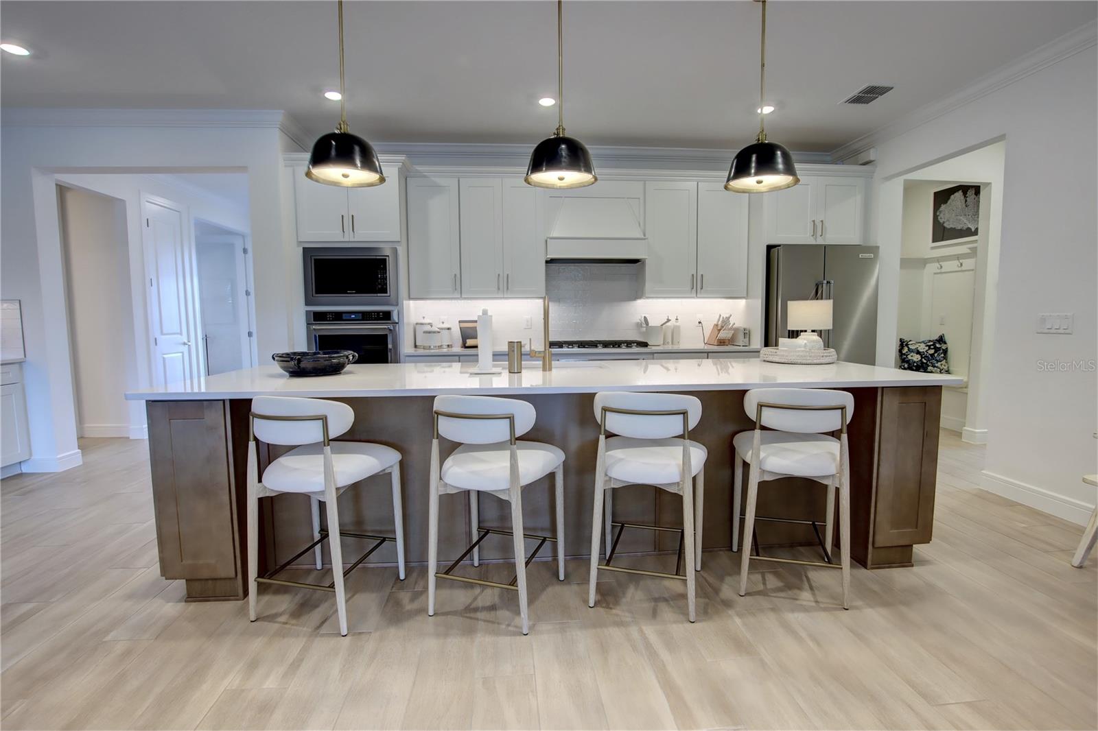 Entre nesta planta Stardom de Del Webb Pulte! Esta bela casa térrea com 3 quartos e 2,5 banheiros e piscina parece uma casa modelo. Esta casa premium foi descrita como “o melhor lote” da comunidade. Possui privacidade com a parte traseira da casa voltada para o sul, oferecendo sol o dia todo, lindas vistas para o mar e uma ampla área verde. A área de estar de conceito aberto flui sem esforço, combinando a cozinha, a sala de jantar e a sala de reunião em um único espaço. A cozinha gourmet é o ponto focal, com eletrodomésticos KitchenAid - incluindo fogão a gás natural, forno duplo com convecção e air-fry e geladeira grande de bancada. Um espaço separado, mas igualmente funcional, oferece mais armazenamento em armários, uma prateleira para vinhos e uma geladeira embutida para bebidas. Armários com fechamento suave, capô de madeira, lindo backsplash de azulejos, bancadas de quartzo e iluminação sob o armário contribuem para a combinação perfeita de estilo e conveniência. A casa possui tetos altos, portas internas de 8', sancas e um luxuoso teto duplo na área de estar principal que eleva todo o espaço, adicionando uma sensação de grandeza enquanto mantém uma atmosfera íntima e acolhedora, perfeita para entretenimento. Além disso, 2 impressionantes lustres de LED CRYSTAL HALO CLEAR ROUND de hardware de restauração, avaliados em mais de US$ 10.000. foram instalados profissionalmente para aprimorar o design de interiores. As portas de vidro deslizantes de parede inteira, que conectam a área de estar à varanda coberta, inundam a casa com luz natural. Saia para o seu retiro privado ao ar livre, porque este quintal excepcional possui uma varanda coberta, protegida por uma área de entretenimento ao ar livre, com água salgada e piscina aquecida. A suíte privada do proprietário oferece um retiro tranquilo com banheiro privativo inspirado em spa, closet grande com armários embutidos, armário de roupa de cama, chuveiro com entrada zero com bancada embutida e três chuveiros, e um banheiro fechado. Este Stardom excepcionalmente atualizado também possui dois quartos adicionais localizados no lado oposto do quarto principal da casa, permitindo privacidade para todos! Uma espaçosa sala flexível na área frontal com portas francesas de vidro, oferece privacidade e é perfeita para uma sala de estar ou escritório doméstico. A lavandaria possui armários embutidos; uma pia com acabamento em quartzo e possui uma lavadora e secadora Whirlpool. A extensão atualizada de 4' da garagem para 2 carros é completa com piso com acabamento em epóxi e oferece muito espaço para um veículo estendido, um carrinho de golfe, armazenamento e hobbies. Para carros EV, já existe um carregador elétrico instalado. Esta casa foi concluída na primavera de 2025. Ela apresenta mais de US$ 326.000 em atualizações, que incluem um pool de US$ 130.000 e um prêmio de lote de US$ 133.000. Esta casa ainda está coberta pela garantia de um ano de casa nova Del Webb Pulte, então não perca a chance de possuir uma das melhores casas do bairro, disponível para ocupação imediata! A manutenção do exterior e do quintal da sua casa estão incluídas. Del Webb Sunbridge é um condomínio fechado de gás natural para adultos ativos com mais de 55 anos que oferece uma abundância de comodidades em estilo resort com eventos sociais e atividades centradas no clube de 27.000 pés quadrados e planejadas por um Diretor de Estilo de Vida em tempo integral. Com piscina de entrada zero com raias, piscina de resistência, redes à beira da piscina e spa aquecido, quadras esportivas, estúdio de movimento, trilhas para caminhada e muito mais. Para obter mais informações da comunidade, visite o site Del Webb Sunbridge.
