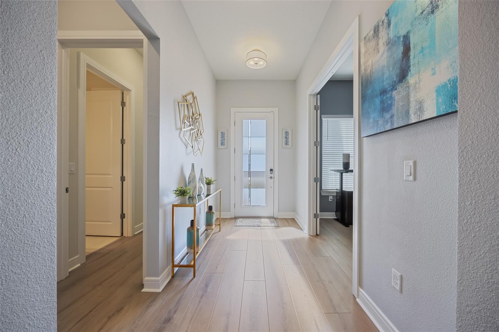 Bem-vindo à incrível comunidade de Del Webb com 55 anos ou mais! Estilo resort vivendo todos os dias! Esta casa de 2025 oferece um hall de entrada deslumbrante que dá as boas-vindas a uma grande sala aberta com tetos de bandeja, piso de vinil luxuoso e amplas portas de vidro deslizantes que abrangem toda a extensão da sala. A cozinha moderna oferece bancadas de pedra, fogão a gás e amplos armários com fechamento suave. Quartos espaçosos, armários embutidos, bancadas de pedra! Uma varanda fechada que faz backup da natureza! Não deixe este escapar! Se você está fazendo a escolha de tornar sua vida livre de estresse e se mudando para um local ou se está se mudando para o paraíso!