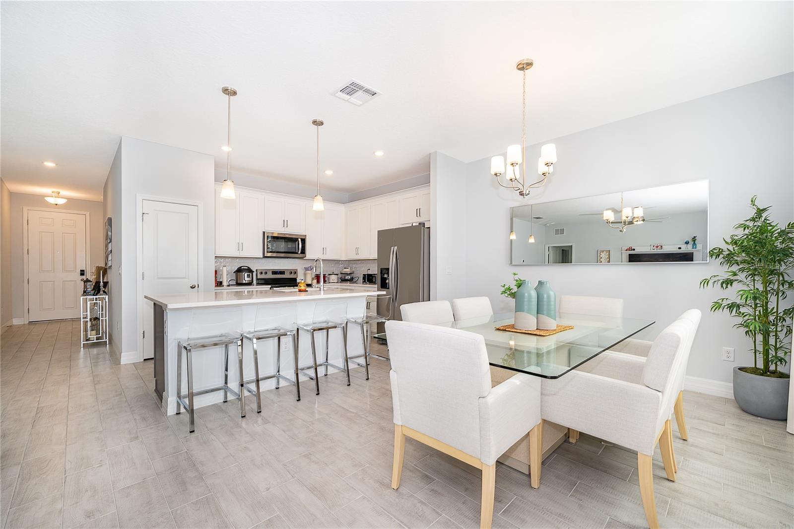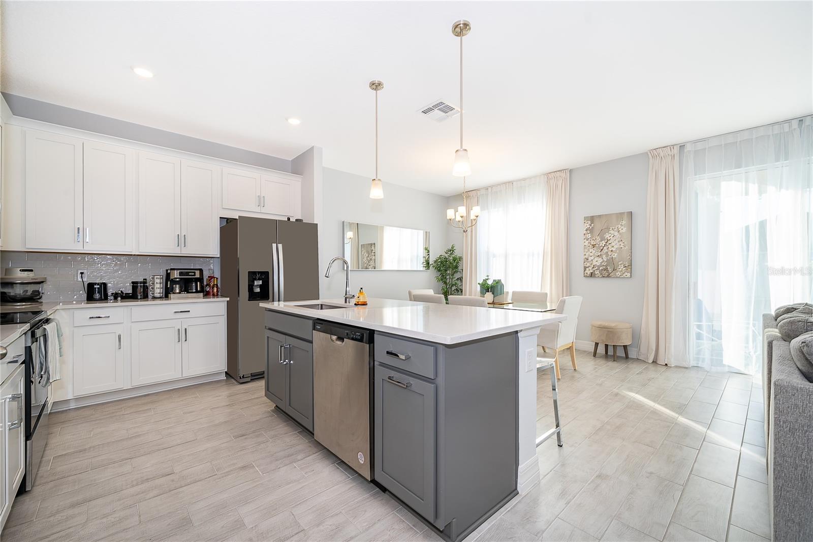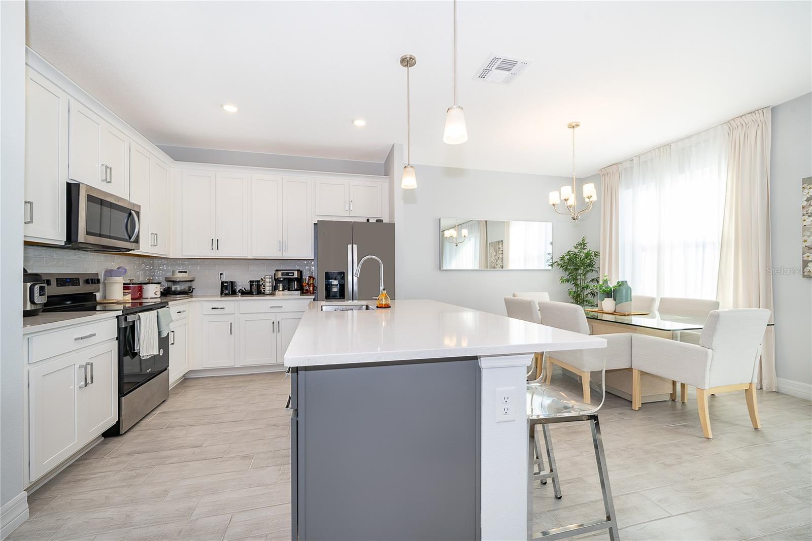 Impressionante casa de 3 quartos e 2 banheiros pronta para morar em uma localização privilegiada perto do Lago Nona, oferecendo um layout aberto, arejado e altamente funcional. Projetada para uma vida moderna, esta residência lindamente atualizada apresenta tetos altos e amplas janelas de três painéis que inundam a casa com luz natural. O interior é aprimorado por rodapés modernos e armários personalizados com ferragens elegantes e contemporâneas, complementados por bancadas de granito claro para uma aparência limpa e sofisticada. A espaçosa suíte master oferece um retiro privado, enquanto uma lavanderia dedicada e garagem para 2 carros acrescentam funcionalidade diária. Saia para um grande quintal com um pátio protegido, ideal para entretenimento, reuniões familiares ou noites relaxantes. Os banheiros possuem elegantes chuveiros envidraçados, acrescentando um toque refinado e moderno. Localizados em uma comunidade tranquila, amigável e bem planejada, os moradores desfrutam de comodidades em estilo resort, incluindo piscina, playground, áreas de reunião comuns e espaços que aceitam animais de estimação. A poucos minutos do Lago Nona, perto de Publix, e cercada por rápido desenvolvimento e futura expansão de rodovias, esta casa oferece conforto, conveniência e valor de longo prazo excepcionais em um dos bairros mais desejáveis e em crescimento da região.