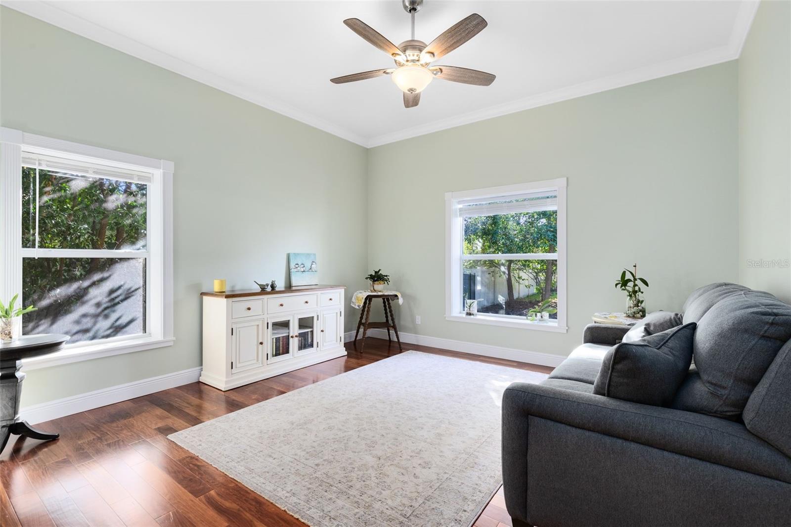 Bem-vindo a esta casa personalizada de 2009, lindamente mantida, em St. Cloud - localizada dentro dos limites da cidade e sem HOA! Desfrute de vistas tranquilas do lago a partir da varanda frontal coberta e, em seguida, entre em uma entrada espaçosa repleta de luz natural e atualizações atemporais, incluindo tetos de 10 pés por toda parte, sancas elegantes, acabamentos detalhados, cantos arredondados e portas de madeira maciça em toda a casa. A planta dividida cuidadosamente apresenta um home office dedicado, dois quartos secundários de tamanho generoso com ventiladores de teto e um banheiro completo em um lado da casa. A área de estar principal se abre para uma espaçosa combinação de sala de família e cozinha - perfeita para entretenimento - com uma janela panorâmica brilhante com belas vistas e luz natural incrível. A cozinha oferece armários KraftMaid, gavetas com fechamento suave, iluminação sob os armários, bancadas Silestone, grande despensa com estantes personalizadas e muito espaço de armazenamento funcional. A ampla suíte principal oferece privacidade e conforto com um grande armário, banheiro espaçoso e acesso conveniente à lavanderia interna. Saia para uma grande varanda nos fundos com ventiladores de teto, com vista para um quintal cercado com irrigação, pavimentação de tijolos, uma área de jardim e um galpão em uma laje - ideal para vida ao ar livre e armazenamento. As características adicionais incluem garagem para 2 carros com área de oficina, além de armazenamento no sótão com piso, prateleiras e janela para fácil visibilidade. Agende sua exibição privada hoje mesmo - esta casa oferece artesanato de qualidade, espaço e uma excelente localização em St. Cloud, sem restrições de HOA!