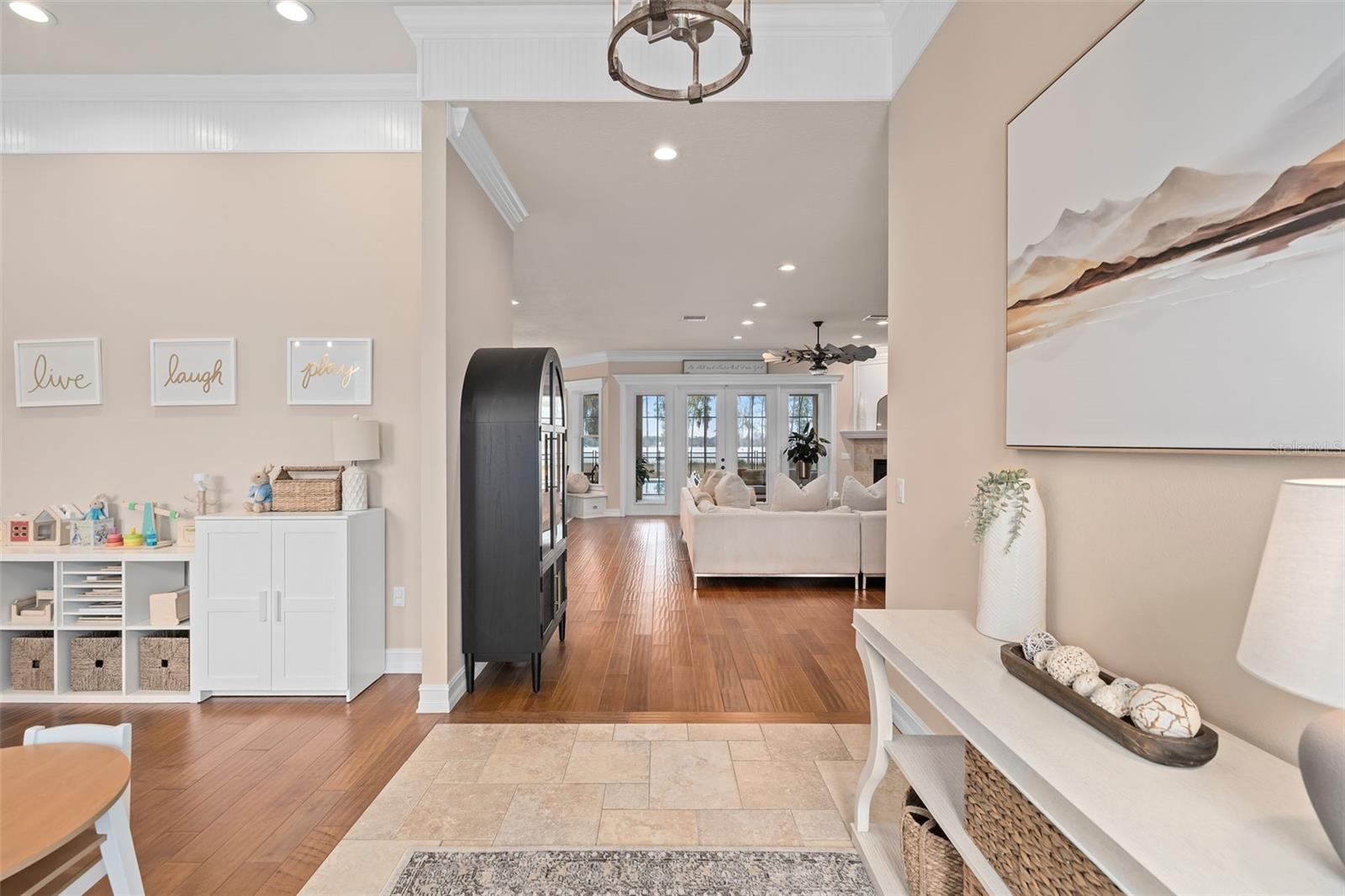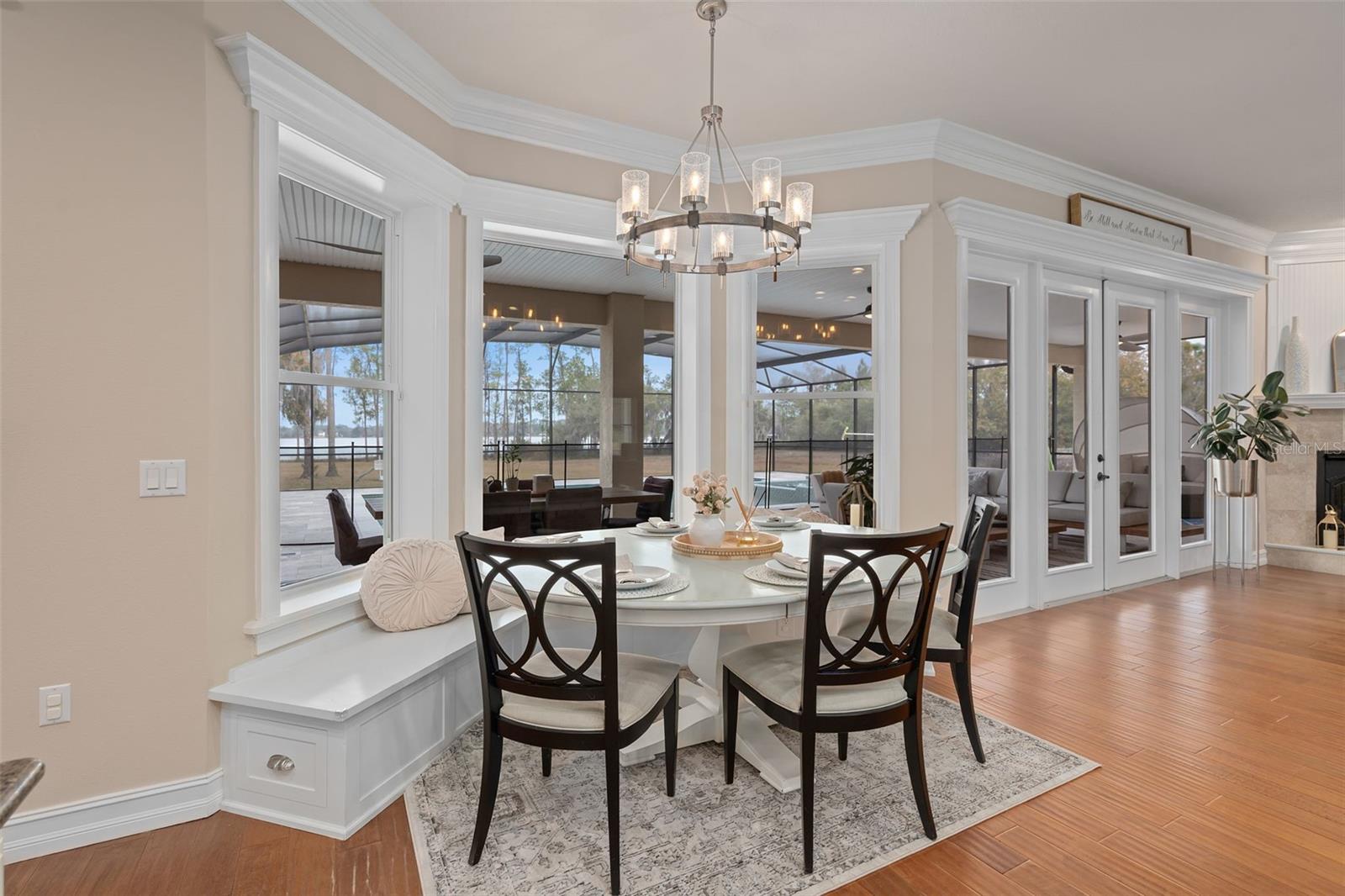 Propriedade privada de 5 acres à beira do lago no condomínio fechado da Reserva do Lago Hendon, com mais de 160 pés de fachada em um lago alimentado por nascentes. Projetada para maximizar a vista para o mar e a vida ao ar livre, a propriedade dispõe de uma piscina de água salgada recém-construída em 2025 com proteção solar de 25 pés, spa para 16 pessoas, deck de mármore e um cais privado renovado em 2025 que fornece acesso direto para passeios de barco e pesca. Localizado a poucos minutos da Cidade Médica de Lake Nona, com acesso conveniente à Narcoossee Road, USTA National Campus, SR 417 e Aeroporto Internacional de Orlando. Portas de entrada de vidro duplo abrem para interiores com sancas duplas, rodapés de 5 polegadas e vista para o lago a partir de várias áreas de estar. A cozinha inclui bancadas de quartzo, ilha grande com capacidade para seis pessoas, armários personalizados, fornos duplos, fogão a gás com enchimento de panela, pia de preparação adicional, tomadas elétricas adicionais e eletrodomésticos de aço inoxidável com vista para a água. A sala familiar com lareira a gás abre-se para um alpendre traseiro coberto, pré-instalado e ventilado para uma futura cozinha exterior. A suíte principal está posicionada de forma privada na ala leste, com vista para o lago e acesso direto à varanda. O banheiro principal inclui pias duplas, closet e chuveiro grande com chuveiros duplos. Os espaços adicionais incluem um home office dedicado, loft no andar de cima, quarto de hóspedes no andar de baixo, dois quartos adicionais no andar de cima e uma sala bônus/flexível de 700 pés quadrados adequada para mídia, sala de jogos ou quarto adicional. Garagem para quatro carros com maior profundidade, isolada e climatizada com aquecimento e ar condicionado, além de telas de garagem motorizadas. Sistemas HVAC duplos substituídos em 2021. Novo sistema de filtragem de água para toda a casa 2025, incluindo filtro de osmose reversa na pia da cozinha. Janelas Low-E e barreira de calor radiante. Vídeo tour disponível.