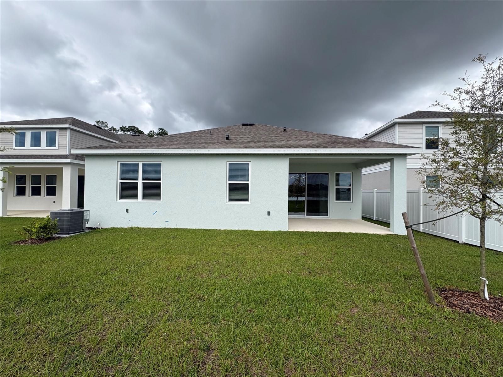 Este plano Meadowood de conceito aberto é nossa única casa de 1 andar pronta para mudança com 4 quartos, 3 banheiros completos e um escritório versátil convenientemente localizado perto da entrada da frente. O elegante piso de cerâmica aprimora as principais áreas de estar da casa, e persianas estão incluídas em toda parte para uma sensação de estar pronto para morar. A espaçosa Sala Grande flui perfeitamente para uma Lanai coberta traseira, perfeita para entretenimento ou relaxamento ao ar livre. A cozinha bem equipada impressiona com armários superiores de 42", bancadas de quartzo elegantes, uma ilha central, eletrodomésticos de aço inoxidável e um armário de despensa grande. A suíte principal oferece um amplo closet e um banheiro privativo com pias duplas em penteadeira de altura adulta, balcões de quartzo, armário de armazenamento de roupa de cama e um box amplo com revestimento de azulejos. parque para cães, trilha panorâmica para caminhada e acesso próximo a uma trilha equestre - tudo a poucos minutos de ótimas lojas, restaurantes e das principais vias.