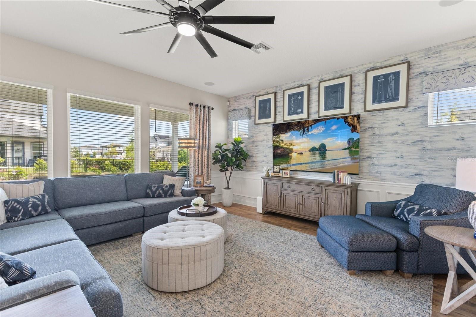 Experimente uma vida refinada nesta casa de dois andares lindamente projetada em St. Cloud, a poucos minutos do Lago Nona. Localizada em uma comunidade acolhedora com piscina e playground, esta casa oferece conveniência e estilo de vida com Publix próximo, restaurantes, grandes empregadores e fácil acesso ao Aeroporto Internacional de Orlando. Zoneado para a conceituada Voyager K até 8 escolas. Oferecendo mais de 3.200 pés quadrados, esta casa de cinco quartos e três banheiros possui painéis solares totalmente pagos para eficiência energética e economia de longo prazo. O layout de conceito aberto é repleto de luz natural, destacado por janelas grandes e áreas de estar espaçosas com luxuoso piso LVP. A cozinha foi cuidadosamente projetada com uma grande ilha de quartzo, pia de fazenda, armários abundantes e uma despensa. A suíte principal oferece um retiro privado com área de estar, lareira, banheiro estilo spa, banheira de imersão, pias duplas e closets generosos. No andar de cima, um loft versátil com recursos integrados e televisões duplas cria o espaço perfeito para relaxar ou se divertir. O som surround Sonos percorre toda a casa e móveis de estilo profissional podem ser incluídos para uma oportunidade pronta para uso. Uma combinação perfeita de espaço, conforto e localização privilegiada.