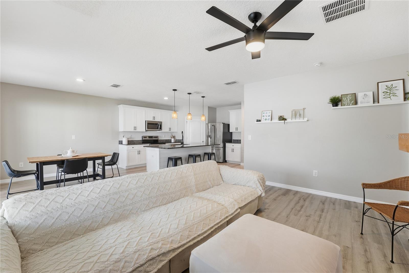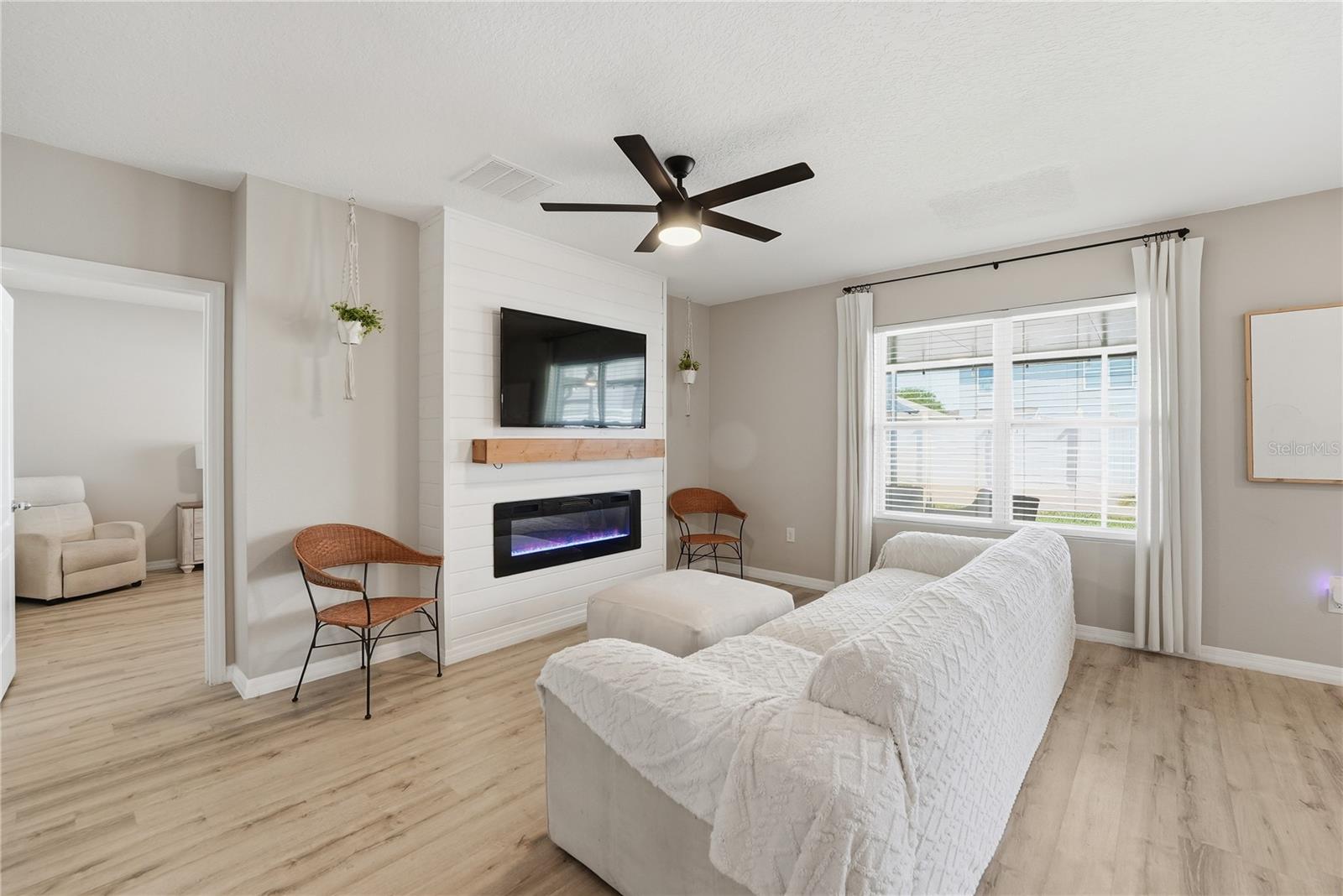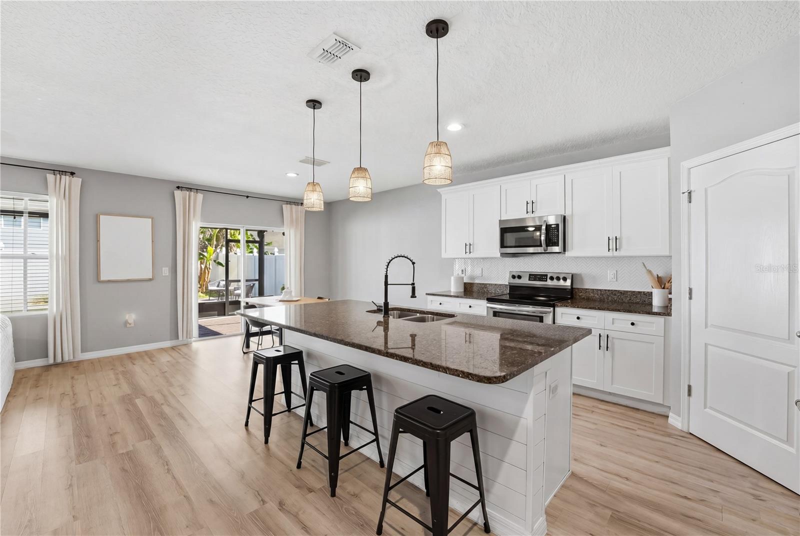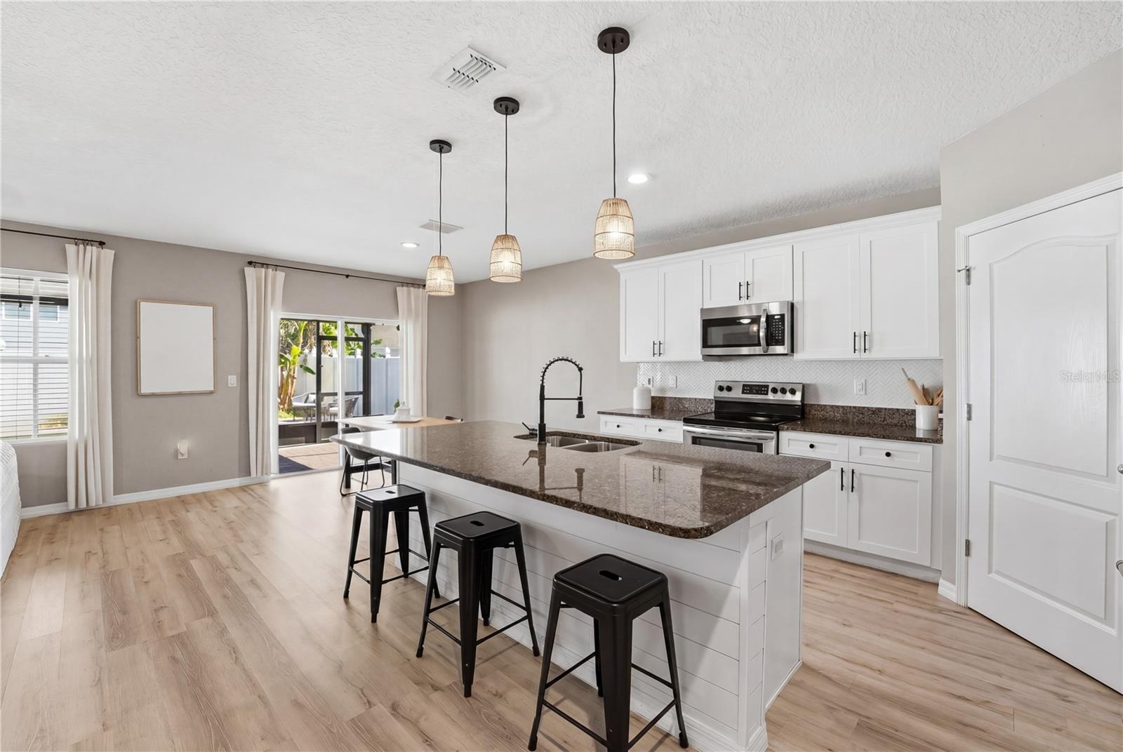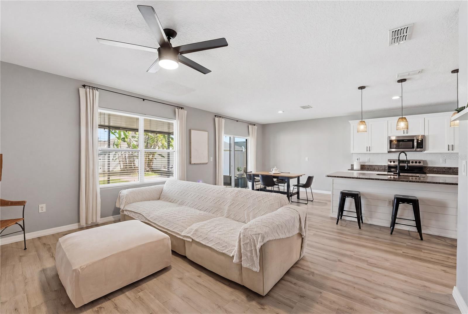 Algumas casas pedem que você se comprometa. Este pergunta o que você precisa e depois entrega. Cinco quartos. Uma sala flexível. Um sótão. E a suíte principal fica no andar principal, afastada da área de estar, com distância suficiente da ação do andar de cima para realmente parecer privada quando a casa está cheia. A cozinha aparece pronta para funcionar com armários shaker brancos, balcões de granito, eletrodomésticos em inox e iluminação pendente sobre uma ilha central que acomoda toda a equipe. Abre-se para uma grande sala ancorada por uma lareira eléctrica com cornija de madeira. O piso de pranchas de vinil é quente e consistente da frente para trás. O andar de cima se estende por mais quatro quartos, dois banheiros completos, uma lavanderia dedicada e um loft grande o suficiente para funcionar como uma segunda sala de estar, sala de cinema ou zona de lazer. Agora o verdadeiro empecilho. A varanda com tela percorre toda a extensão da casa e está totalmente decorada. Piso de pavimentação linear, lareira externa, conexão para uma TV externa (pense em churrascos em dias de jogo) e zonas de estar que fazem com que a comida durante a semana pareça férias. Isto não é um pátio. É uma experiência. As grandes coisas são tratadas. Novo telhado 2026, aquecedor de água 2025, máquina de lavar louça 2023, pintura interior 2023, piso de vinil 2022, pavimentação e tela 2022 a 2023. Além de luzes LED de entrada, tela suspensa de garagem e lareira elétrica. Canopy Walk é uma comunidade bem cuidada com trilhas para caminhada, um parque de casca de árvore, playground e campo de futebol. East Lake Tohopekaliga e o splash pad do Lakefront Park ficam logo abaixo. O acesso rápido à Florida Turnpike e à SR-417 coloca Lake Nona e Medical City a uma curta distância de carro, MCO a cerca de vinte minutos e Disney Springs de fácil acesso. Primário descendo escadas. Espaço para todos. Uma varanda onde você vai morar.