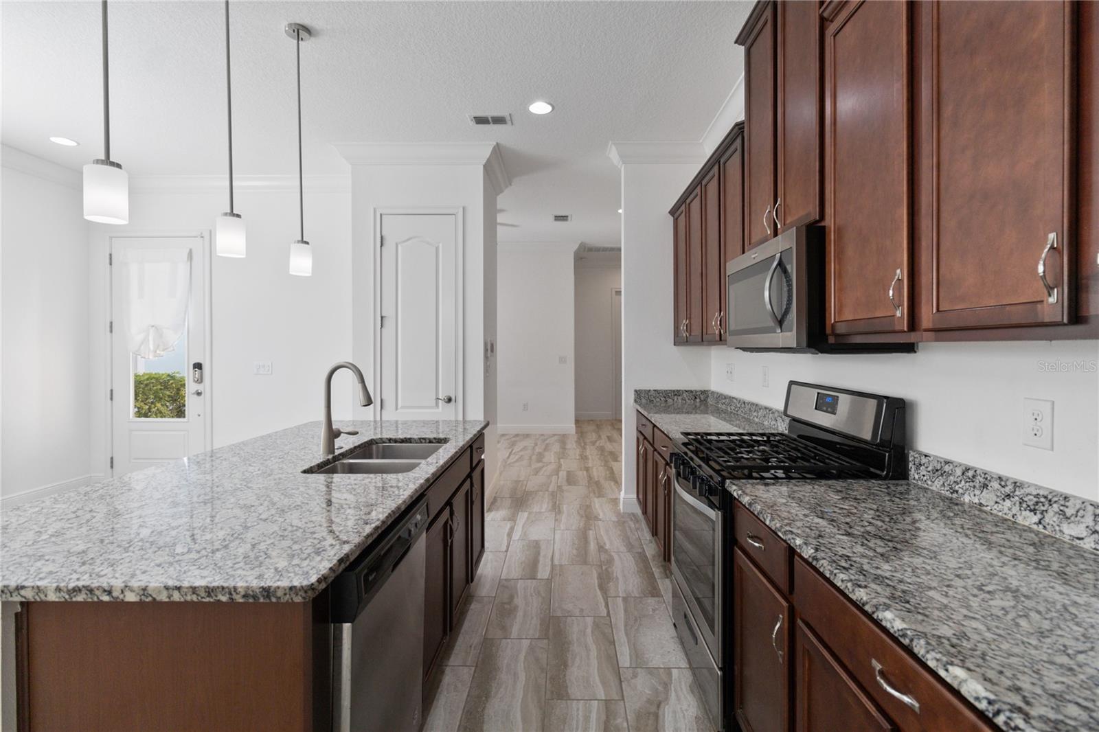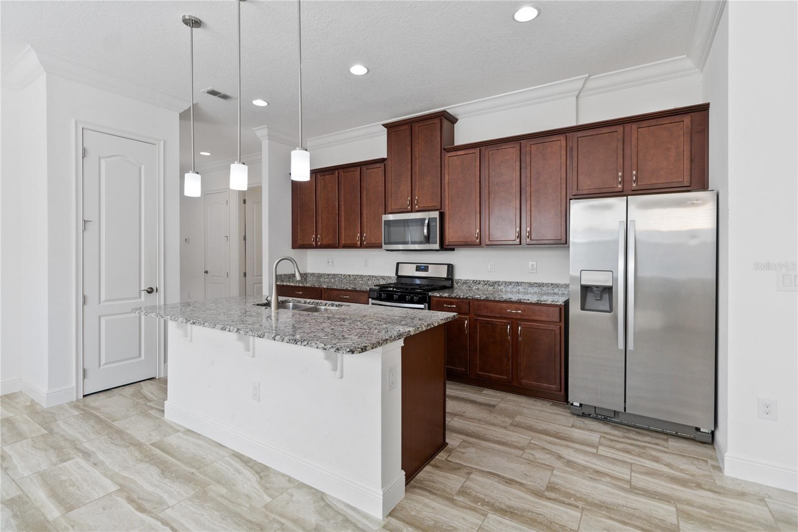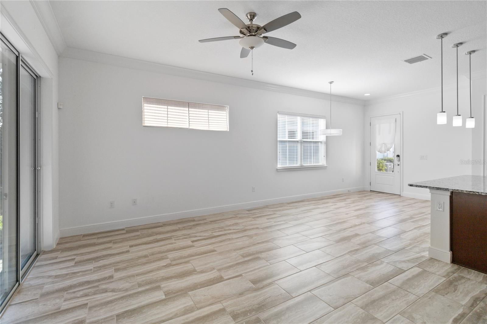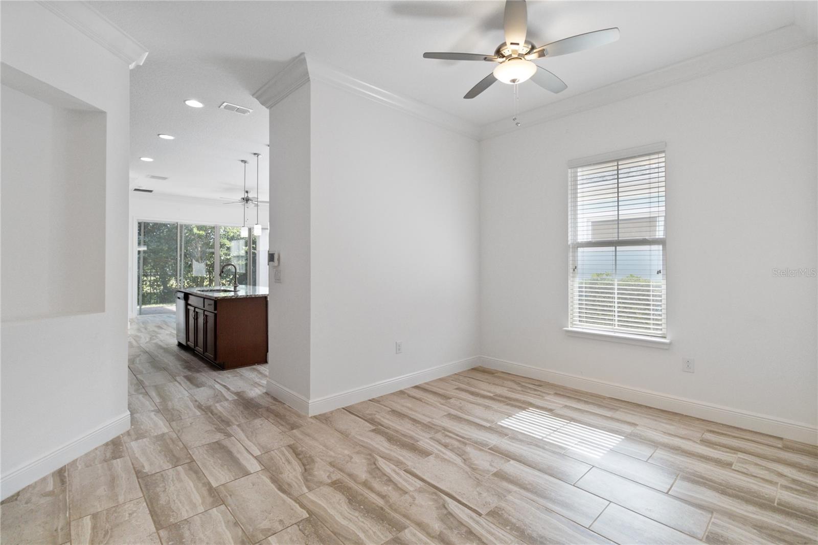 Bem -vindo para casa nesta planta linda e recém -pintada de Daytona, localizada no bem procurado, fechado, com 55 ou mais da comunidade ativa del Webb Twin Lakes. Entre na propriedade de tirar o fôlego, com deslumbrantes pisos de prancha de madeira com molduras de coroa e pintadas profissionalmente. Stunning 42" Cabinets with custom molding, stainless steel refrigerator, Pantry, custom granite countertops throughout, pendant lights, and chandelier. Living room features Sliding glass doors leading to the Lanai with a custom ceiling fan to enjoy your morning coffee. Master bedroom with blinds, trey ceiling, crown molding and ceiling fan. Master bedroom bathroom features crown molding, custom frameless glass doors, diamond shaped tile flooring in the shower, Cabeça de chuveiro grande e ladrilhos personalizados. As persianas incluem um pool de estilos de resort, piscina e piscina do 3º lugar.