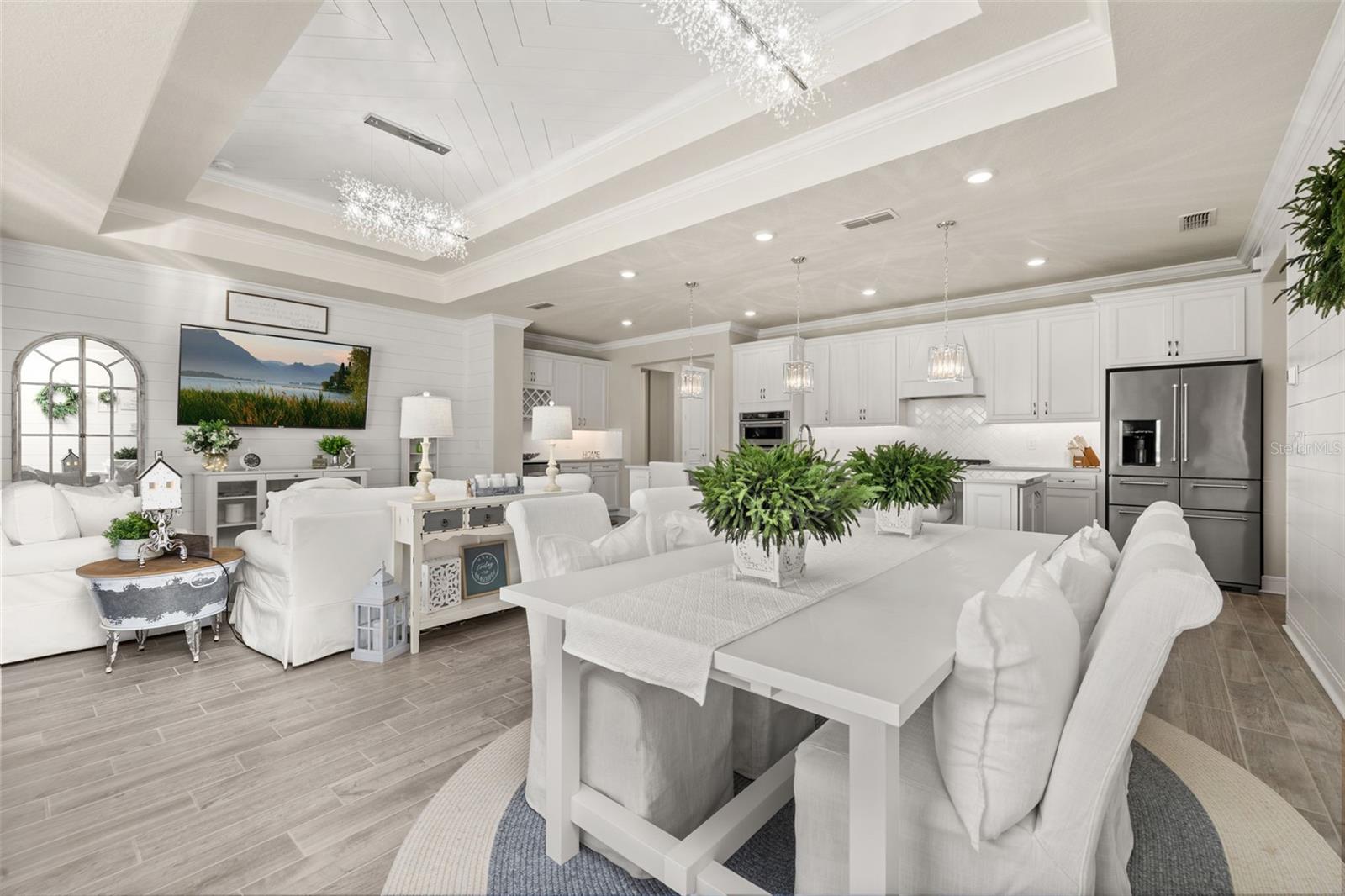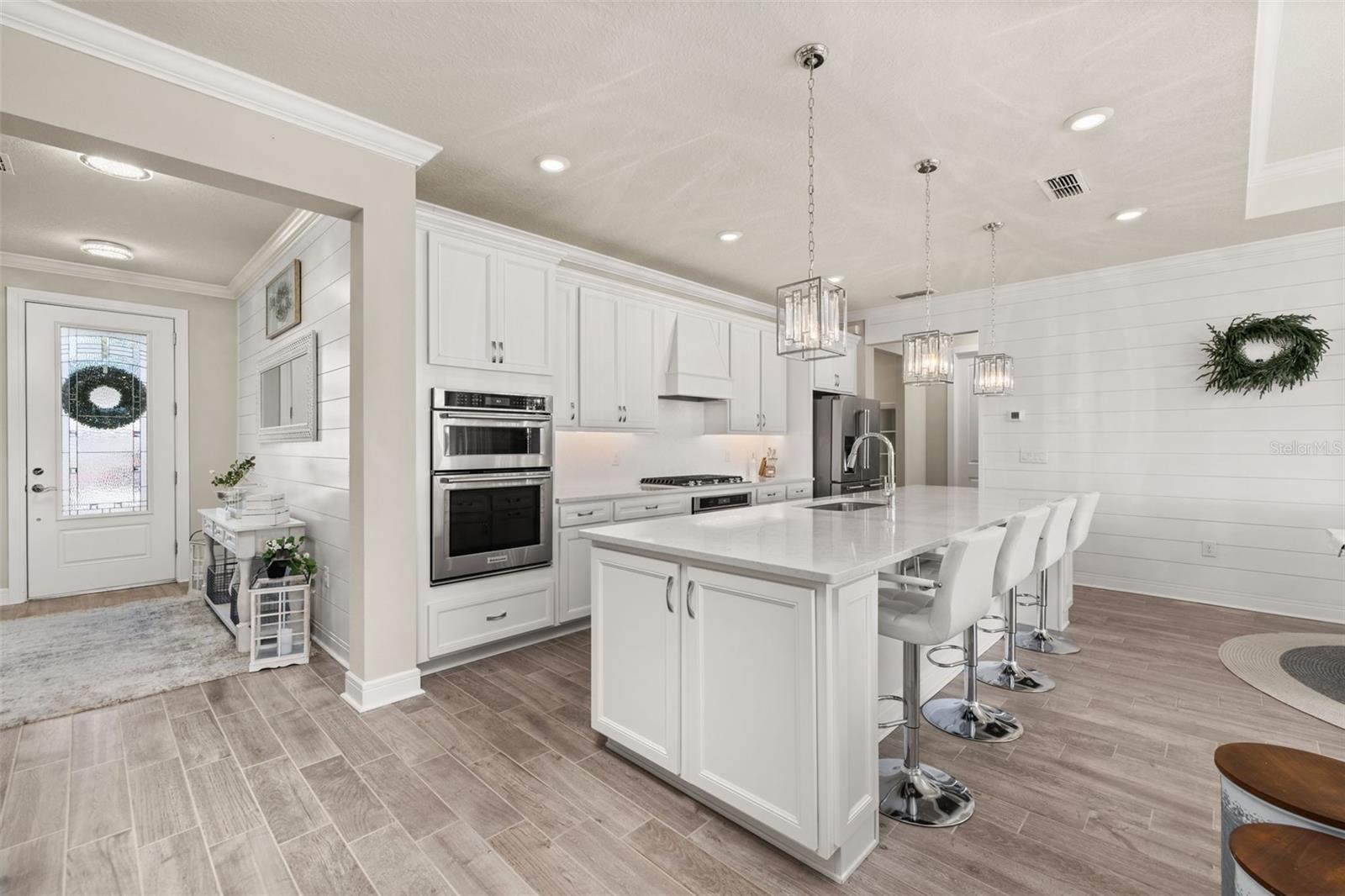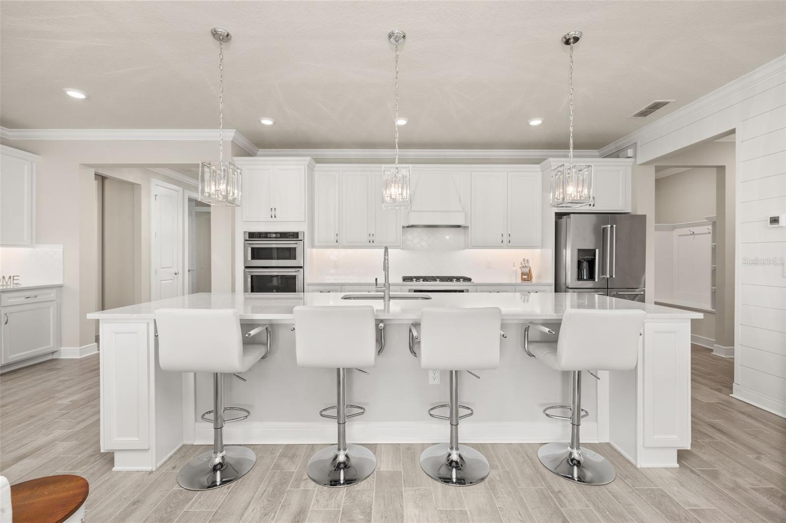 Bem -vindo à 2719 River Creek Lane, uma residência impressionante perto do cobiçado corredor do Lago Nona, onde a elegância encontra charme rústico em um requintado estilo de fazenda do campo. Esta casa pronta para mudança possui 2.330 pés quadrados de espaço de vida meticulosamente projetado, oferecendo três quartos espaçosos e dois banheiros luxuosos. Entre para descobrir interiores que são decorados como uma casa modelo, com acabamentos sofisticados e uma mistura harmoniosa de texturas e cores que criam uma atmosfera quente e convidativa. As áreas de estar de conceito aberto são perfeitas para entretenimento ou relaxamento, com ampla luz natural, aprimorando o ambiente sofisticado da casa. Toda a casa possui madeira personalizada, incluindo molduras de coroa, rodapés, colo de navio e tratamentos de teto. O "estrelato" é um dos planos mais solicitados nesta comunidade desejável de 55+Plus que apresenta um clube, piscina e eventos programados. A cozinha gourmet é uma delícia culinária, equipada com utensílios de cozinha de aço inoxidável de primeira linha que qualquer chef adoraria. Aparelhos de aço inoxidável modernos, incluindo um forno duplo e uma geladeira embutida, harmonizam com armários extras altos personalizados com moldagem por coroa e uma ilha espaçosa, convidando reuniões e criatividade culinária. Contadores de quartzo de Lyra e iluminação elegante são as estrelas desta cozinha de designer. Ao lado da cozinha, há um bar de vinhos embutido com geladeira de bebidas e prateleira de vinho personalizada. O banho primário possui um chuveiro de azulejo personalizado e uma enorme caminhada no armário. As janelas do quarto principal ignoram o quintal privado. Situado em um generoso lote de 7.841 pés quadrados, esta propriedade oferece amplo espaço ao ar livre, com pré-iniciantes já no local para uma piscina, permitindo possibilidades infinitas para prazer ao ar livre e personalização pessoal. A cozinha gourmet ao ar livre é uma delícia de artistas! Experimente a mistura perfeita de elegância e conforto na 2719 River Creek Lane.