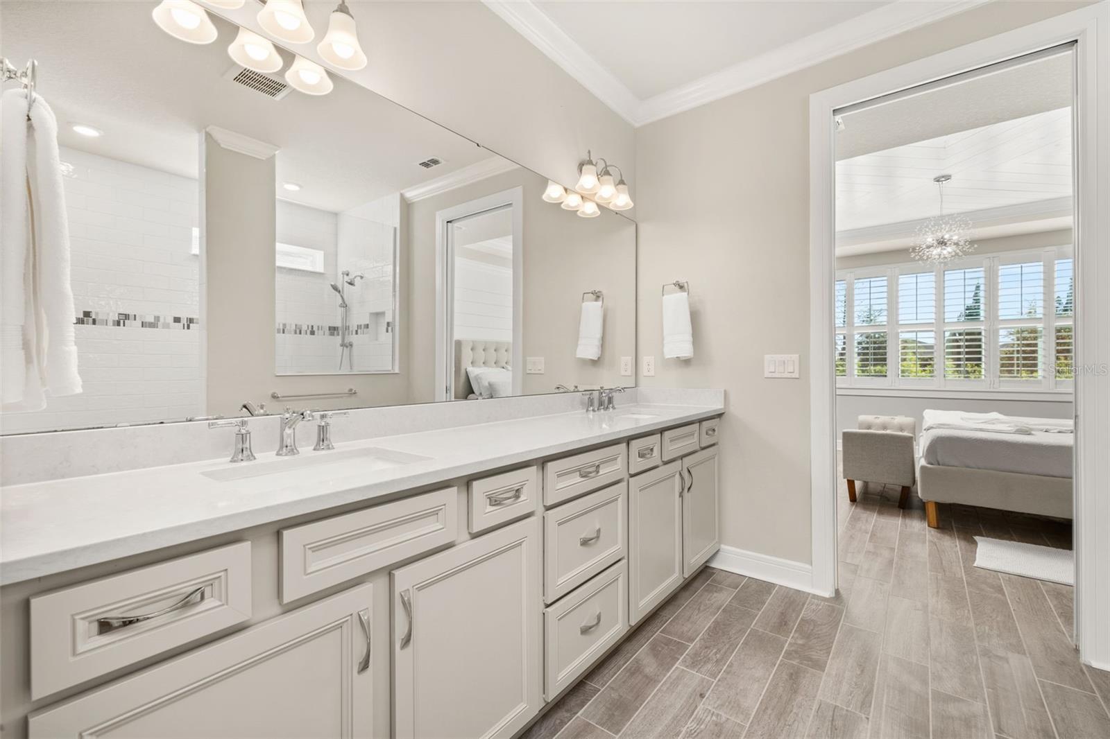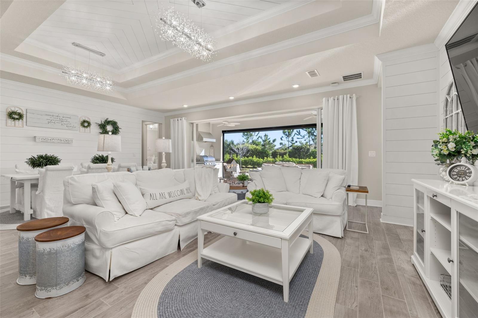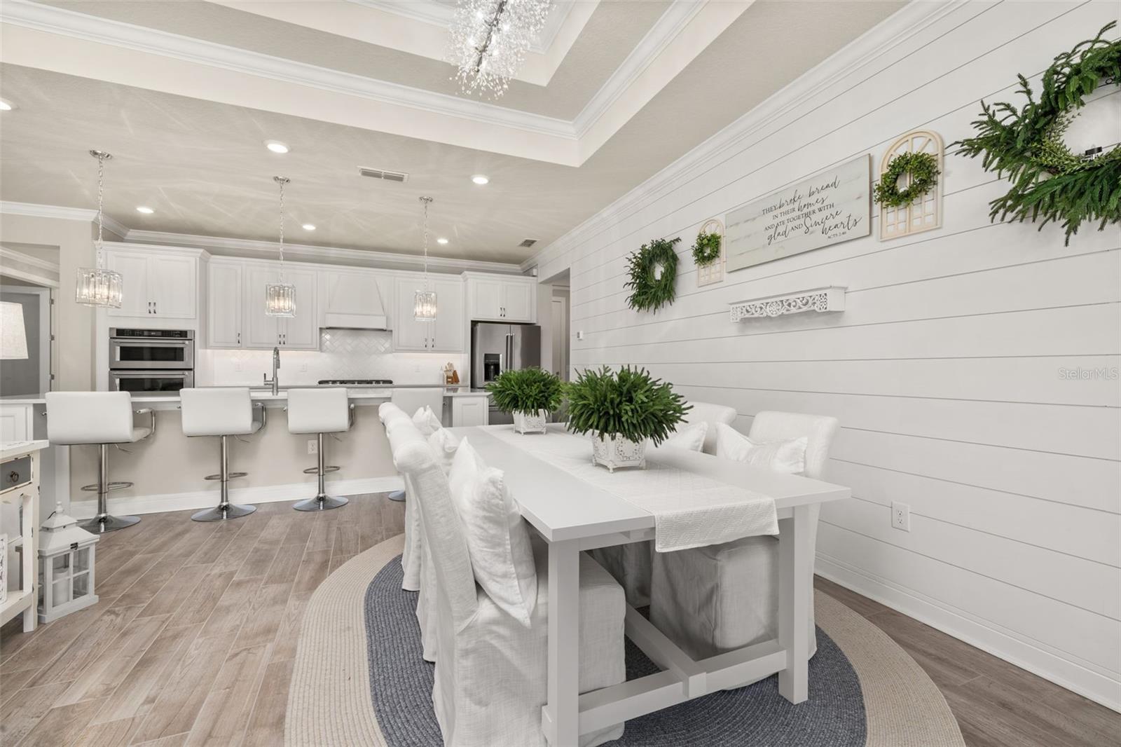 Bem -vindo à 2719 River Creek Lane, uma residência impressionante perto do cobiçado corredor do Lago Nona, onde a elegância encontra charme rústico em um requintado estilo de fazenda do campo. Esta casa pronta para mudança possui 2.330 pés quadrados de espaço de vida meticulosamente projetado, oferecendo três quartos espaçosos e dois banheiros luxuosos. Entre para descobrir interiores que são decorados como uma casa modelo, com acabamentos sofisticados e uma mistura harmoniosa de texturas e cores que criam uma atmosfera quente e convidativa. As áreas de estar de conceito aberto são perfeitas para entretenimento ou relaxamento, com ampla luz natural, aprimorando o ambiente sofisticado da casa. Toda a casa possui madeira personalizada, incluindo molduras de coroa, rodapés, colo de navio e tratamentos de teto. O "estrelato" é um dos planos mais solicitados nesta comunidade desejável de 55+Plus que apresenta um clube, piscina e eventos programados. A cozinha gourmet é uma delícia culinária, equipada com utensílios de cozinha de aço inoxidável de primeira linha que qualquer chef adoraria. Aparelhos de aço inoxidável modernos, incluindo um forno duplo e uma geladeira embutida, harmonizam com armários extras altos personalizados com moldagem por coroa e uma ilha espaçosa, convidando reuniões e criatividade culinária. Contadores de quartzo de Lyra e iluminação elegante são as estrelas desta cozinha de designer. Ao lado da cozinha, há um bar de vinhos embutido com geladeira de bebidas e prateleira de vinho personalizada. O banho primário possui um chuveiro de azulejo personalizado e uma enorme caminhada no armário. As janelas do quarto principal ignoram o quintal privado. Situado em um generoso lote de 7.841 pés quadrados, esta propriedade oferece amplo espaço ao ar livre, com pré-iniciantes já no local para uma piscina, permitindo possibilidades infinitas para prazer ao ar livre e personalização pessoal. A cozinha gourmet ao ar livre é uma delícia de artistas! Experimente a mistura perfeita de elegância e conforto na 2719 River Creek Lane.
