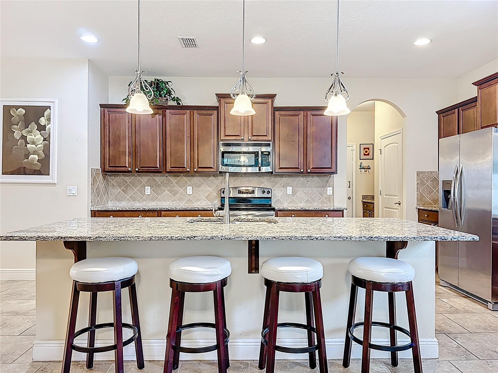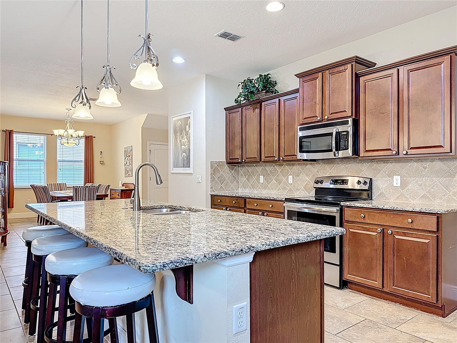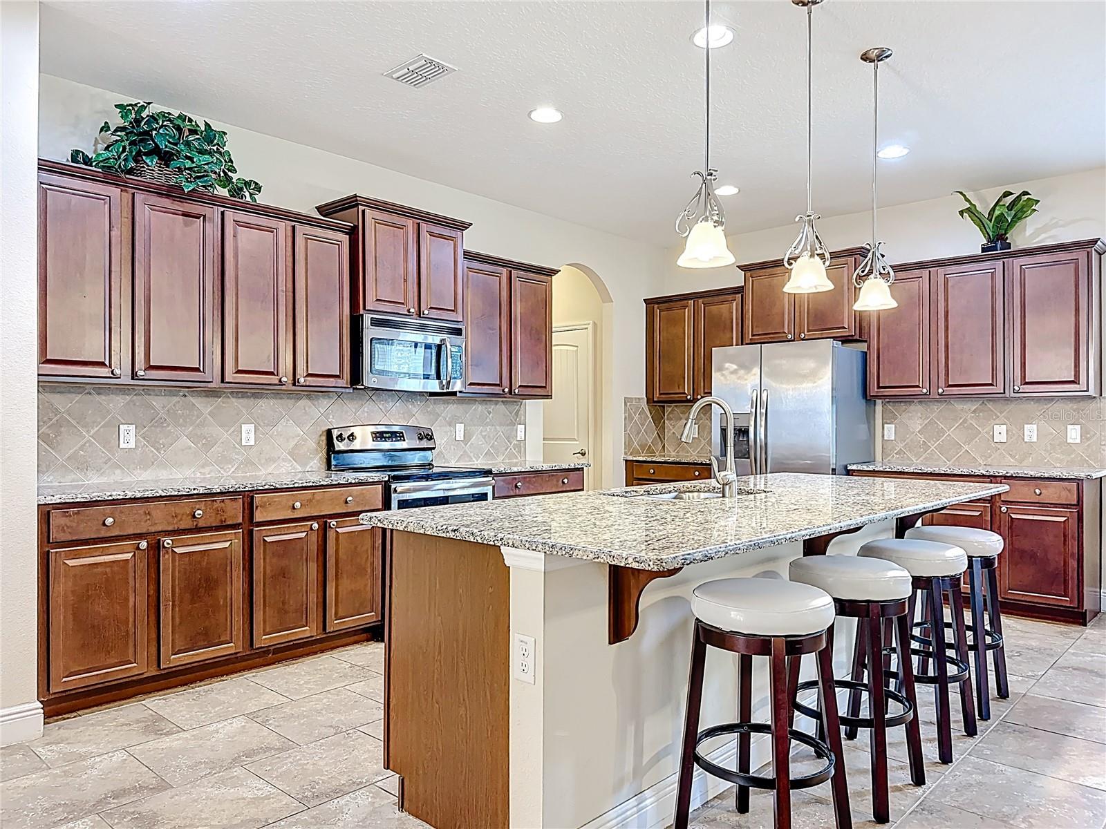 Concessão 5K oferecida pelos Vendedores. Perto do Lago Nona e St. Cloud Lakefront, BAIXO HOA e SEM CDD. Casa grande com quarto principal no térreo. Esta bela residência de dois andares possui 4 quartos e 3,5 banheiros, com uma luxuosa suíte master, convenientemente localizada no primeiro andar. Ao entrar, você é recebido por tetos altos e piso frio, uma sala de estar e jantar formal e um lavabo conveniente. O coração da casa possui um layout de conceito aberto que combina sala de estar, área de jantar e cozinha completa com eletrodomésticos de aço inoxidável, bancadas de granito, despensa e uma espaçosa ilha central com assentos e armazenamento adicional. A suíte master tem teto bandeja, carpete novo, amplo espaço para área de estar e closets duplos. O banheiro principal tem pias duplas, banheira de imersão, chuveiro separado, toalete recém-instalado e armário de roupa de cama. No andar de cima, três quartos incluem seus próprios closets, além de outro armário de roupa de cama e um loft/área de estar que acrescentam elegância funcional. As comodidades práticas incluem uma lavanderia no térreo e portas de correr da sala familiar e da suíte master que se abrem para uma varanda sob o telhado para entreter seus convidados ou relaxar e aproveitar o clima da Flórida. A entrada de automóveis pavimentada e a varanda frontal sob o telhado adicionam apelo convidativo ao meio-fio. Esta comunidade é conhecida por suas casas bem conservadas, piscina comunitária, parque para cães, playground e trilhas para caminhada. Você está convenientemente perto das principais rodovias, do famoso Lago Nona com várias lojas, restaurantes e instalações médicas, o centro de Saint Cloud e a orla marítima de Saint Cloud também estão por perto.