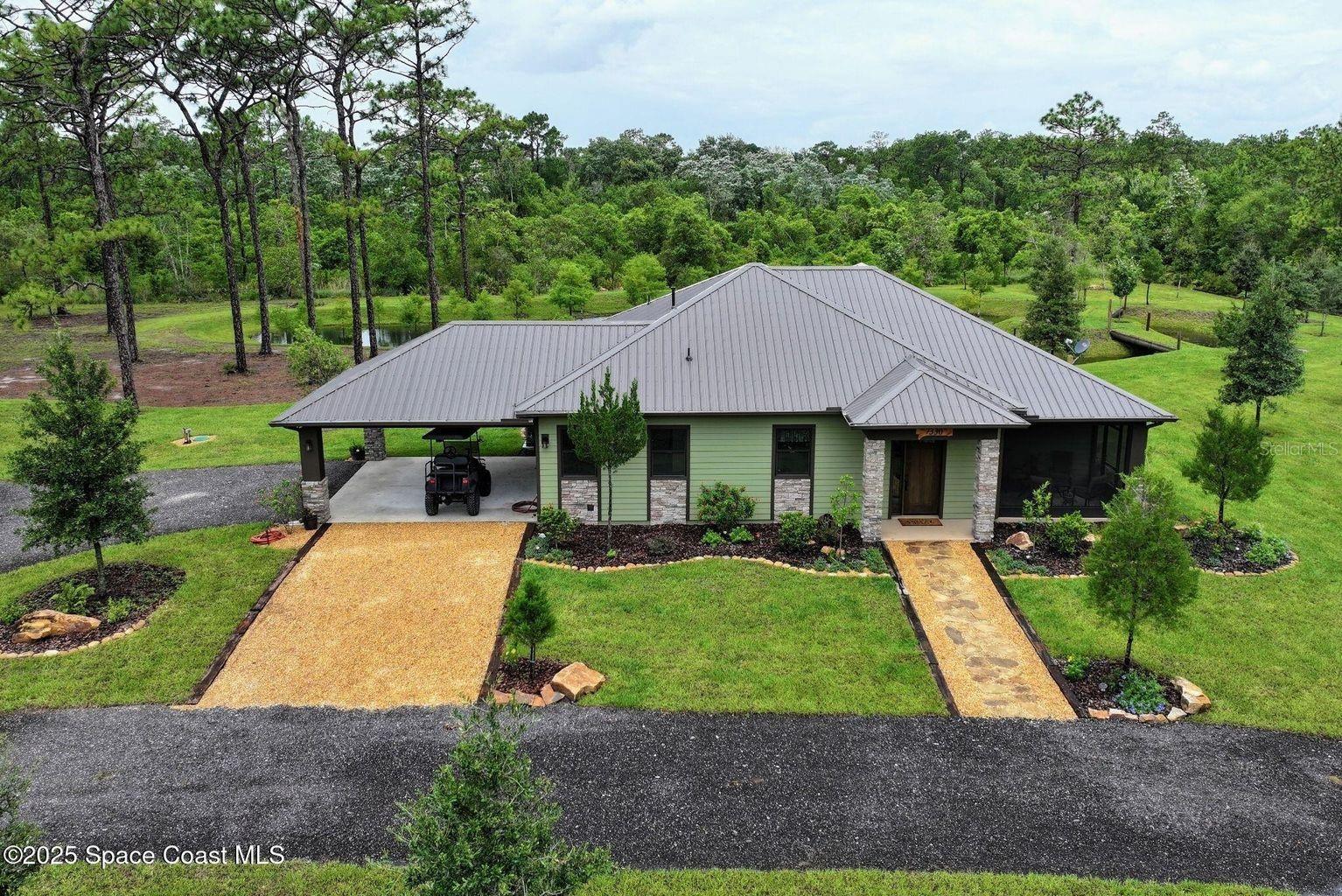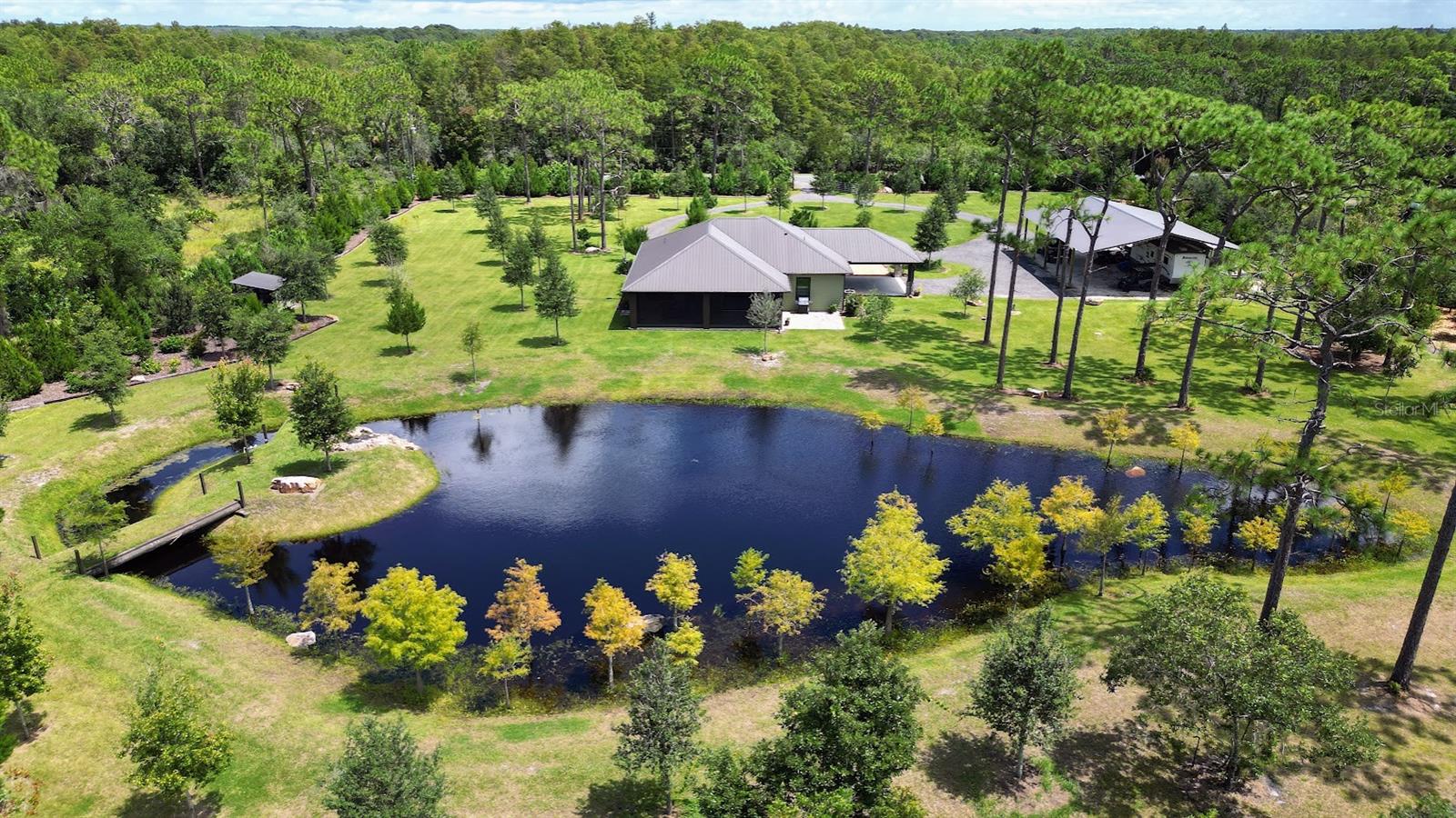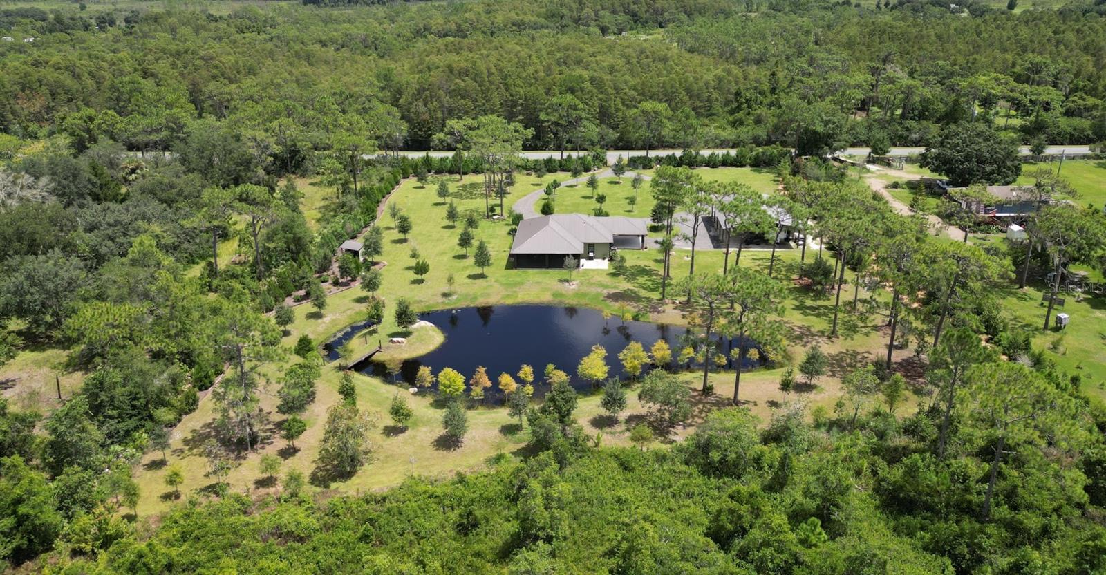 Experimente o isolamento refinado nesta propriedade personalizada de planta dividida de dois quartos e dois banheiros da CBS em cinco hectares tranquilos. Um lago privado com ilha, cachoeira e pontes de terra cria um cenário notável para um retiro rural de luxo. O pinheiro besouro colhido na propriedade traz calor natural ao interior cuidadosamente projetado. Portas deslizantes triplas emolduram vistas serenas e convidam o ar livre a entrar. A cozinha e os banheiros possuem balcões de granito e detalhes em pinho nodoso. O banheiro principal oferece box amplo e o banheiro de hóspedes inclui uma banheira de imersão. Um espaço flexível de grandes dimensões acomoda a roupa suja e inclui uma estação de lavagem para cães embutida. Um celeiro de quarenta por sessenta pólos, duas conexões para trailers e um generoso espaço aberto permitem o crescimento futuro. Rodeada por mais de trezentas árvores, a propriedade oferece privacidade e avistamentos frequentes da vida selvagem. Localizado no final de uma estrada tranquila em uma zona agrícola sem HOA e na fronteira com uma Área de Manejo da Vida Selvagem, este retiro permanece perto da Costa Espacial e das comodidades de Orlando.