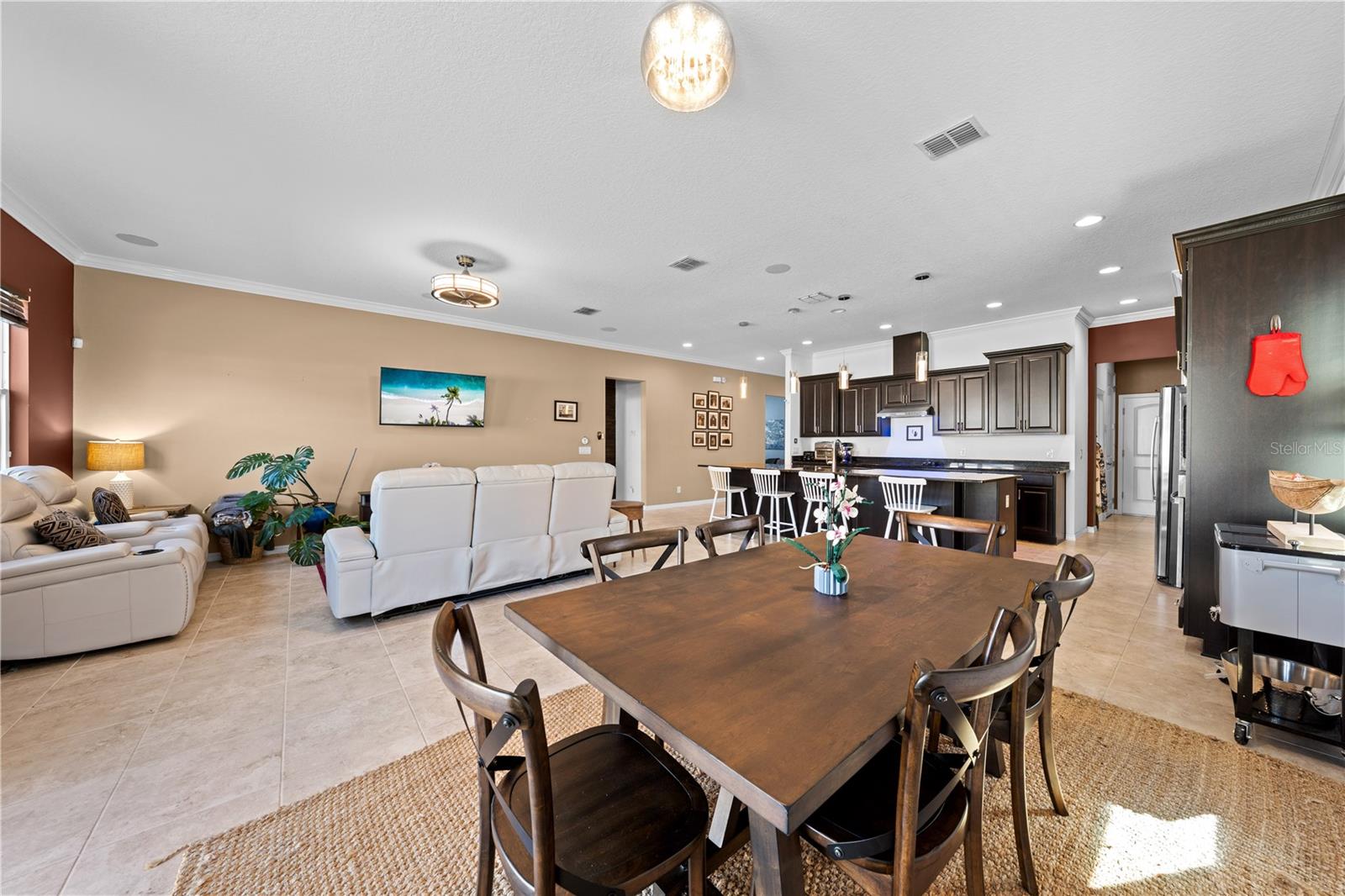 Uma ou mais fotos foram praticamente encenadas. Bem -vindo à sua casa de sonho na desejável Comunidade Sola Vista de St. Cloud. Esta residência meticulosamente mantida oferece a mistura perfeita de conforto, estilo e conveniência, com três quartos, dois banheiros e uma riqueza de recursos desejáveis projetados para a vida moderna. Ao entrar, você notará imediatamente um quarto fechado e um banheiro fechado à direita, perfeitamente separados por uma bela porta de celeiro de madeira personalizada, ideal para os hóspedes ou como um retiro privado. Continuando pela entrada, você é recebido por uma sala aberta adicional à direita, atualmente usada como escritório, enquanto à esquerda encontrar uma sala de gravação versátil que possa servir facilmente como armazenamento extra, um estúdio criativo ou mesmo uma adega. A área de estar de conceito aberto cria uma atmosfera acolhedora cheia de luz natural, perfeita para relaxar e divertir. A casa também vem equipada com som surround e luzes de discoteca embutidas na cozinha e na sala de estar, transformando a vida cotidiana em um espaço pronto para reuniões divertidas e memoráveis. A cozinha do chef apresenta bancadas elegantes, armários amplos e utensílios de aço inoxidável, tornando a preparação da refeição uma brisa. A área de jantar adjacente oferece o cenário perfeito para jantares em família ou amigos de hospedagem. Os três quartos fornecem retiros pacíficos, cada um bem projetado com conforto e funcionalidade em mente. Os banheiros são atualizados com bom gosto com equipamentos e acabamentos modernos, adicionando um toque de luxo à sua rotina diária. Saia para descobrir um quintal feito para entretenimento e relaxamento. Uma fogueira encantadora fica no centro do espaço ao ar livre, cercado por plantadores perfeitos para iniciar sua própria horta ou encher com flores vibrantes. Esteja você hospedando um churrasco, reunindo-se com amigos sob as estrelas ou desfrutando de um café tranquilo da manhã, este quintal é projetado para prazer durante todo o ano. Além da propriedade, a comunidade Sola Vista oferece uma variedade de comodidades, incluindo parques próximos, trilhas para caminhada e instalações recreativas. Com um ambiente familiar e uma proximidade de excelentes escolas, esse bairro é o lugar perfeito para chamar de lar.