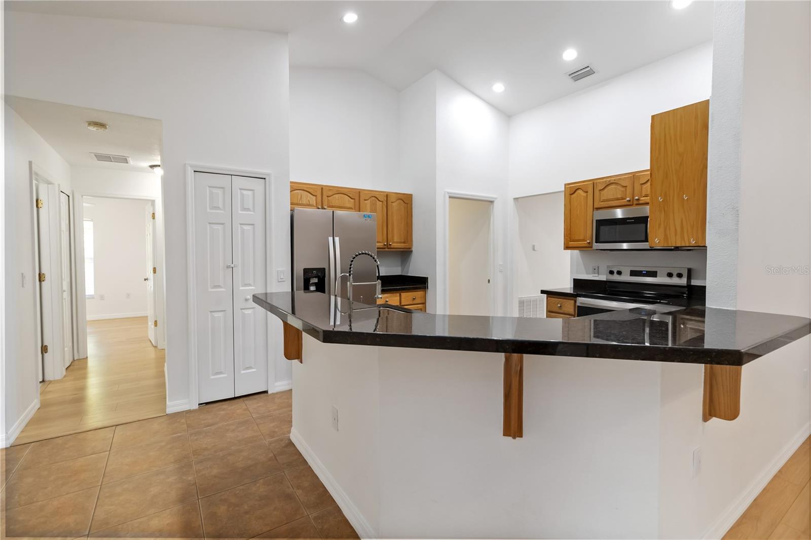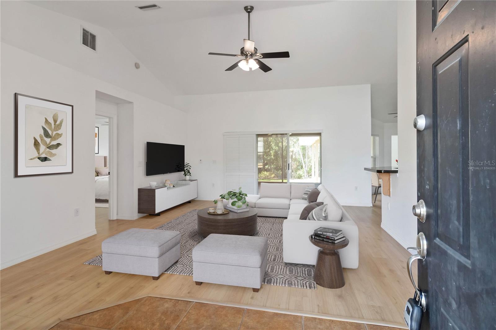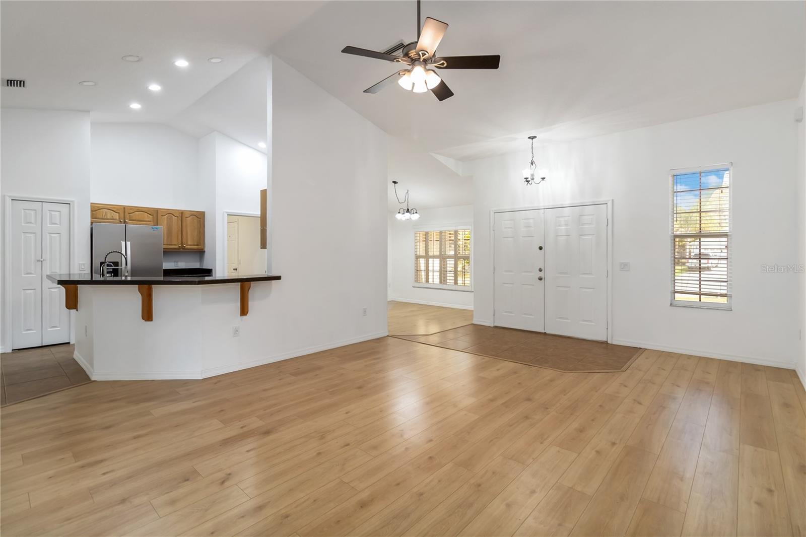 Esta é a vida! No campo, sem HOA, beco sem saída, espaçosa casa 5BR, 3BA em meio acre com natureza nos fundos! Entre pelas portas duplas da frente e veja a ampla sala de estar com tetos altos e uma excelente vista através das portas triplas de vidro deslizantes para a varanda de tela e o quintal além. O piso é em sua maioria de pranchas de vinil luxuosas e de fácil manutenção, exceto na cozinha e nos banheiros, que possuem revestimento cerâmico. A sala de jantar, à sua direita, leva à cozinha, que tem todos os eletrodomésticos de inox novos, muitos armários recém reformados, luminárias e pias novas, balcão alto para café da manhã e despensa. A casa possui uma planta dividida em 3 vias. O quarto principal tem banheiro privativo com pias duplas, banheira de jardim, closet e chuveiro com portas de vidro. Da cozinha, veja dois quartos que compartilham o segundo banheiro completo, depois no corredor veja a sala bônus/escritório/sala de jogos, além de mais dois quartos, um dos quais com closet e pinho nodoso em uma parede. Estes dois quartos partilham o terceiro banheiro completo. No final do corredor veja o enorme armário de roupa de cama, para muita arrumação. Deste hall você pode sair para a varanda dos fundos, que possui chuveiro externo aberto e pia. De volta para dentro, da sala você pode sair pelas portas de vidro deslizantes para a varanda com tela, perfeita para aproveitar todo o clima da Flórida. A casa está bem e séptica, para economizar dinheiro, sem conta de água! Existem 2 unidades AC. O telhado foi substituído em junho de 2024. Há muito o que gostar nesta casa bem cuidada. Agora é a sua vez de aproveitar!